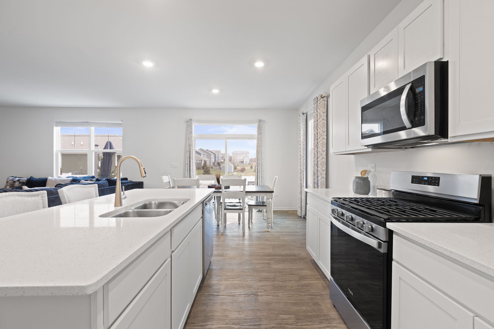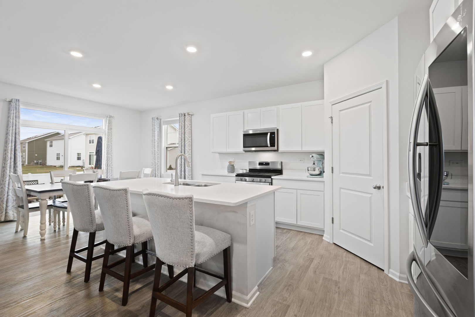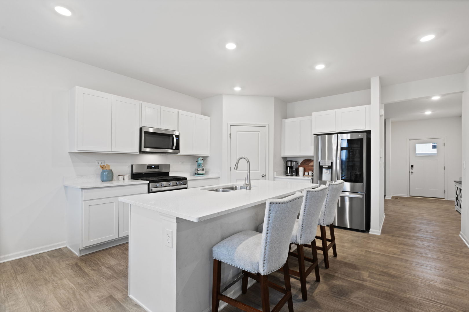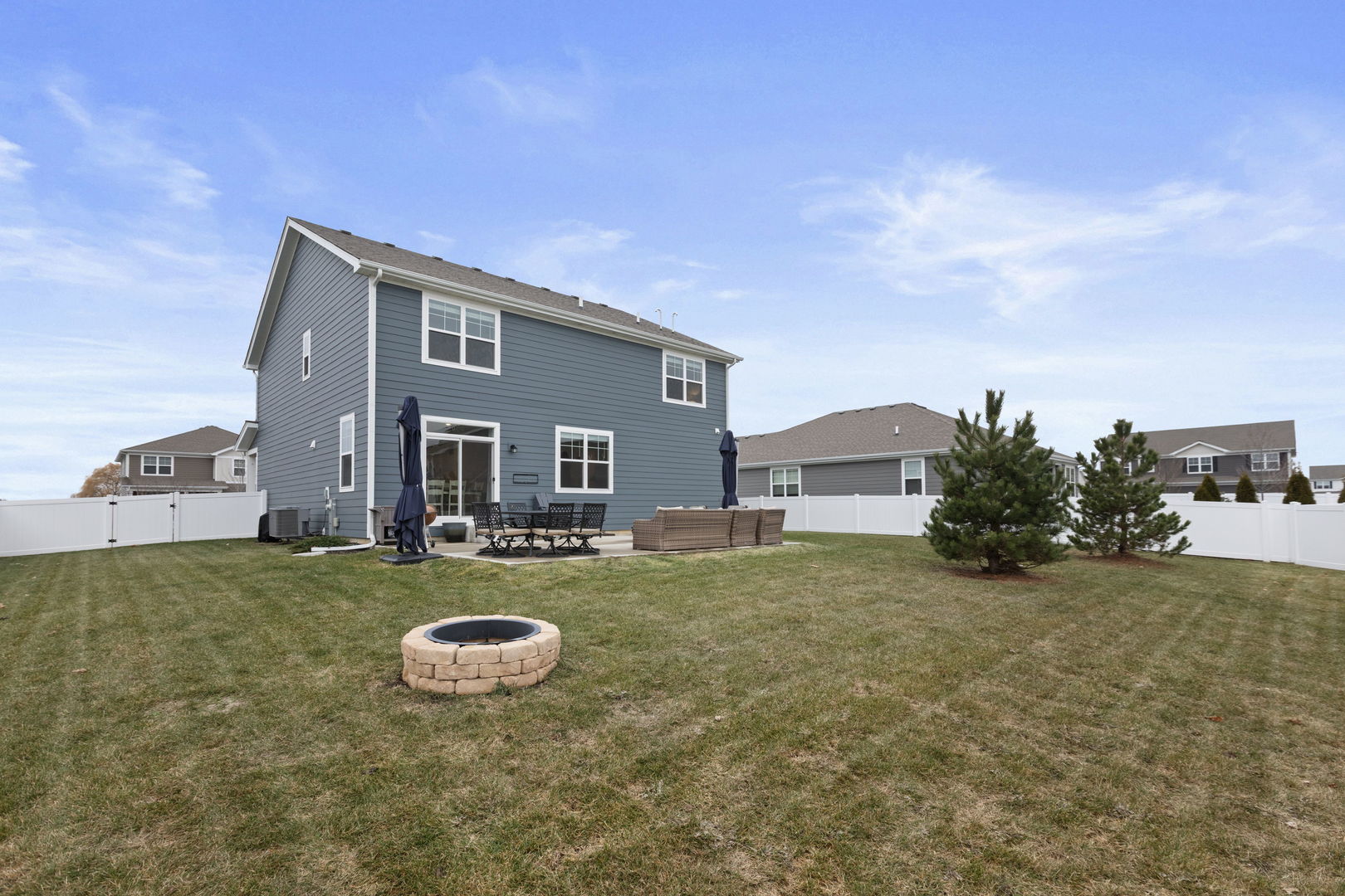 Welcome home to your beautiful future home in the sought-after Highland Woods neighborhood. This scenic homesite features Hardie siding, brick wainscoting, and a welcoming front porch with railings, along with a fully fenced yard, a massive patio perfect for outdoor entertaining, and a private setting with no rear neighbors. The popular Henley plan offers a thoughtfully designed layout with a flex room, four bedrooms, two and one-half baths, nine-foot first-floor ceilings, and a full basement. Entertaining is effortless in the open-concept kitchen and family room, highlighted by a large island with seating, 42-inch designer white cabinetry with crown molding and soft-close doors and drawers, a walk-in pantry, stainless steel appliances, quartz countertops, and easy-to-maintain luxury vinyl plank flooring. Upstairs, a spacious loft provides flexible space ideal for a home office, media room, or play area. The expansive primary suite offers a private retreat with an en-suite bath featuring dual raised-height quartz vanities, a walk-in shower with a ceramic tile surround, and clear glass doors. Three additional bedrooms, a full hall bath, a linen closet, and a convenient second-floor walk-in laundry room complete the upper level. The home includes two Level 2 EV chargers. Highland Woods is thoughtfully designed with striking monuments, a scenic tree-lined boulevard, and outstanding amenities including five miles of walking paths, an 18-acre lake, a clubhouse, pools, tennis and volleyball courts, and more. Ideally located near I-90, Routes 72, 47, 20, and Randall Road, with convenient access to the Metra for an easy commute to the city. This home includes America’s Smart Home Technology, featuring a smart video doorbell, a Honeywell thermostat, a smart door lock, Deako smart light switches, and more.