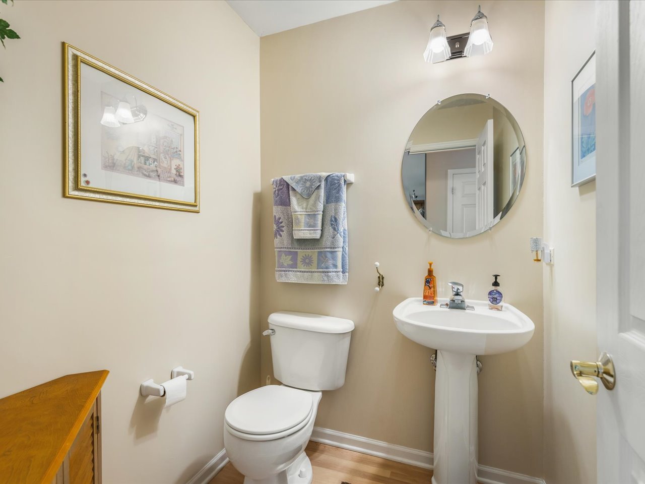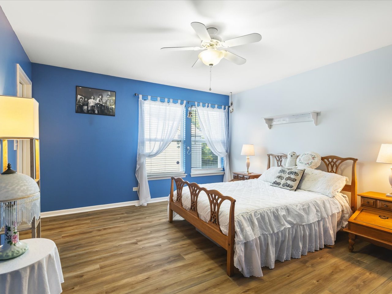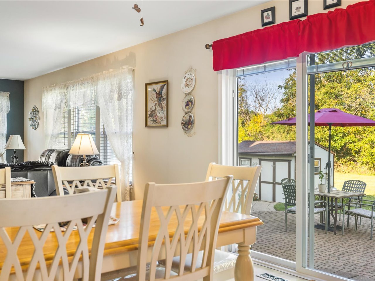 Welcome home to this stunning 4-bedroom, 3-bath residence perfectly situated on a premium lot backing to serene ponds and a protected natural area. Offering both privacy and the conveniences of in-town living-with no HOA-this home combines comfort, style, and functionality. Step inside to find a spacious open-concept layout featuring a large eat-in kitchen with walk-in pantry, formal dining room, inviting living room, and a warm family room with a fireplace that can be enjoyed as gas or wood-burning. An office provides the perfect space for working from home or quiet study. Each of the four bedrooms boasts a walk-in closet, including a generous primary suite with an updated master bath. Recent updates bring peace of mind, including a roof under 10 years old, all appliances updated within the last five years, new furnace and AC installed in 2023, brand new LVP flooring and carpet on the second floor, and a freshly sealcoated driveway in 2025. A heated three-car garage and outdoor shed provide plenty of additional storage. Enjoy your mornings and evenings from the back patio with sweeping views of nature and wildlife. This property truly has it all-modern updates, a private natural setting, and close proximity to town amenities.