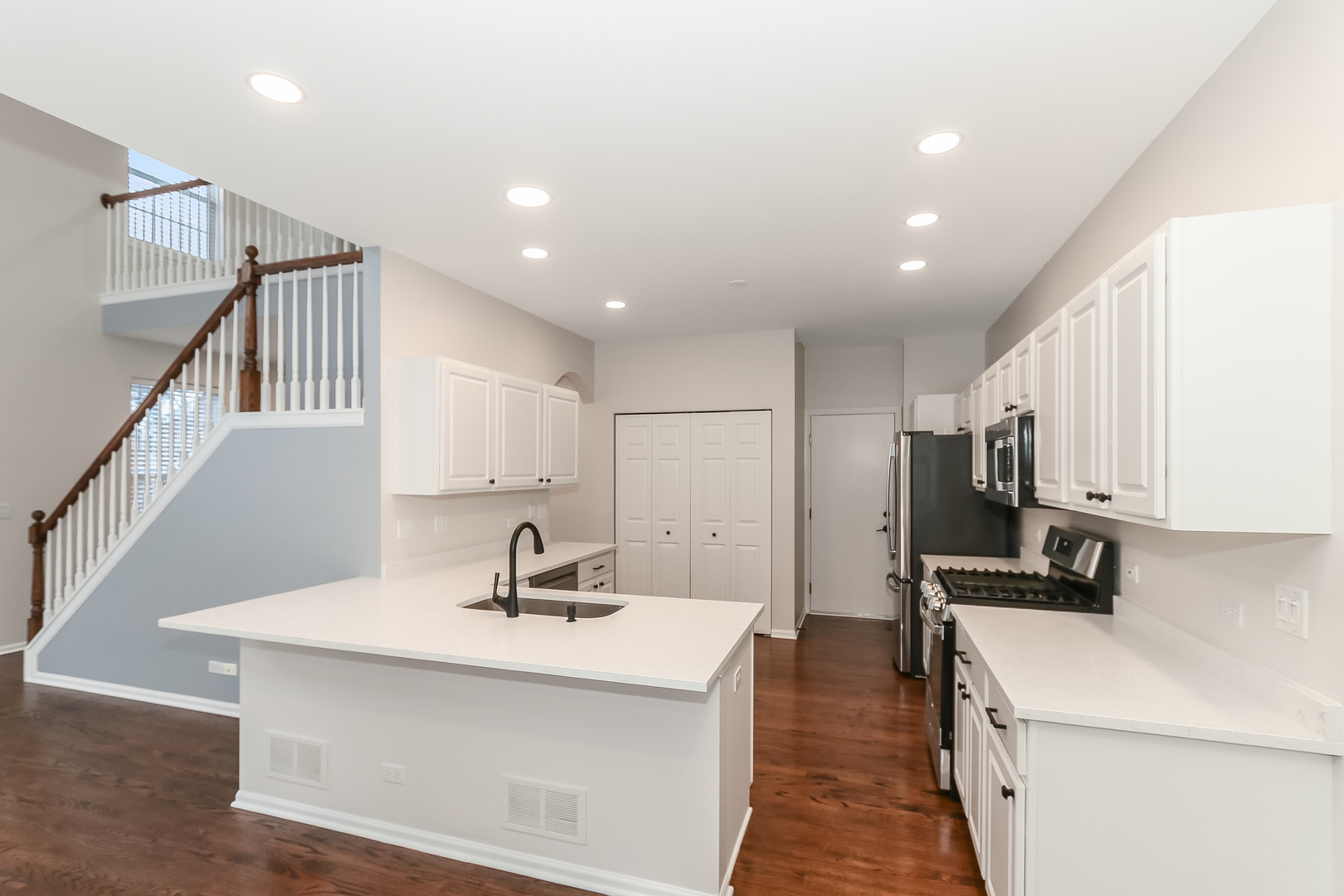 Tucked away in a peaceful cul-de-sac, this completely renovated townhome with only the finest high quality materials and thoughtful design ~ This townhome features a dramatic open floor plan with lots of windows to bring in natural light even on a gloomy day ~ Two story family / dining room with lots of recessed lighting / fireplace surrounded with a media niche ~ Gleaming hardwood floors thru-out the main level~Freshly painted~New carpet~Dream kitchen with premium quartz countertops / Breakfast bar/Ample cabinetry / New SS appliances ~ Primary bedroom with vaulted ceilings / walk in closet / private bath with double sinks, soaker tub / spacious second bedroom / open loft ~ professionally finished basement with full bath makes it a great entertaining space ~ Attached garage ~ Patio to enjoy your summer evenings. Radon system has been installed~Close to Randall/I-90/gracery shopping~Modern living at its finest! Why buy new construction when you can live in this luxurious home.