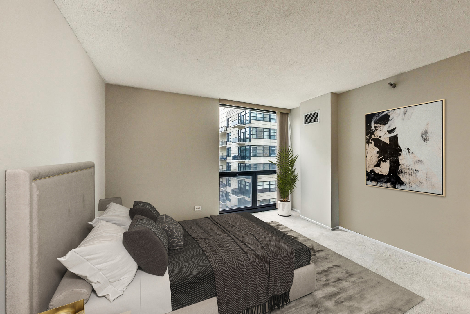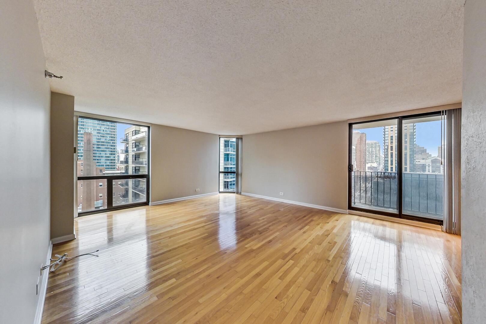 This fantastic corner unit drenches sunlight into a spacious 1 bed, 1 bath River North condo. At over 950 sq feet, the massive living/dining space showcases hardwood floors throughout, floor to ceiling windows and a generous balcony. The updated kitchen features cherry cabinets, granite countertops and stainless steel appliances. A large bedroom and bathroom round out the space. Additional storage locker included. Assessments include heat, AC, cable, internet and water. This full amenity building has a 24 hour doorman, on site property manager, fitness room with sauna, party room, massive sundeck, and large laundry room. Close to everything River North has too offer. Whole foods is 2 blocks away and amazing restaurants on every corner. Red, Brown and Purple lines are only minutes away. Rental parking is available within the building.