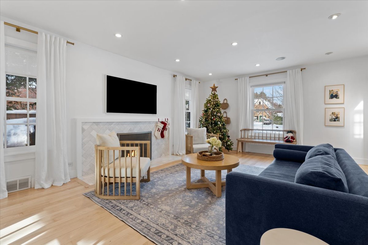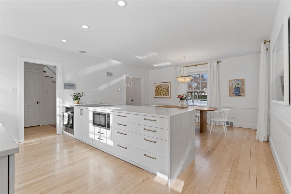 Welcome to this fabulous center-entry brick colonial in the heart of Kenilworth. This 3-bedroom, 2.1 bath home offers over 3,000 square feet of bright, open living space designed for both comfort and entertaining. The expansive living room features a beautifully updated wood-burning fireplace and opens to a sunny home office complete with a brand-new bar. The updated cook’s kitchen is a true highlight, featuring top-of-the-line appliances, abundant storage, and seamless flow into the spacious dining room. Renovated in 2022, the kitchen boasts quartz countertops, a new backsplash, a new dishwasher, and stunning open shelving with views of the backyard. Upstairs, the generous primary suite impresses with custom built-ins and a spa-like bath. Two additional large bedrooms, a hall bath, and a newly added second-floor laundry complete this level. The lower level offers a recently renovated recreation room with a fireplace and built-ins, along with a large storage area and secondary laundry space. Outdoor living is just as inviting with a private newly landscaped backyard featuring a fire pit, a brick paver patio, and a vegetable garden. An attached two car garage and mud area with shoe storage add to everyday convenience. Ideally located within walking distance to the Metra, the award-winning Joseph Sears School (K-8), and the beach, this home truly has it all.