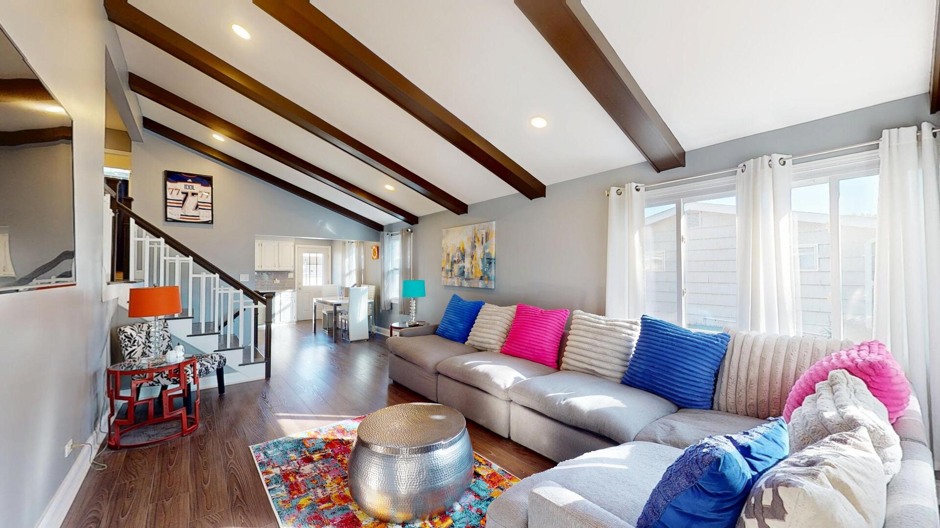 Welcome to this beautifully renovated 3-bedroom split-level home, perfectly situated on a charming, tree-lined street. This home combines modern updates with classic appeal, featuring an open-concept layout, vaulted and beamed ceilings, and rich, newer vinyl flooring throughout. Key Features Include: Stylish, updated eat-in kitchen with white cabinetry, granite countertops, and stainless steel appliances – including a refrigerator, microwave, and washer/dryer, all just 3 years old. Spacious bedrooms with contemporary vinyl flooring, organized closets, and newly installed ceiling fans with lighting. Bright and inviting lower-level family room complete with a full bathroom, laundry area, and ample storage. Recent mechanical updates include a newer hot water heater, generator hook-up, and a newly lined crawlspace with a 3-year-old sump pump. Fully fenced backyard offering privacy and outdoor enjoyment, plus a 2-car garage for added convenience. This meticulously maintained home is truly move-in ready. Don’t miss the opportunity to make it yours!