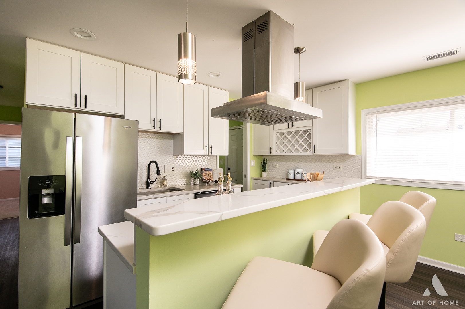 Beautiful, Ranch- style home with lots to offer! Discover your new home in the heart of Romeoville, IL! This charming 1200 square foot residence, has been thoughtfully updated to merge modern elegance with classic comfort. Featuring three spacious bedrooms and a beautifully remodeled bathroom adorned with polished bronze accents, this home is a perfect blend of style and functionality. Newly painted interiors and luxurious LVP flooring throughout, complemented by light carpet in the bedrooms, create a warm and inviting atmosphere. The heart of the home is the open-concept kitchen, dining, and living room area, designed for seamless entertaining. The glamorous kitchen boasts stunning white shaker cabinets, exquisite quartz countertops, and top-of-the-line stainless steel appliances. Enjoy your morning coffee at the cozy three-person island, complete with a cooking area and modern pendant lighting, as well as a coffee station with a wine rack for added convenience. Located near parks, shopping, dining & easy access to I-55. Schedule your showing today and make this beautiful home yours!