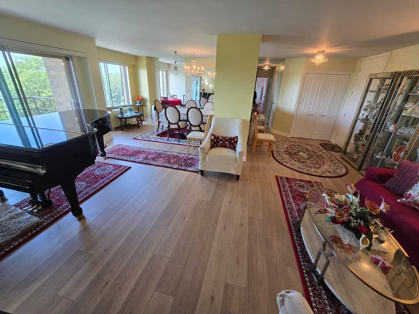 Winston Towers! Spacious 2BR/2BA condo with private balcony and stunning sunset views! Brand new hardwood flooring throughout the entry foyer, hallway, and main living areas. Expansive living room and formal dining room offer plenty of space for entertaining. The eat-in kitchen features all new cabinets, stainless steel appliances, and granite countertops. Both bathrooms have been beautifully remodeled with marble floors and granite vanities. Freshly painted interior. The primary bedroom includes an en-suite bath and a walk-in closet. Second bathroom with tub. Additional linen and utility closets for extra storage. Convenient same-floor laundry. Includes storage locker and garage parking. Enjoy the outdoor pool and pet-friendly building. Close to shopping and public transportation.