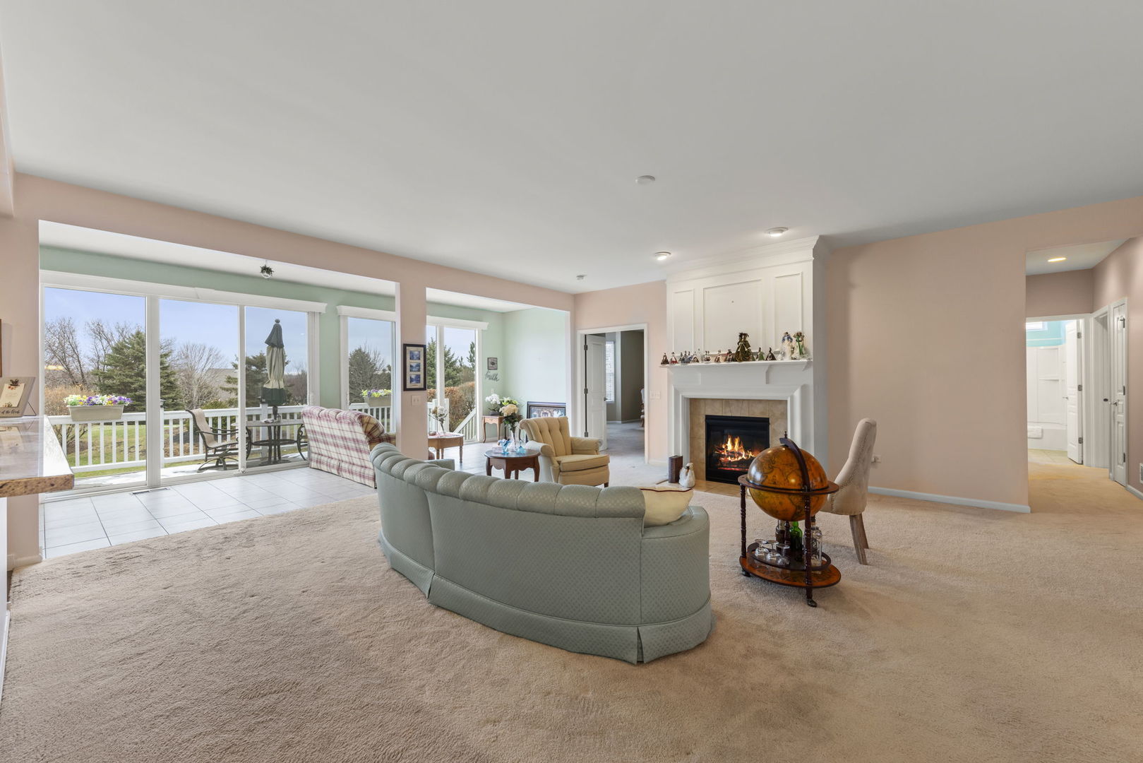 Highly desirable Shorewood Glen Del Webb, Charleston Model, ranch home featuring a finished basement with garden windows and ample storage space. Step into the inviting living room with a cozy fireplace and stunning views. The kitchen boasts upgraded granite countertops, abundant cabinetry, and a charming eating area overlooking the scenery. The main level offers two spacious bedrooms, including a large master suite with a walk-in shower, tub, and double sinks. The basement level includes a third bedroom and bathroom with a walk-in shower. This beautiful home is a true must-see. Located in the beautiful Del Webb resort like community, which offers a club house, state of the art work out equipment, indoor and outdoor pool, bacci courts, tennis and pickle ball courts, classes and clubs galore, fishing ponds and friendly neighbors. Come and see!