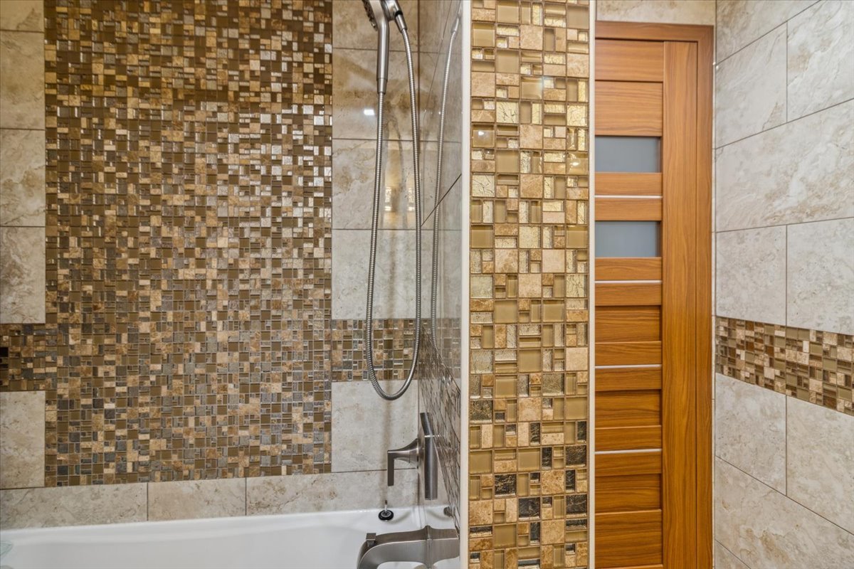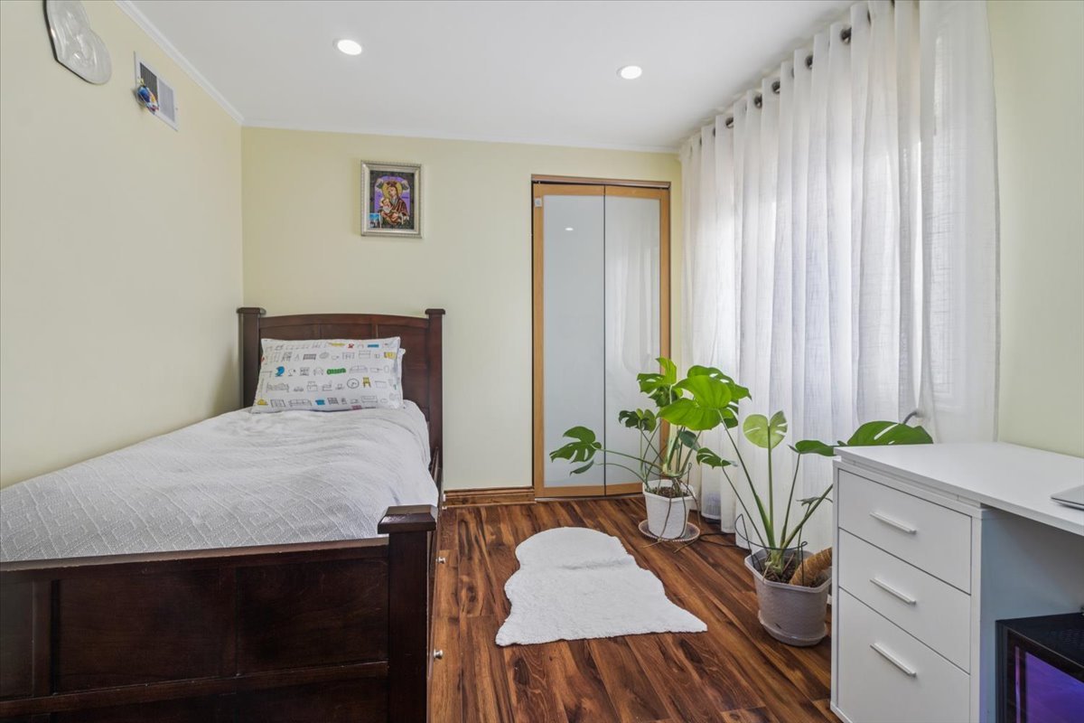 Fully remodeled in 2020, this beautifully updated home blends modern design with timeless craftsmanship. Step inside to find hardwood floors, custom millwork, and a stunning hardwood staircase with built-in lighting that adds a designer touch. The kitchen is a true highlight-featuring quartz countertops, a matching quartz backsplash, stainless steel appliances (all 2020), and a cozy eating area that opens right out to a private patio. The living room offers warmth and style with an electric fireplace as its focal point, while upstairs, the primary bedroom includes a walk-in closet. The finished basement expands your living space with a 4th bedroom and recreation area-ideal for extra space or hosting overnight guests. Recent updates add peace of mind, including a 2025 water heater, washer (2021), dryer (2024), and a newly redone driveway (2024). Enjoy the privacy of a fenced yard and the convenience of an oversized one-car garage. Meticulously maintained and set in a desirable area close to shops, schools, and major highways-this home offers modern comfort, thoughtful updates, and a wonderful place to call home.
