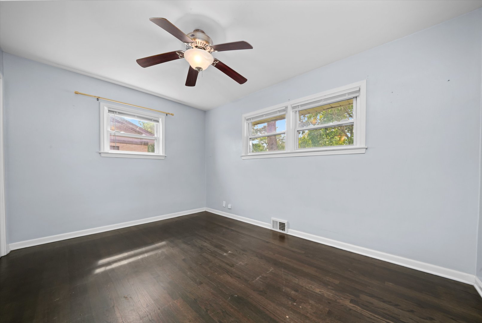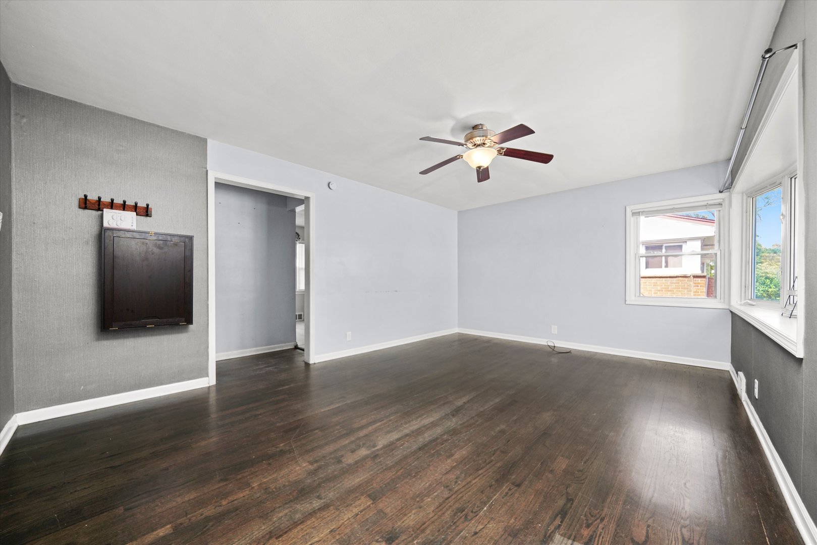 Welcome to this move-in ready brick ranch, ideally located just minutes from downtown Mount Prospect, the Metra station, and Randhurst Village! This beautifully maintained home combines thoughtful updates with timeless charm. Step inside to a spacious, light-filled living room featuring large windows and a welcoming layout. The kitchen has been tastefully updated with stainless steel appliances, granite countertops, a undermount sink and faucet, stylish tile backsplash, and generous cabinet space with room for a table. Hardwood flooring runs throughout the home, adding warmth and continuity. The bathroom has been refreshed with a new vanity and fixtures, and the entire home has been freshly painted in a soft gray with crisp white trim and doors. Updated lighting and hardware throughout complete the modern look. Enjoy outdoor living in the private fenced backyard with mature trees and a spacious patio. Perfect for relaxing and entertaining! A large driveway with a 2-car garage offers ample parking and storage space. Conveniently located near schools, shopping, dining, parks, and major transportation. This home is truly move-in ready and waiting for you!