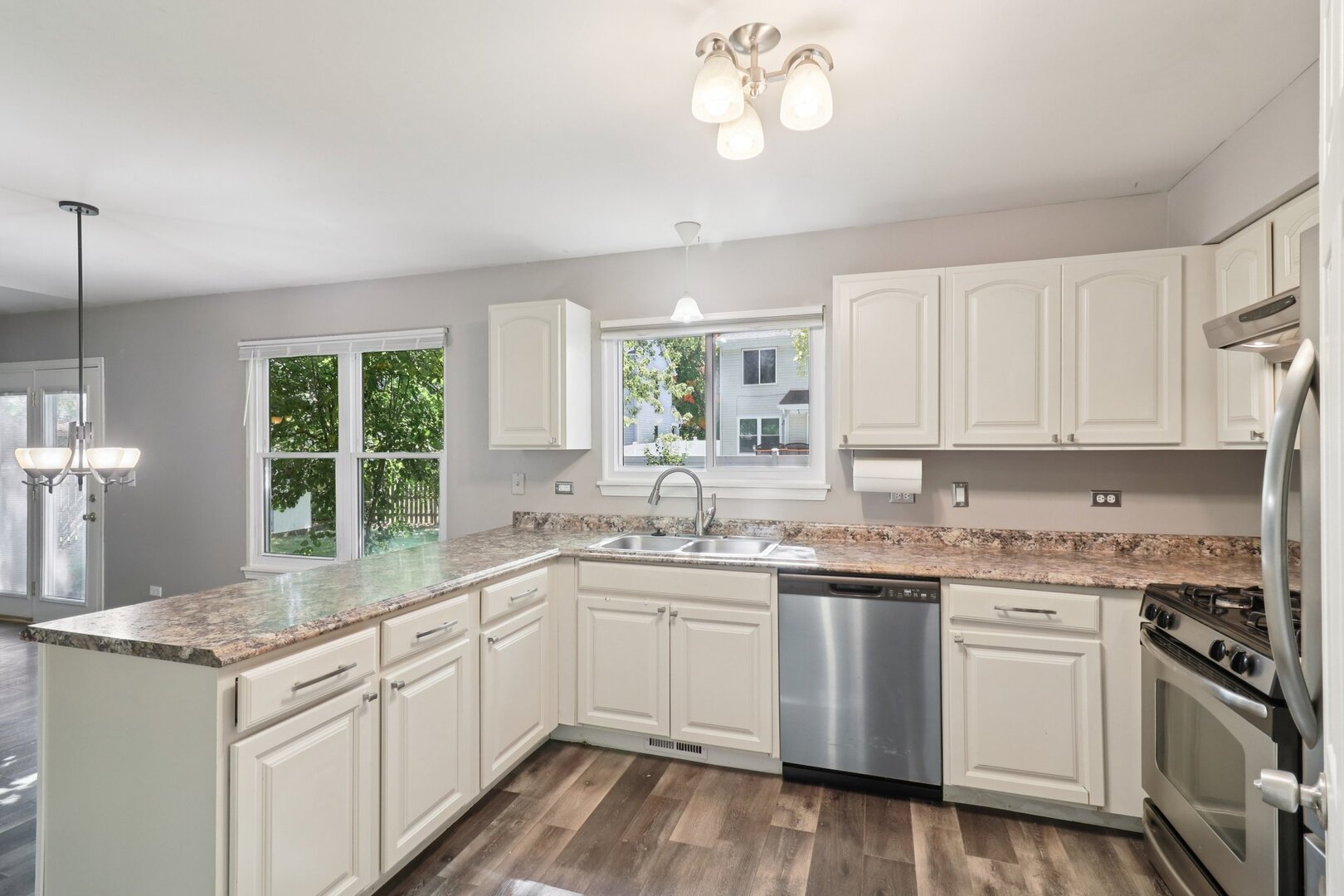 Welcome to this charming 3-bedroom, 1.5-bath half-duplex in Grayslake! Step into a sun-filled living room with updated flooring. The modern kitchen features stunning countertops and stainless steel appliances, flowing into the cozy family room with a warm fireplace. A convenient first-floor laundry adds to the home’s functionality. Enjoy new carpet on the stairs and second level, where all three bedrooms are located. Other upgrades include newer main-level flooring (3yrs), fresh paint in many rooms, a new dishwasher, and an added bedroom chandelier. Enjoy a fenced backyard in a desirable neighborhood with parks, bike paths, pond, tennis and basketball courts. Close to College of Lake County, Rollins Savanna Forest Preserve, and shopping. Located in the sought-after Grayslake Central High School district! Schedule your showing today!