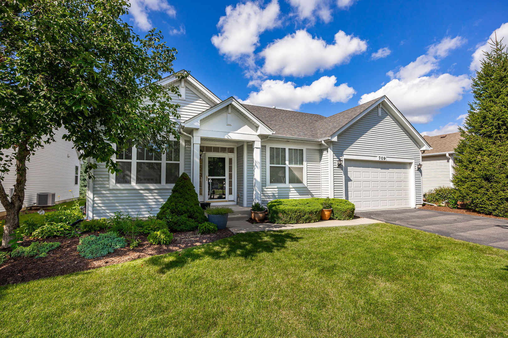 This is the one you’ve been waiting for – sought-after largest ranch model in Steeplechase at Churchill Club, and one of the rare few with a basement. Step inside to discover an open, light-filled floor plan with soaring 9-foot ceilings. The home features two spacious bedrooms, two full bathrooms, and a versatile front office that can easily serve as a third bedroom. The welcoming foyer flows into a bright living and dining area, perfect for entertaining or everyday living. The kitchen is both functional and spacious, offering maple cabinetry, a pantry, a large island, a double oven, and plenty of room for a full-sized dining table. It opens directly to the family room, creating a comfortable and practical flow. Your primary suite offers a walk-in closet and a private bath complete with a soaking tub and a separate shower. The unfinished basement provides endless possibilities, from extra storage to creating a workshop or finishing it for additional living space. Outside, enjoy a concrete patio and a beautifully maintained yard. Recent updates, including a NEW Carpet, NEWer Roof, NEWer Siding, NEW DISHWASHER (2025), and NEW REFRIGERATOR (2024), bring added peace of mind. The two-car garage provides ample parking and storage space. Here, life extends beyond your front door. This 55+ maintenance-free community includes a clubhouse, pool, lawn care, snow removal, and an active social atmosphere. Nearby, you’ll find a variety of shops and restaurants, along with a central location close to daily conveniences and the growing community of Oswego. Don’t miss this rare opportunity – schedule your showing today and see why this home is truly special.