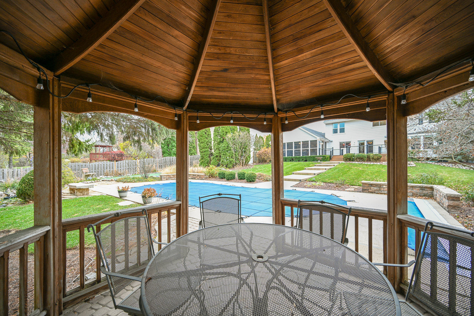 HOME SWEET HOME WITH RESORT STYLE LIVING! THIS CULDESAC LOCATION TUCKED AWAY IN PRESTIGIOUS GASLIGHT WEST AWAITS YOU WITH OVER 4000SQ FT OF FINISHED LIVING SPACE! GRAND FOYER OPENS TO A PRIVATE PLAYROOM/PARLOR WITH FRENCH DOORS TO YOUR LEFT OR A FORMAL SEPARATE DINING ROOM TO YOUR RIGHT. HEAD ON BACK TO A HUGE KITCHEN AND FAMILY ROOM COMBO WITH GRANITE COUNTERS, STAINLESS STEEL APPLIANCES, BUTLERS PANTRY, OVERSIZED BAY WINDOW AND A GORGEOUS WB FIREPLACE W/GAS START. HARDWOOD FLOORS THROUGHOUT ENTIRE MAIN FLOOR. MANY CLOSETS, PANTRY, STORAGE AREA AND A QUAINT DEN/OFFICE/LIBRARY WITH A PRIVATE REMODELED FULL BATH (POTENTIAL INLAW ARRANGEMENT). 2ND FLOOR BOASTS 3 LARGE BEDROOMS AND A FULL REMODELED HALL BATH WITH DUAL VANITY PLUS A PRIMARY SUITE RETREAT WITH FIREPLACE SITTING AREA AND A SOAKING TUB/SEPARATE SHOWER WITH VAULTED CEILING AND SKYLIGHT TOO! LETS NOT FORGET THE FULL FINISHED BASEMENT WITH MORE BEDROOMS, A FULL BATH AND A REC ROOM, MINI KITCHEN AREA AND A DINING SPACE! ALL THIS WITH TONS MORE STORAGE SPACE AND A HUGE LAUNDRY ROOM (WATER AND HOOK UP AVAILABLE IN CLOSET ON MAIN FLOOR FOR RELOCATING W/D IF DESIRED). LETS TALK YARD:VACATION IN YOUR OWN YARD WITH INGROUND POOL, WINTER COVER, AUTO SOLAR COVER, GAZEBO, KOI POND, PUTTING GREEN, FIREPIT AND A HUGE SHED ALL WITH PROFESSIONAL LUSH LANDSCAPE AND A FULLY FENCED YARD BACKING TO WOODED AREA AND A POND. YOU CAN TAKE IN THE VIEW OF ALL THIS FROM YOUR BRAND NEW TREXLIKE DECK JUST INSTALLED AND MOST ROOMS IN THE HOUSE BUT MOST OF ALL FROM A HUGE 3 SEASON ROOM THAT DOUBLES FOR RELAXATION AND ENTERTAINMENT. YOU WILL NOT BE DISAPPOINTED AS HOUSE POWER WASHED, WINDOWS WASHED, CARPETS CLEANED AND YOUR NEW HOME AWAITS YOU! ROOF 2015, HWH 2018, NEW DRIVEWAY/FRONT YARD SOD 2020, EXTERIOR PAINT 2020, MANY WINDOWS 2014, GUTTER GUARDS 2024