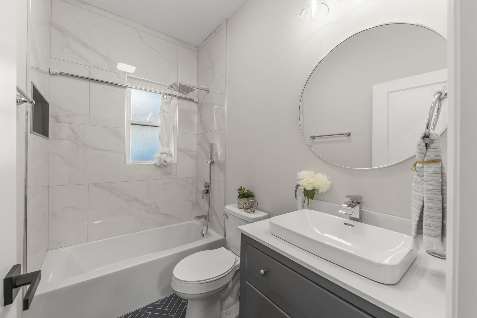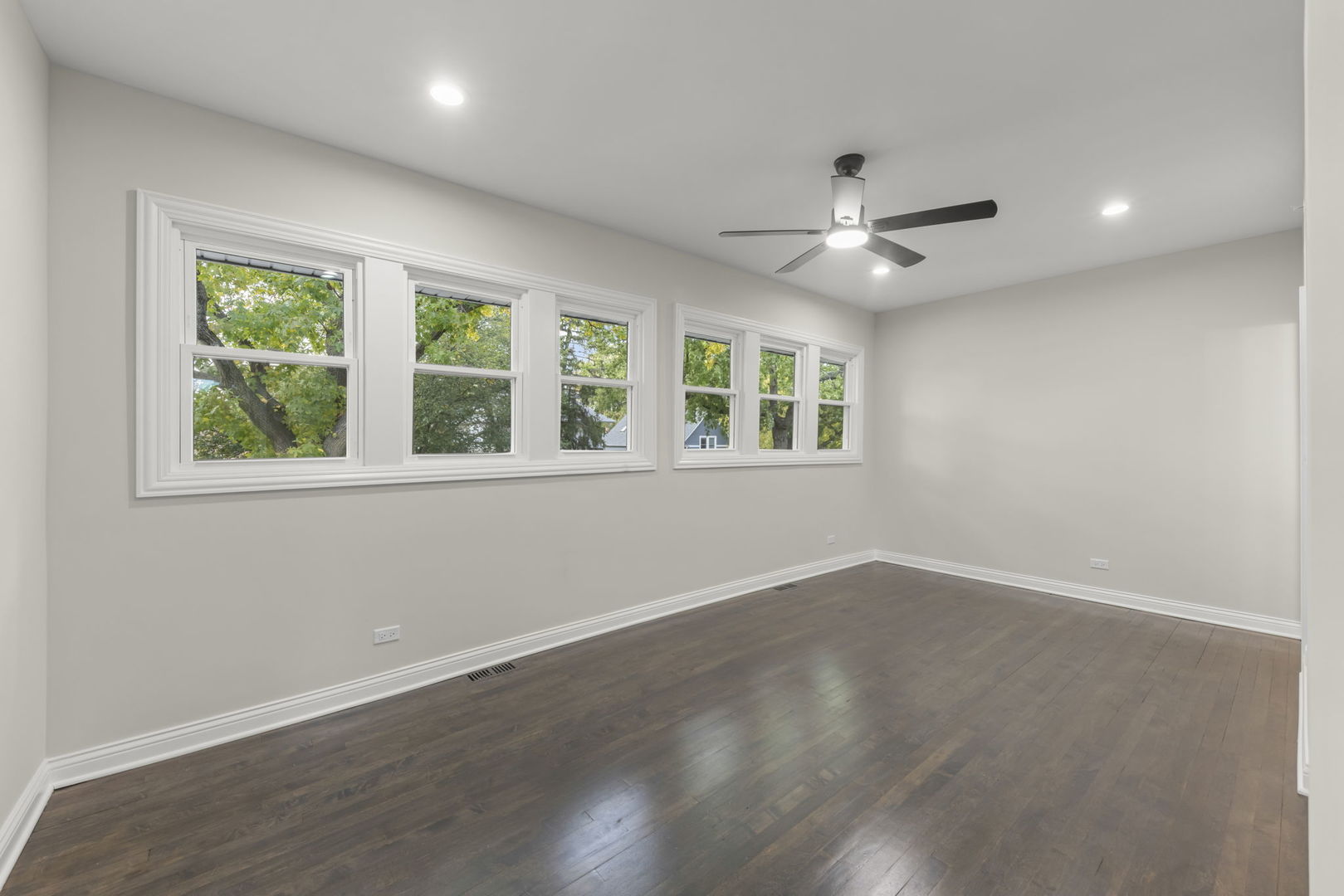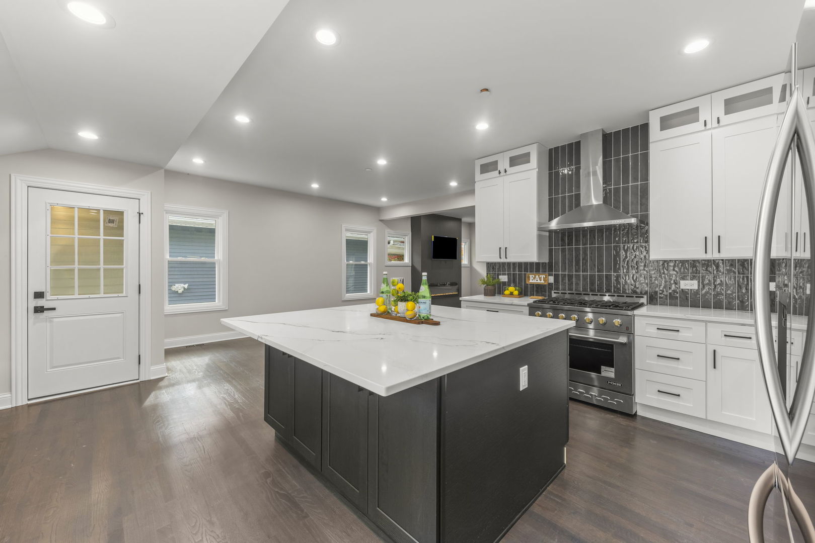 Welcome to this exceptional full-gut rehab in wonderful Oak Park! This beautifully transformed 5-bedroom, 3-bath home has been fully updated with all-new mechanicals and a thoughtful cosmetic redesign inside and out. Enjoy a stunning kitchen featuring a large island, new stainless-steel appliances, 42-inch shaker cabinetry, and quartz countertops. Upstairs, you’ll find two spacious bedrooms connected by a Jack-and-Jill bathroom. The main level offers two additional bedrooms, a full bath, and a cozy electric wall fireplace in the living area. The fully finished walkout basement provides carpeted living space, a fifth bedroom, and a remodeled full bathroom. A drain tile system with sump pump ensures the lower level stays dry year-round. Outside, a brand-new concrete driveway and patio offer rare off-street parking, and the oversized two-car garage with remote openers easily accommodates larger vehicles through its wide overhead door. Whittier Elementary and Gwendolyn Brooks Middle School, with excellent proximity to Andersen and Taylor Parks. Nothing left to do but move in-don’t miss this one!