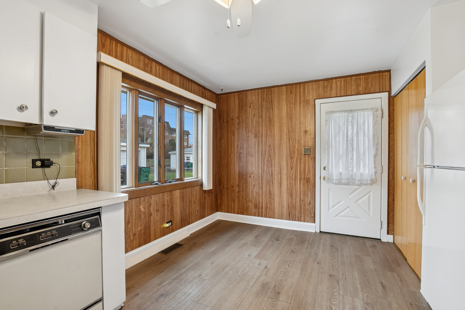 Welcome to this charming 4-bedroom home. This residence features beautiful wood laminate flooring throughout, creating a warm and inviting atmosphere. The updated bathroom has a walk-in shower, while the living room showcases built-in shelving, perfect for displaying your favorite decor. Freshly painted in a neutral color. This home offers an eat-in kitchen equipped with a pantry closet. Enjoy the convenience of a large 2-car garage for your vehicles and storage needs. The privacy-fenced backyard provides a perfect retreat for outdoor entertaining or relaxation. The hot water tank is 3 years old, the A/C is 10 years old, and the refrigerator is 5 years old. Nestled in a desirable neighborhood, you’ll have easy access to local amenities, parks, and major expressways. Home is being sold As-Is.