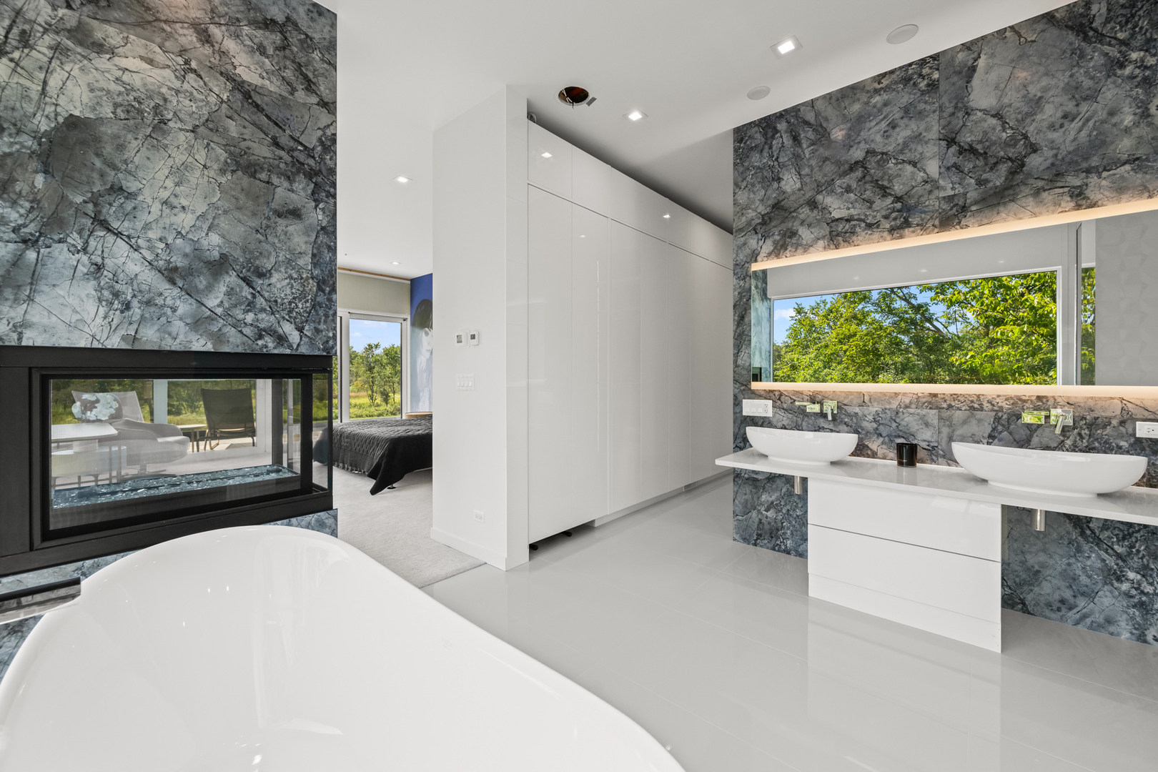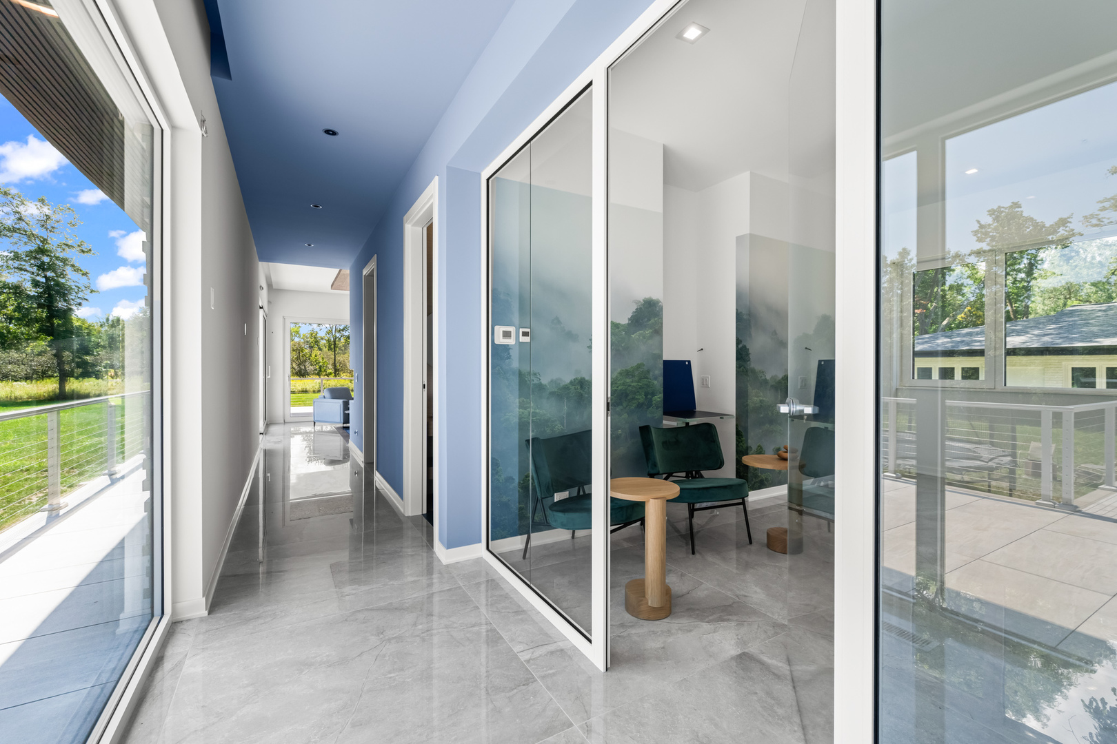 711 Becker Road – Exceptional Residence Offered at $700,000 Below Appraisal Located in East Glenview and adjacent to the Watersmeet Woods Nature Preserve, this architecturally distinguished property features premium European finishes and superior craftsmanship. Notable details include a custom 5’x10′ German-manufactured front door and 16-foot ceilings, all executed to museum-quality standards. The Great Room is appointed with Swiss-imported smoked white oak flooring, enhanced by Swarovski crystal inlays, and heated Spanish porcelain tile throughout. The contemporary chef’s kitchen is equipped with an expansive island, Sub-Zero refrigeration, a 48″ Wolf range, Miele built-in steam oven, Miele coffee system, and a secondary butler/catering kitchen fitted with Wolf, Sub-Zero, and Bosch appliances. The primary suite provides a private 20’x8′ balcony, a 38″ peninsula fireplace, and a spa-caliber bathroom featuring a steam shower and heated floors. Additional amenities include a main floor guest suite, executive office, exercise room, and lounge. Other features comprise a three-car garage, dog washing station, heated driveway and walkways, four Trane HVAC systems with ERV, and smart home pre-wiring for advanced comfort and technology integration. This property represents both a distinctive living experience and a sound investment opportunity.
