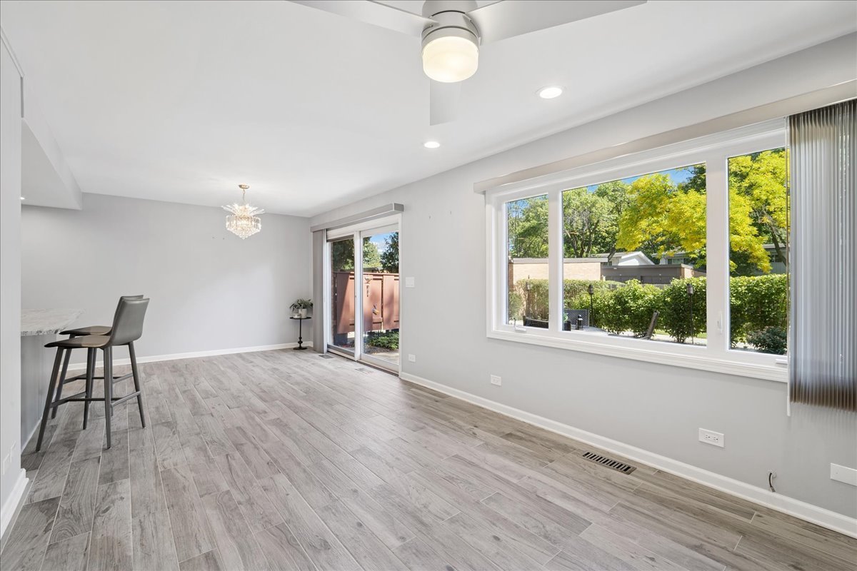 A rare opportunity to own and live in this fantastic all brick three-story townhome in Carriage Hill built by Blietz. An Impeccably maintained low maintenance community. A desirable location in East Glenview allowing you to walk to parks, the train and plenty of shopping and dining. This home has gone through a recent and complete renovation with beautiful finishes throughout. Absolutely nothing to do but move right into this charming, split level townhouse that feels and lives like a single-family home. An open and bright living room with vaulted ceiling brings in incredible natural western exposure light. Gorgeous hardwood flowers and stone floors throughout. All brick on the exterior with large picture windows from every room. There is more closet space in this home than you would ever imagine. Each of the large bedrooms has multiple floor, ceiling, closets, and vaulted ceilings, making them feel extra spacious. Your main living level Is a large Family Room / Dining room open from the kitchen with a breakfast bar that seats for 4 stools. The kitchen is absolutely beautiful with so many cabinets and a large peninsula. Granite countertops, gorgeous Dove Gray cabinets with stainless steel appliances. Under cabinet lighting enhances an absolutely stunning backsplash. An extra wide patio door opens onto a gorgeous, private and large terrace. On the same level is a beautiful powder room with access to a laundry and utility room with a full set of washer dryer appliances. Here is a surprise that under half of the home is a tall concrete finished floor and wall step-in crawlspace. You have to see it to believe how much storage you will now have in your own home. So many details throughout include beautiful, custom window treatments, and all closets have custom shelving and rack systems. Your deeded, incredibly long all brick garage, #32 is only steps from your home with a remote keypad, Interior multiple lighting options and electrical outlets for your convenience and or workshop space. Plenty of guest parking, both in the back and the front of your home. Glenview award-winning schools both district 34 and district 225. Lions, Pleasant Ridge, Springman, and Glenbrook South High School. Amazing location allows you to be close to downtown Glenview, and steps from the metro train, beautiful parks, shopping and dining. Low taxes and month assessment. Unbeatable value! Don’t miss your chance to make this wonderful home your new home. Welcome home!