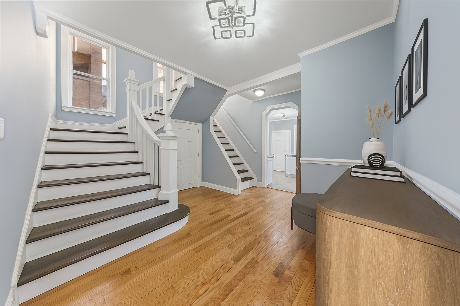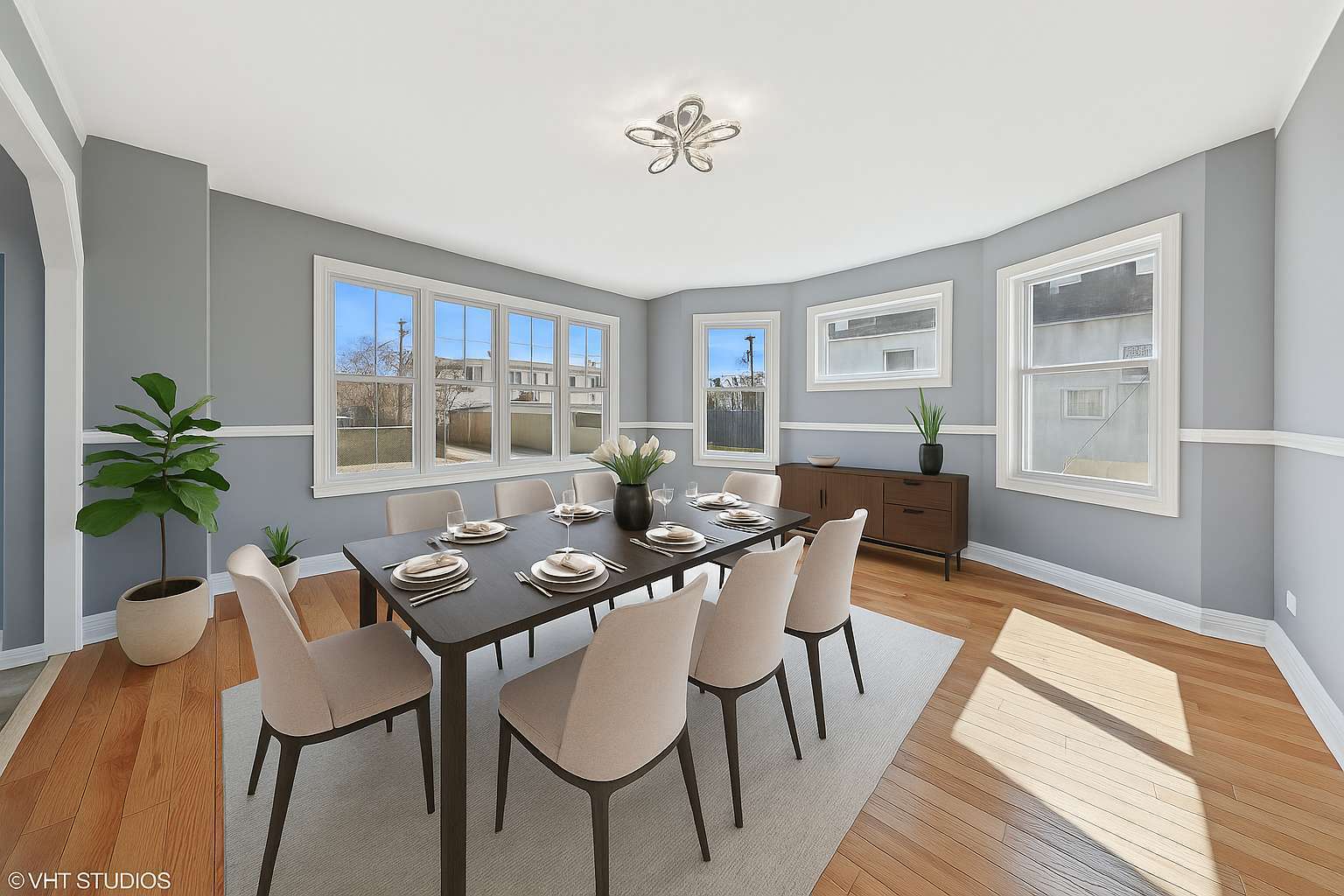 Welcome to this stunning, fully renovated home located in South Chicago’s Greater Grand Crossing neighborhood. This impressive 3-story residence offers 6 bedrooms, 2 marble bathrooms, and a full finished basement, perfectly combining timeless craftsmanship with modern comfort. Step inside to find original restored woodwork, detailed craftsmanship, and gleaming hardwood floors throughout, showcasing the home’s character. The centerpiece of the home is an elegant solid wood staircase, adding warmth and sophistication to the open layout. The spacious, open-concept floor plan is ideal for modern living and entertaining. The updated kitchen features stainless steel appliances, granite countertops, and abundant cabinet space. Both bathrooms are beautifully finished with luxurious marble details. Enjoy peace of mind with brand-new windows, new siding, and zoned heating and cooling systems for year-round comfort. The home sits on a double lot, offering ample outdoor space for gatherings, gardening, or future expansion. This property is a rare find-combining historic charm, fine finishes, and contemporary updates in one of South Chicago’s most established neighborhoods.