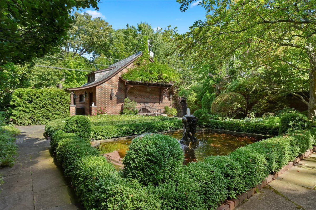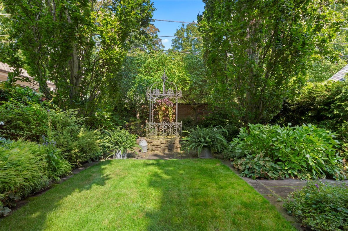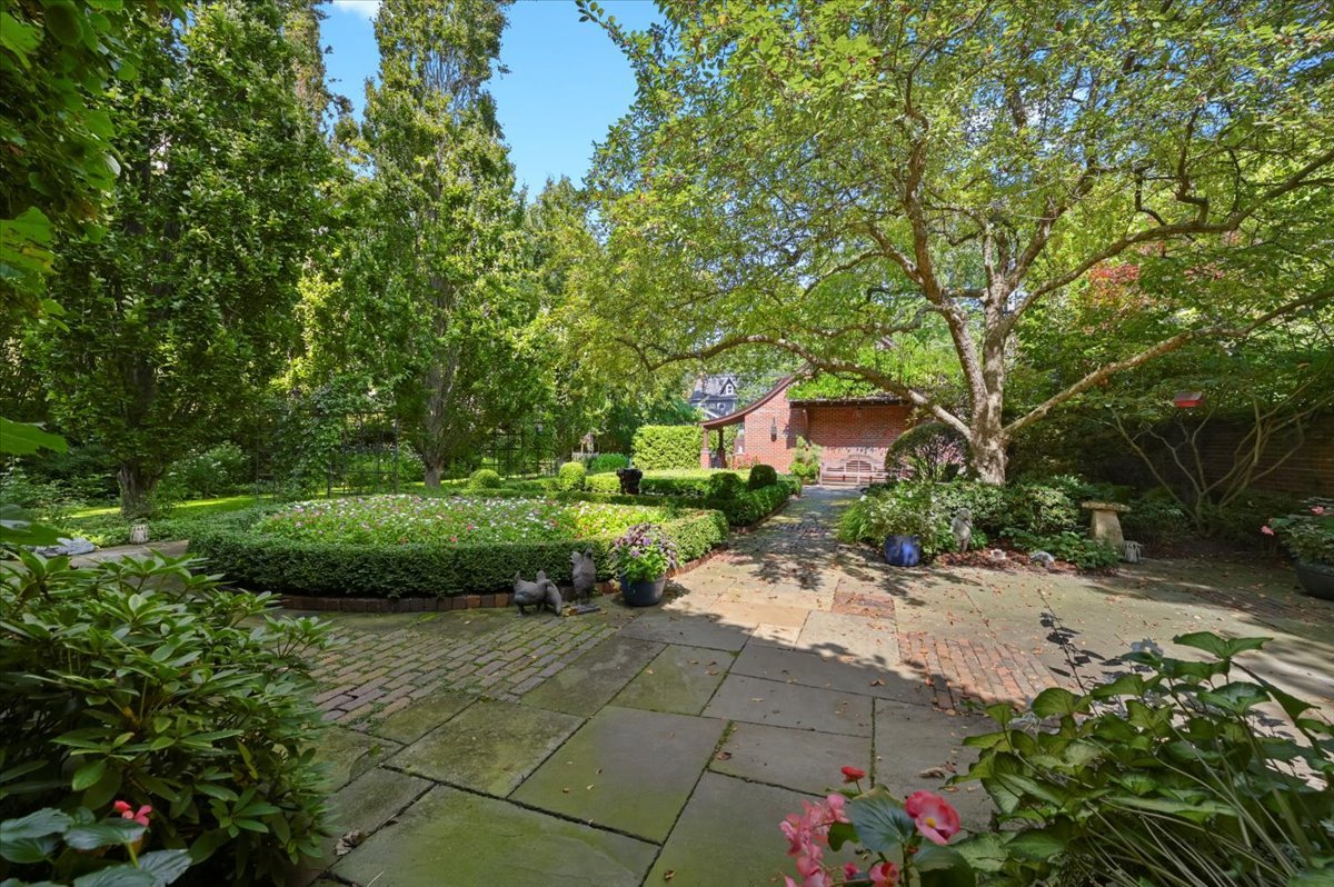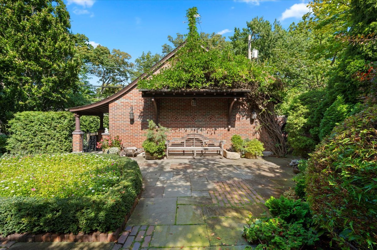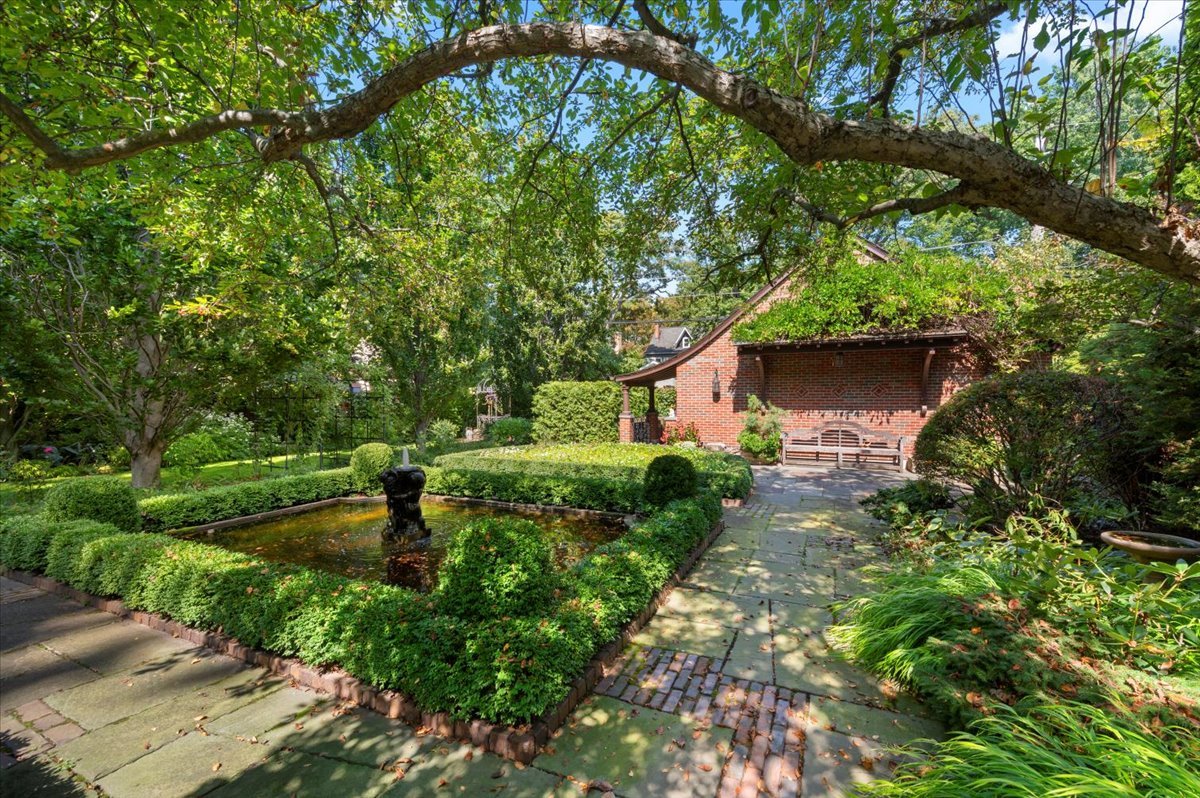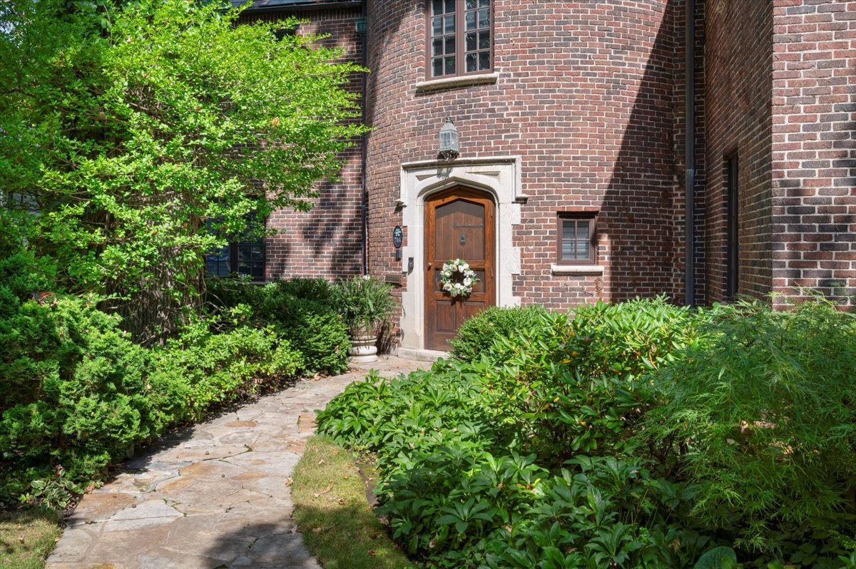 An Enchanting English Oasis in the Heart of East Wilmette. Welcome to a storybook English country home nestled within a lush, tranquil garden sanctuary-an exceptional retreat located on a coveted street in walkable East Wilmette, just steps from the beach, town, Metra, parks, and top-rated schools. Timeless architectural elegance and quality craftsmanship define this one-of-a-kind residence, where rich moldings, curved walls, and gracious proportions blend effortlessly with modern updates. A marble-floored entry foyer with a sweeping curved staircase sets the tone for the refined interiors. The sunlit living room, featuring a fireplace and serene views of both front and rear gardens and the formal dining room are perfect for entertaining. French doors lead to a wide hallway adorned with a wet bar and built-in desk, flowing seamlessly into the breathtaking 10-foot-ceiling family room. This inviting space includes a fireplace, custom bookshelves, a large bay window, and enchanting garden views. An adjoining round breakfast room connects to the covered back porch and magical yard, while the bright white kitchen offers a central island, pantry, and high-end appliances-truly the heart of the home. Upstairs, the spacious primary suite overlooks the gardens and features a luxurious bath with double sinks, soaking tub, and separate shower. A charming adjoining sitting room with fireplace and window seats can serve as a 4th bedroom or office. There are two additional bedrooms that share a Jack-and-Jill bath plus upstairs laundry perfectly positioned off the main hallway. The third level includes a 5th bedroom, full bath, and a large unfinished attic-ideal for a future teen hangout or game room. The lower level provides a partially finished rec room, utility and laundry areas, plus direct access to the yard. Step outside into your own private Eden-an authentic brick-walled English garden featured in Traditional Home magazine. Meandering pathways lined with perennials, handcrafted iron arches, a walled lily pond with fountain, and cozy seating areas create an unmatched sense of peace and beauty. A generous bluestone patio offers the perfect spot for outdoor dining and entertaining. This enchanting East Wilmette gem offers the rare combination of architectural charm, modern comfort, and a truly magical setting-ready to be cherished for generations. Special features include copper gutters, a slate roof, whole home generator, updated HVAC, electrical, plumbing and windows, newer garage with EV charging capability and heated apron, and more. This home is not to be missed.