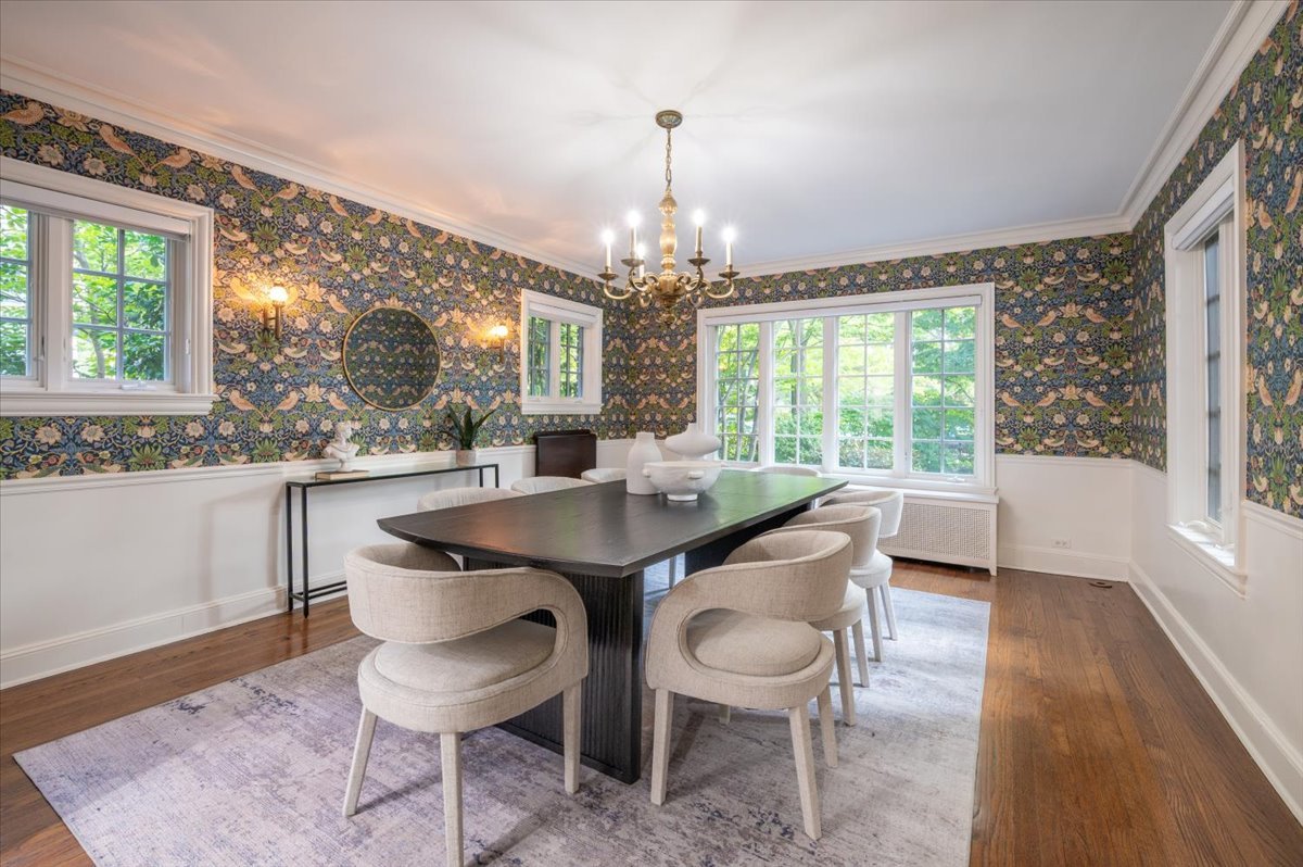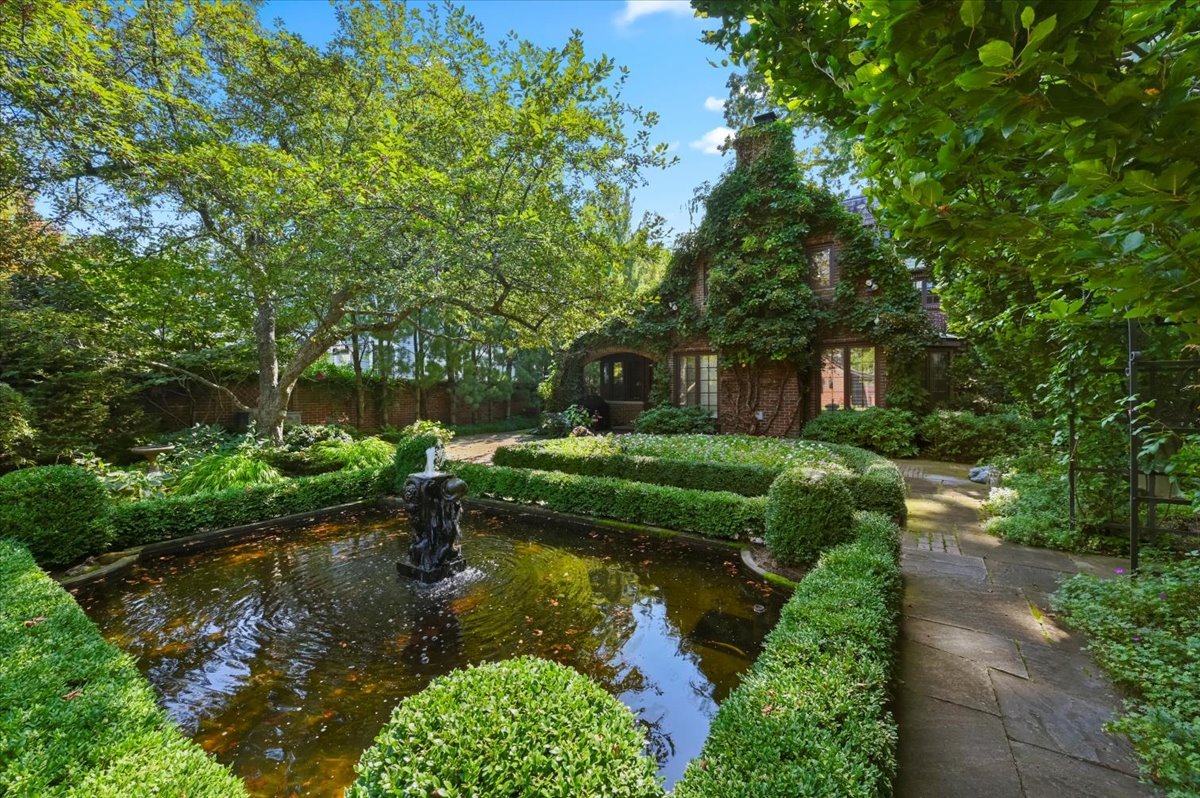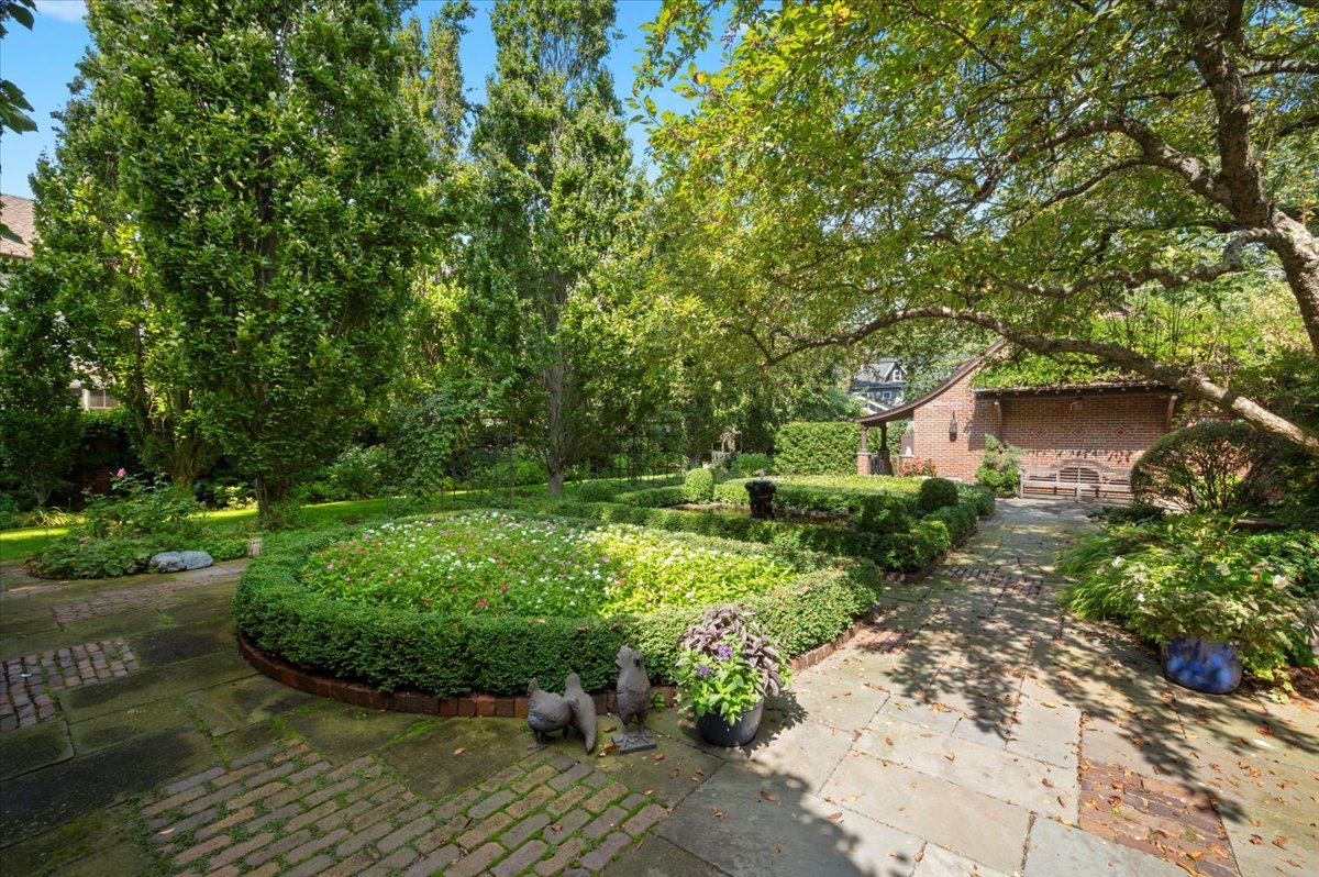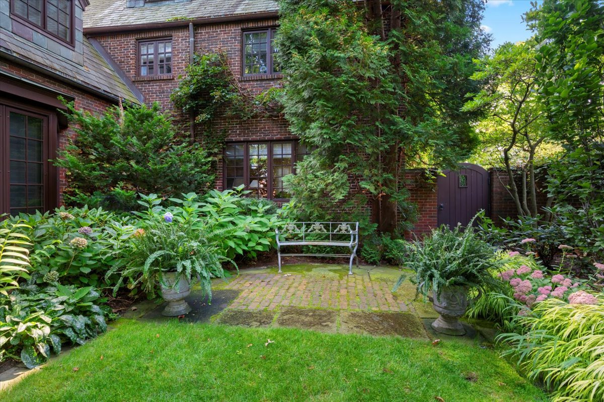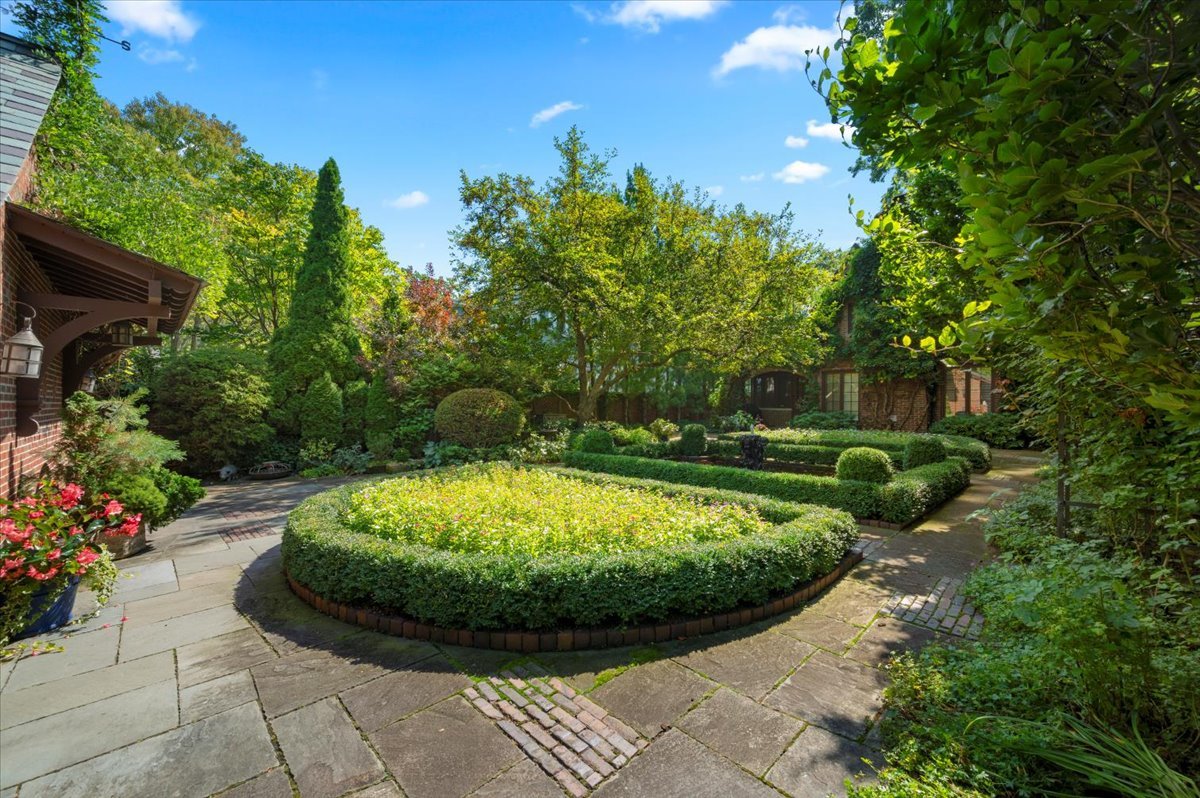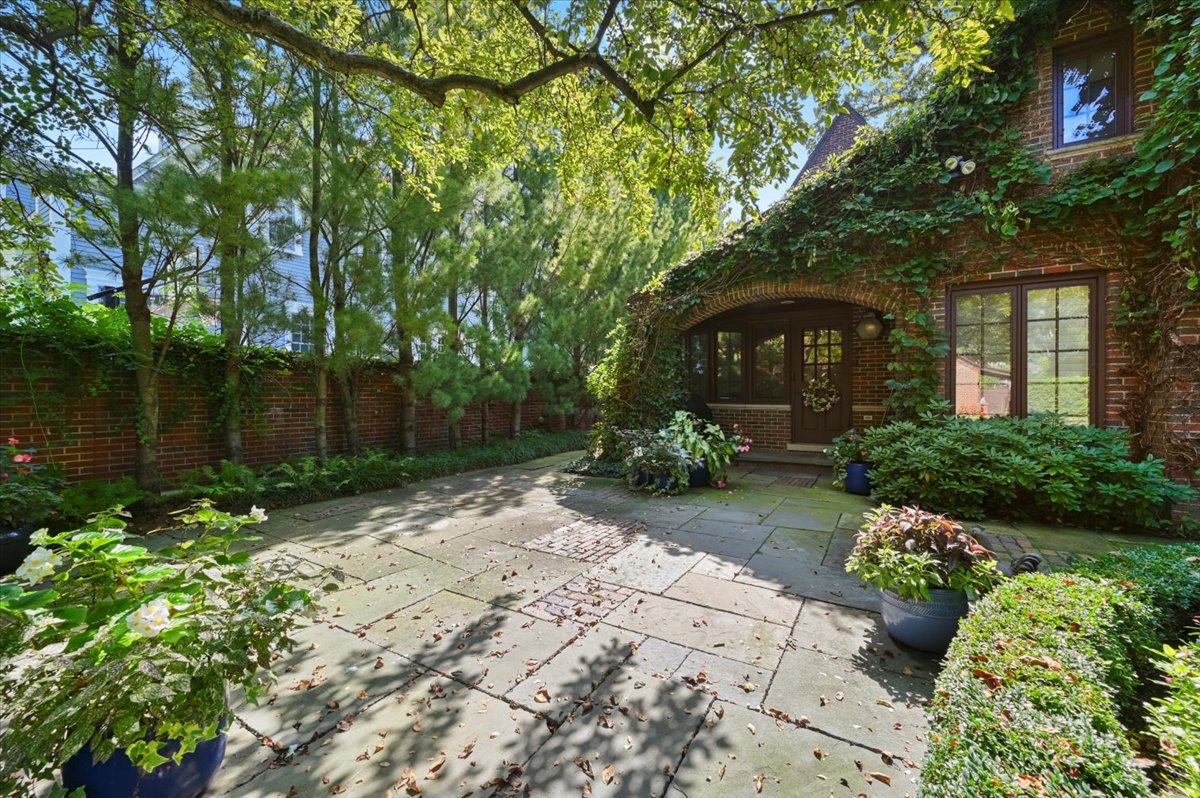 An Enchanting English Oasis in the Heart of East Wilmette. Welcome to a storybook English country home nestled within a lush, tranquil garden sanctuary-an exceptional retreat located on a coveted street in walkable East Wilmette, just steps from the beach, town, Metra, parks, and top-rated schools. Timeless architectural elegance and quality craftsmanship define this one-of-a-kind residence, where rich moldings, curved walls, and gracious proportions blend effortlessly with modern updates. A marble-floored entry foyer with a sweeping curved staircase sets the tone for the refined interiors. The sunlit living room, featuring a fireplace and serene views of both front and rear gardens and the formal dining room are perfect for entertaining. French doors lead to a wide hallway adorned with a wet bar and built-in desk, flowing seamlessly into the breathtaking 10-foot-ceiling family room. This inviting space includes a fireplace, custom bookshelves, a large bay window, and enchanting garden views. An adjoining round breakfast room connects to the covered back porch and magical yard, while the bright white kitchen offers a central island, pantry, and high-end appliances-truly the heart of the home. Upstairs, the spacious primary suite overlooks the gardens and features a luxurious bath with double sinks, soaking tub, and separate shower. A charming adjoining sitting room with fireplace and window seats can serve as a 4th bedroom or office. There are two additional bedrooms that share a Jack-and-Jill bath plus upstairs laundry perfectly positioned off the main hallway. The third level includes a 5th bedroom, full bath, and a large unfinished attic-ideal for a future teen hangout or game room. The lower level provides a partially finished rec room, utility and laundry areas, plus direct access to the yard. Step outside into your own private Eden-an authentic brick-walled English garden featured in Traditional Home magazine. Meandering pathways lined with perennials, handcrafted iron arches, a walled lily pond with fountain, and cozy seating areas create an unmatched sense of peace and beauty. A generous bluestone patio offers the perfect spot for outdoor dining and entertaining. This enchanting East Wilmette gem offers the rare combination of architectural charm, modern comfort, and a truly magical setting-ready to be cherished for generations. Special features include copper gutters, a slate roof, whole home generator, updated HVAC, electrical, plumbing and windows, newer garage with EV charging capability and heated apron, and more. This home is not to be missed.