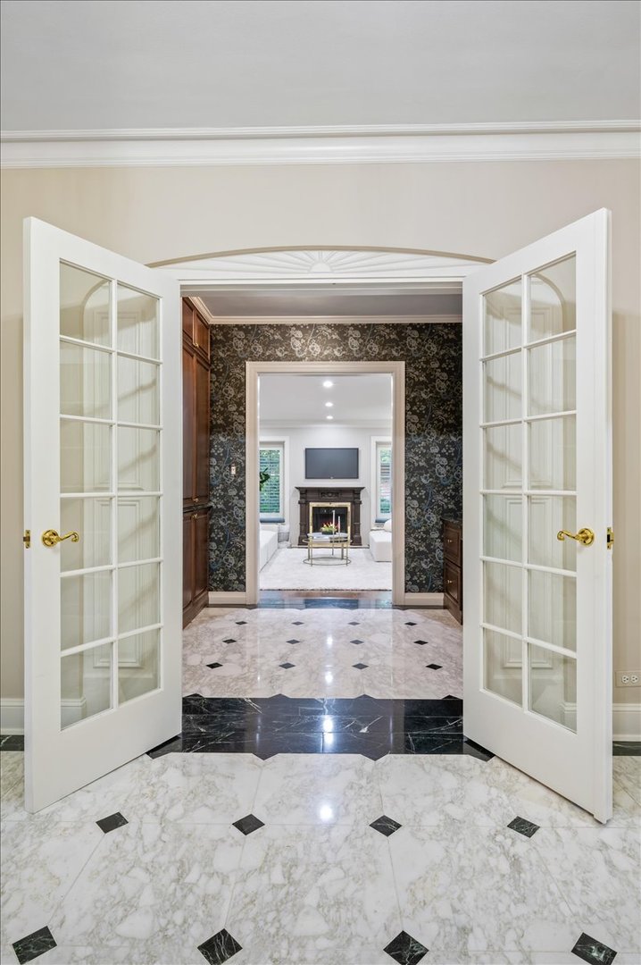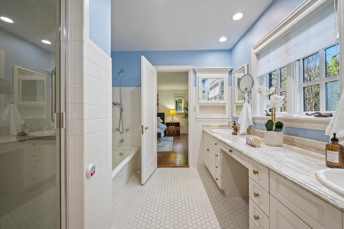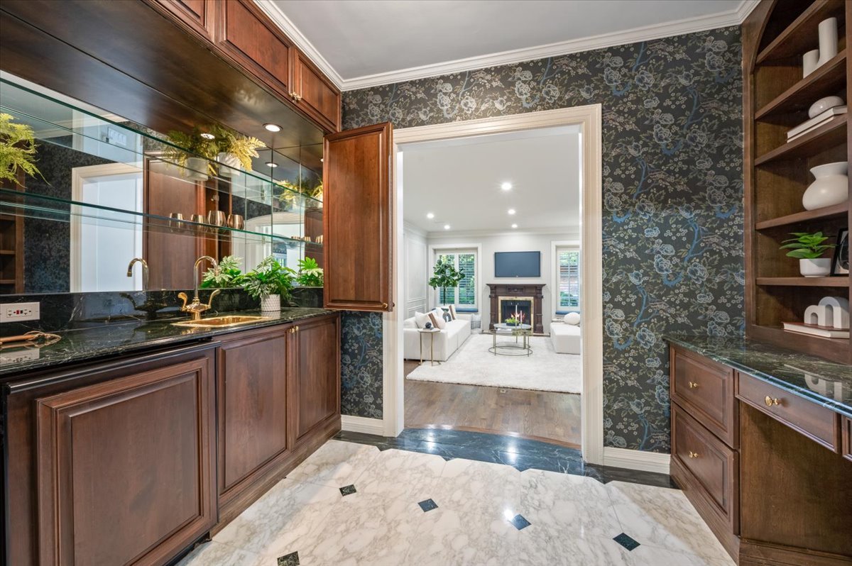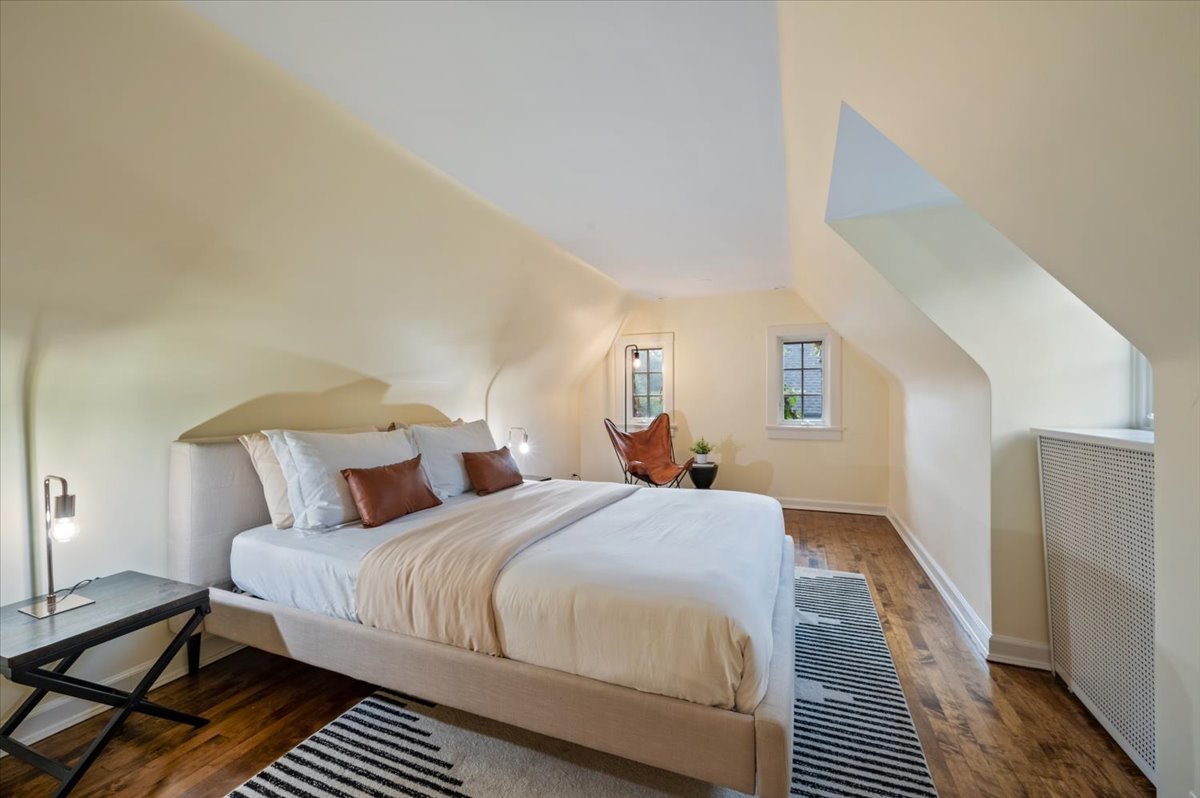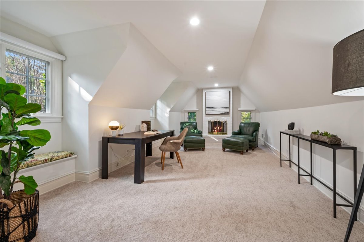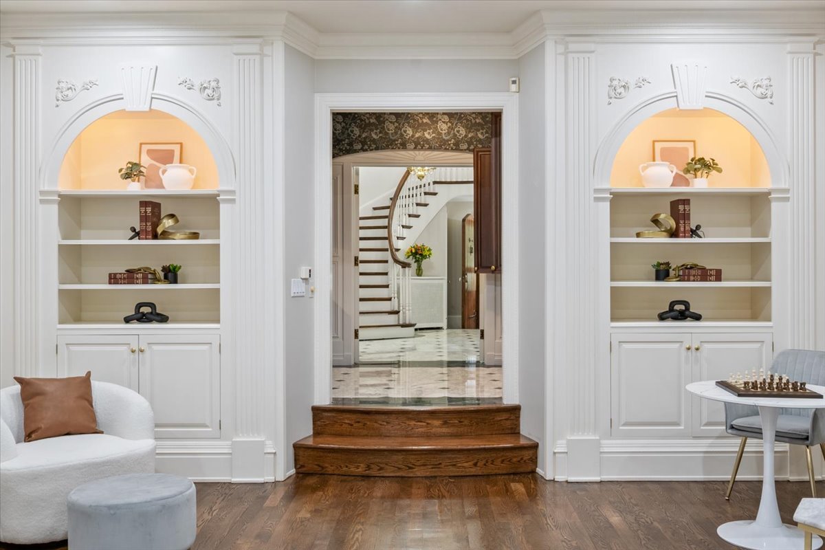An Enchanting English Oasis in the Heart of East Wilmette. Welcome to a storybook English country home nestled within a lush, tranquil garden sanctuary-an exceptional retreat located on a coveted street in walkable East Wilmette, just steps from the beach, town, Metra, parks, and top-rated schools. Timeless architectural elegance and quality craftsmanship define this one-of-a-kind residence, where rich moldings, curved walls, and gracious proportions blend effortlessly with modern updates. A marble-floored entry foyer with a sweeping curved staircase sets the tone for the refined interiors. The sunlit living room, featuring a fireplace and serene views of both front and rear gardens and the formal dining room are perfect for entertaining. French doors lead to a wide hallway adorned with a wet bar and built-in desk, flowing seamlessly into the breathtaking 10-foot-ceiling family room. This inviting space includes a fireplace, custom bookshelves, a large bay window, and enchanting garden views. An adjoining round breakfast room connects to the covered back porch and magical yard, while the bright white kitchen offers a central island, pantry, and high-end appliances-truly the heart of the home. Upstairs, the spacious primary suite overlooks the gardens and features a luxurious bath with double sinks, soaking tub, and separate shower. A charming adjoining sitting room with fireplace and window seats can serve as a 4th bedroom or office. There are two additional bedrooms that share a Jack-and-Jill bath plus upstairs laundry perfectly positioned off the main hallway. The third level includes a 5th bedroom, full bath, and a large unfinished attic-ideal for a future teen hangout or game room. The lower level provides a partially finished rec room, utility and laundry areas, plus direct access to the yard. Step outside into your own private Eden-an authentic brick-walled English garden featured in Traditional Home magazine. Meandering pathways lined with perennials, handcrafted iron arches, a walled lily pond with fountain, and cozy seating areas create an unmatched sense of peace and beauty. A generous bluestone patio offers the perfect spot for outdoor dining and entertaining. This enchanting East Wilmette gem offers the rare combination of architectural charm, modern comfort, and a truly magical setting-ready to be cherished for generations. Special features include copper gutters, a slate roof, whole home generator, updated HVAC, electrical, plumbing and windows, newer garage with EV charging capability and heated apron, and more. This home is not to be missed.