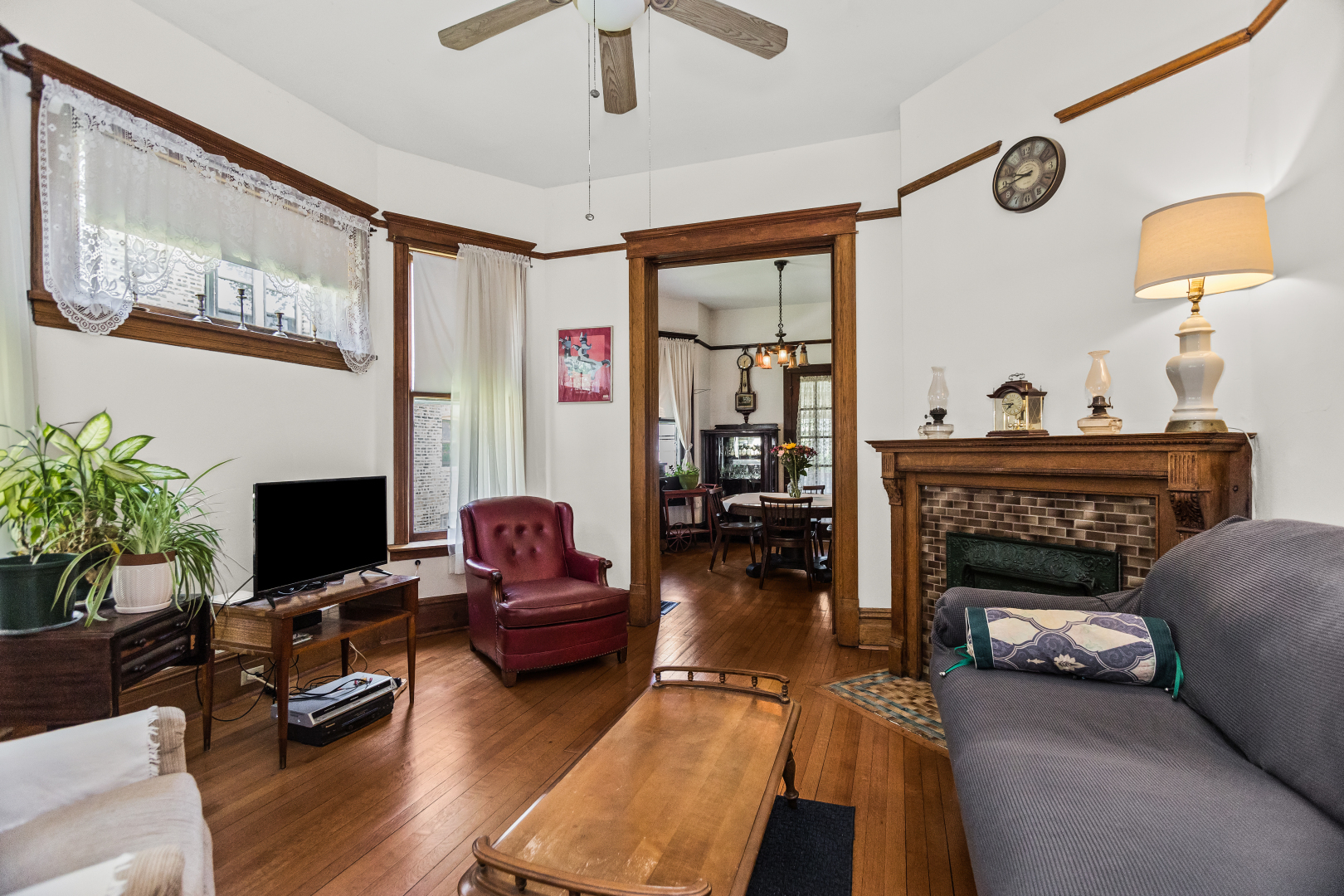 First time on the market in over 100 years! Welcome to this well cared for farmhouse built in 1897 Nestled in sought-after Main St./Chicago Ave neighborhood, this home offers a rare blend of historic charm and future potential. Step inside to discover a gracious main level featuring a double parlor with original woodwork, a decorative fireplace, and pocket doors. The dining room opens to an enclosed back porch through French doors-perfect for relaxing with a morning coffee. The efficient kitchen with pantry and a convenient 1/4 bath complete the first floor. Upstairs, you’ll find four good-sized bedrooms and a full hall bath. The unfinished third level features a vaulted ceiling. Set on a large lot with space for outdoor entertaining, future expansion, or a new garage. This is a rare opportunity to restore and personalize this home in one of Evanston’s most popular neighborhoods. Close to both the Metra and CTA, the Lake and some of Evanston’s most popular restaurants and shops. Roof 2013, Electric panel and wiring 2013, exterior painted 2022