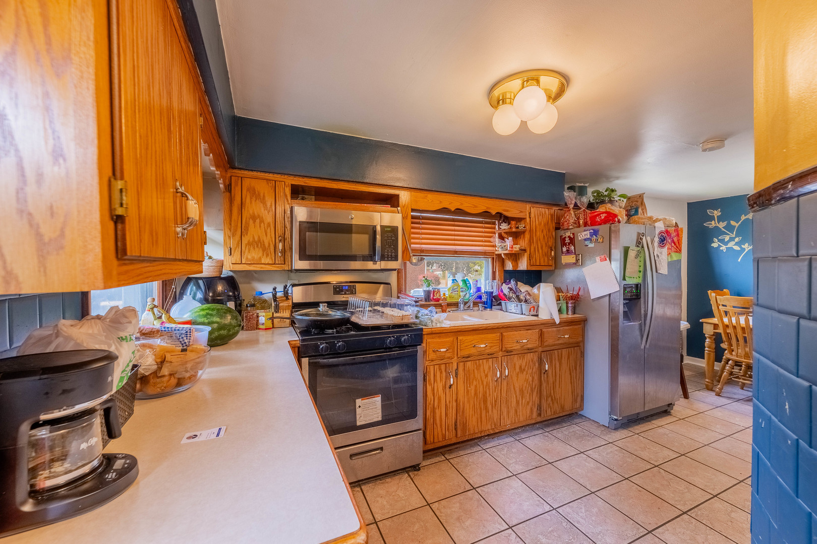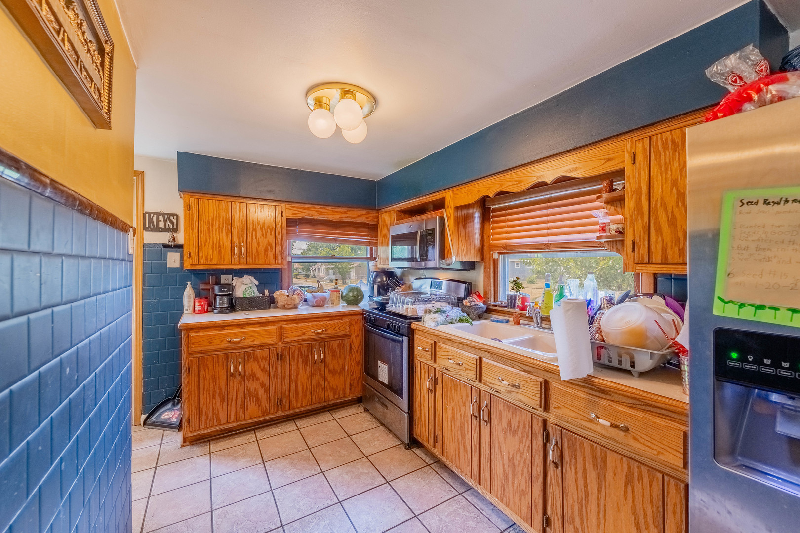 Welcome to this exceptional brick ranch located in Joliet. This charming property boasts an impressive array of features, making it a remarkable find for any homebuyer. With a total of 5 bedrooms and 2 updated bathrooms, this spacious residence offers ample room for comfortable living. As you step inside, you’ll be greeted by a galley kitchen that showcases abundant cabinet and counter space, providing a perfect setting for culinary enthusiasts. The kitchen seamlessly transitions into an inviting eating area, creating a cozy space for family meals and gatherings. The main level of the house reveals a sprawling living room, offering a generous expanse for relaxation and entertainment. Additionally, the finished basement presents a delightful surprise-a well-appointed bar where you can entertain guests and create lasting memories. Adjacent to the bar, you’ll find a fourth bedroom, which, when combined with the basement, creates a private suite ideal for accommodating a friend or family member. Outside, the entire yard is securely fenced, ensuring privacy and providing a safe haven for children or pets to roam freely. The property also features an oversized 2.5-car detached garage with an attached carport, offering an abundance of space for parking vehicles and storing belongings. This remarkable brick ranch in Joliet presents a unique opportunity to own a truly exceptional property. With its spacious layout, updated features, and versatile living spaces, it promises a comfortable and enjoyable lifestyle. Don’t miss out on this incredible buying opportunity-it’s undoubtedly the deal of the year.