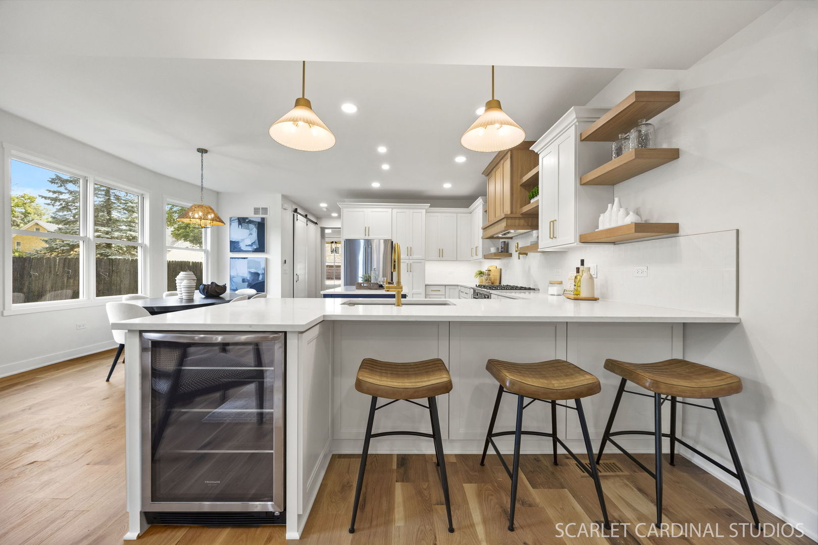 Looking for luxury living just steps from the Metra Train and Downtown Naperville? Welcome to 717 N Brainard Street, a truly exceptional custom-built duplex offering over 4,000 square feet of finely curated living space spanning four impressive levels – all within walking distance from the 5th Avenue Metra station! Offering every attention to detail, including 4 bedrooms; 5 full bathrooms; Marvin windows; Pinnacle stairs; custom cabinetry by Homeowners Dream Custom Cabinets; maintenance-free James HardieTM siding; a spacious 2-car detached garage; and an incredible layout designed for both comfort and style, this home is the definition of luxury living in one of Naperville’s most sought-after locations. Step through a covered entry and enjoy an expertly curated space boasting white oak flooring, hand-picked designer lighting, and elevated finishes throughout. The main level features a welcoming foyer with a coat closet, a full bathroom, and a flexible office space ideal for use as a workspace or additional bedroom. The open-concept main living space seamlessly connects the chef’s kitchen, dining area, and spacious family room. Designed for both function and flair, the kitchen boasts soft-close custom cabinetry by Homeowners Dream; roll-out drawers; a walk-in pantry; a center island and peninsula with additional seating; pot filler; beverage refrigerator; and even a dedicated garbage disposal button – every element selected with luxury in mind. A cozy 3-season room and mudroom with built-in cubbies offer additional space designed for everyday living. An elegant white oak staircase, crafted by Naperville’s own Pinnacle Stairs, leads to a second level featuring an exquisite primary suite with a spa-inspired bathroom offering a dual sink vanity, large walk-in shower, private toilet closet, and an oversized walk-in closet. Two additional bedrooms with ample closet space, a shared hall bath, and a conveniently located laundry room complete the second level. Upstairs, the third-floor retreat serves as a versatile bonus room with its own full bath and ample closet space – perfect for a home theater, fitness studio, or guest suite! The finished basement offers 9-foot ceilings, a spacious rec area, a bar with beverage fridge, an additional full bathroom, a 4th bedroom, and generous storage – all with sound-reducing drop ceilings for added comfort. For accessibility, an elevator can be added for an additional charge. This is more than just a home – it’s a lifestyle upgrade in the heart of Downtown Naperville. Don’t miss your opportunity to own a thoughtfully designed residence that perfectly blends timeless craftsmanship with today’s most sought after amenities!