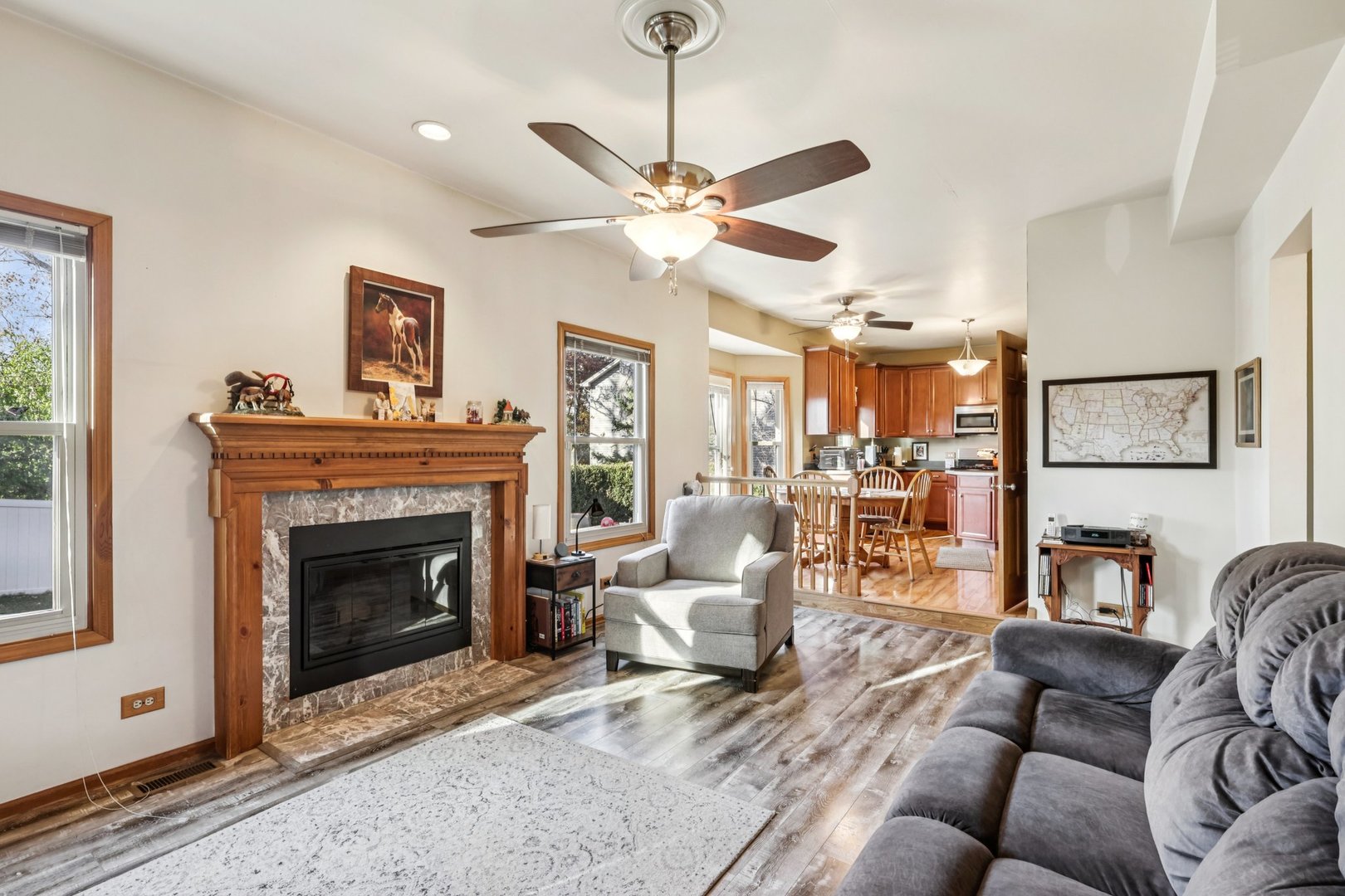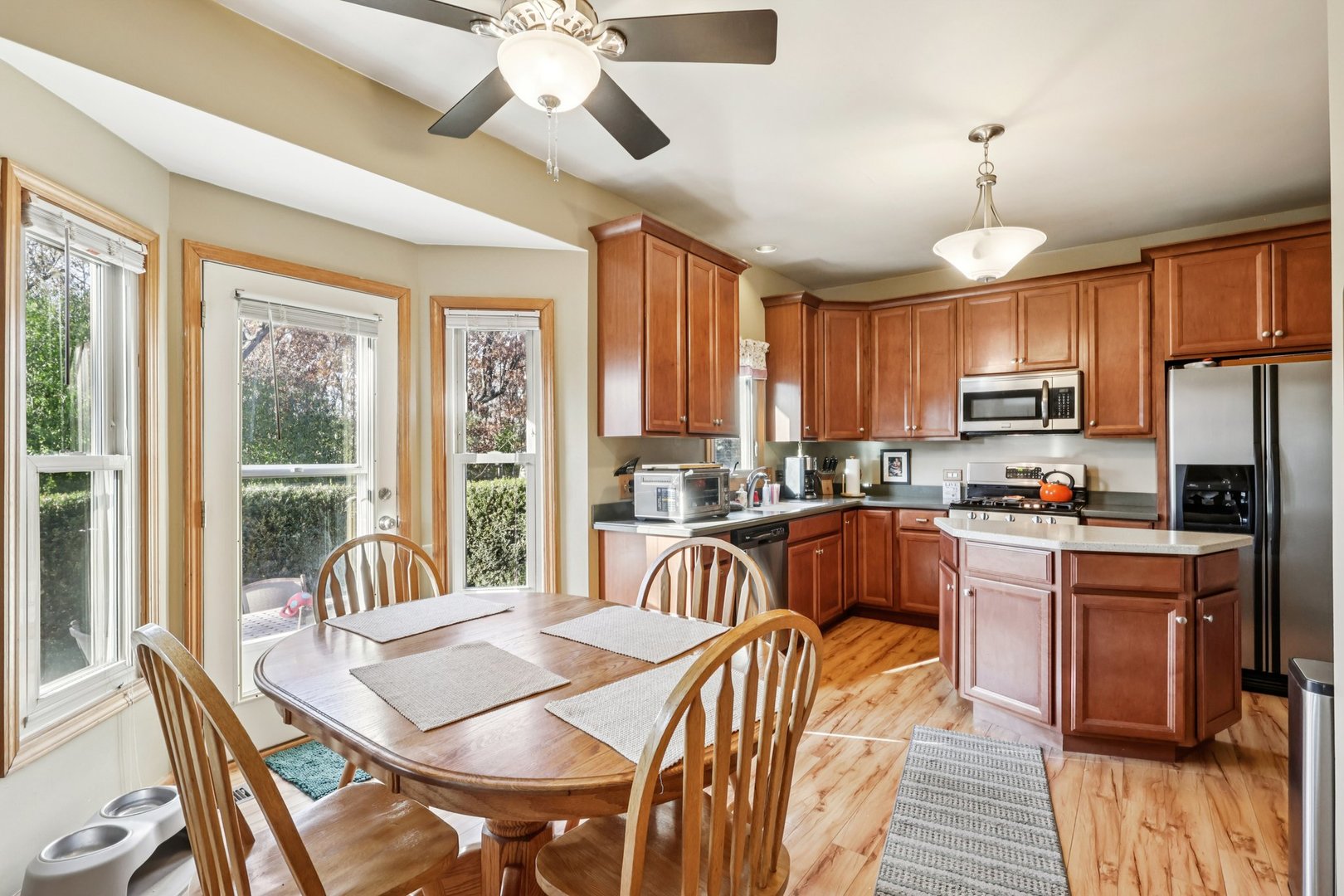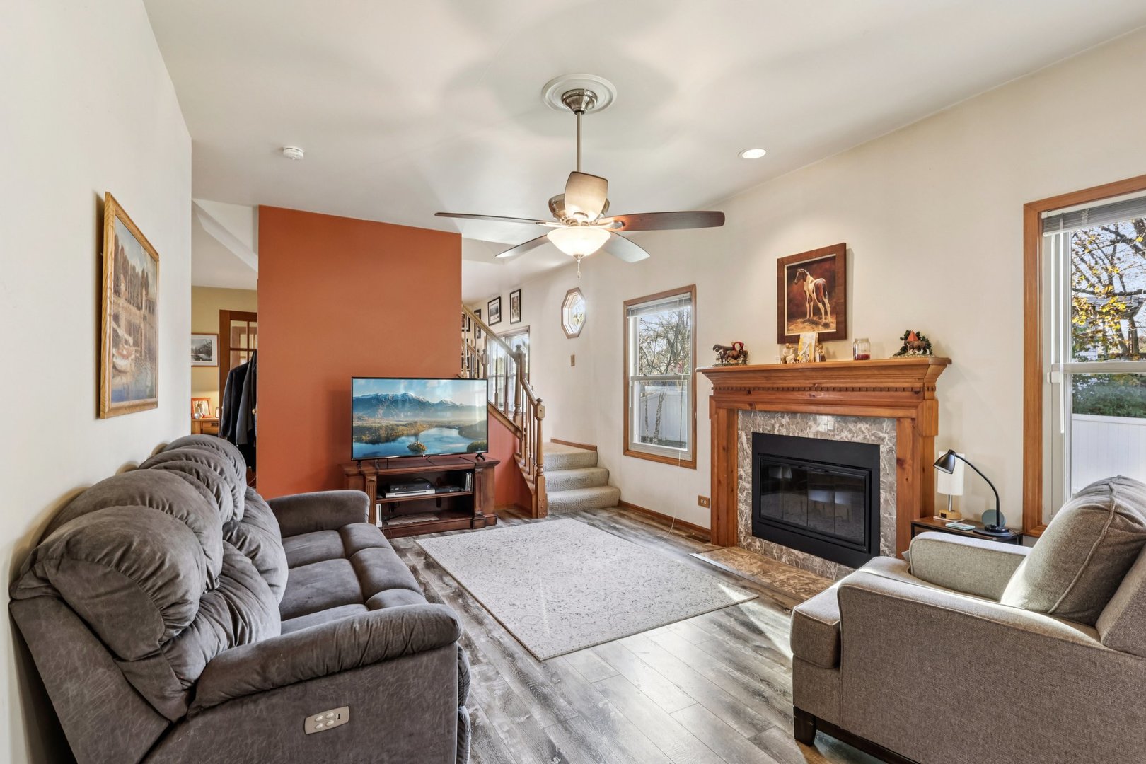 Welcome to this warm and comfortable 4-bedroom, 3.5-bath home set on a desirable corner lot in a desirable Woods of Feather Sound. Inside, the main level offers an inviting layout with a family room featuring new vinyl flooring (2022) that flows seamlessly into the eat-in kitchen. The kitchen includes an island, Corian counters, refreshed cabinetry, newer stainless steel appliances, and vinyl flooring. A formal dining room and office with hardwood floors, formal living room and convenient half bath complete the first floor. Upstairs, the primary suite offers two closets and a spa-like en suite with a dual vanity, walk-in shower, and soaking tub. Three additional bedrooms share a well-appointed hall bath. The finished basement extends your living space with a large recreation room, a bonus room, and a full bath with a walk-in shower. An attached 2.5-car garage with long side driveway provide plenty of parking. The spacious fenced backyard features upgraded landscaping with newly added red maple, birch, and peach trees, plus a vinyl privacy fence (2022) and patio-an ideal setting for gatherings or play. Outdoor enthusiasts will love the easy access to federally protected wetlands and scenic trails just minutes away. Major improvements include a new roof (2022), new gutters, guards, and downspouts (2022), new furnace & AC (2023), new hot water heater (2023), new humidifier (2023), and an ultra-violet germicidal light added in 2025. Additional enhancements include a large front window over the front door (2017), comprehensive attic insulation (2017), and vinyl-wrapped windows and exterior trim that eliminate the need for painting. Lighting and ceiling fans in the kitchen, family room, and dining room have also been updated. With thoughtful upgrades and a prime Bolingbrook location near shopping, dining, 355 and Pace buses this home offers comfort, style, and long-term peace of mind-truly a wonderful place for anyone to call home.
