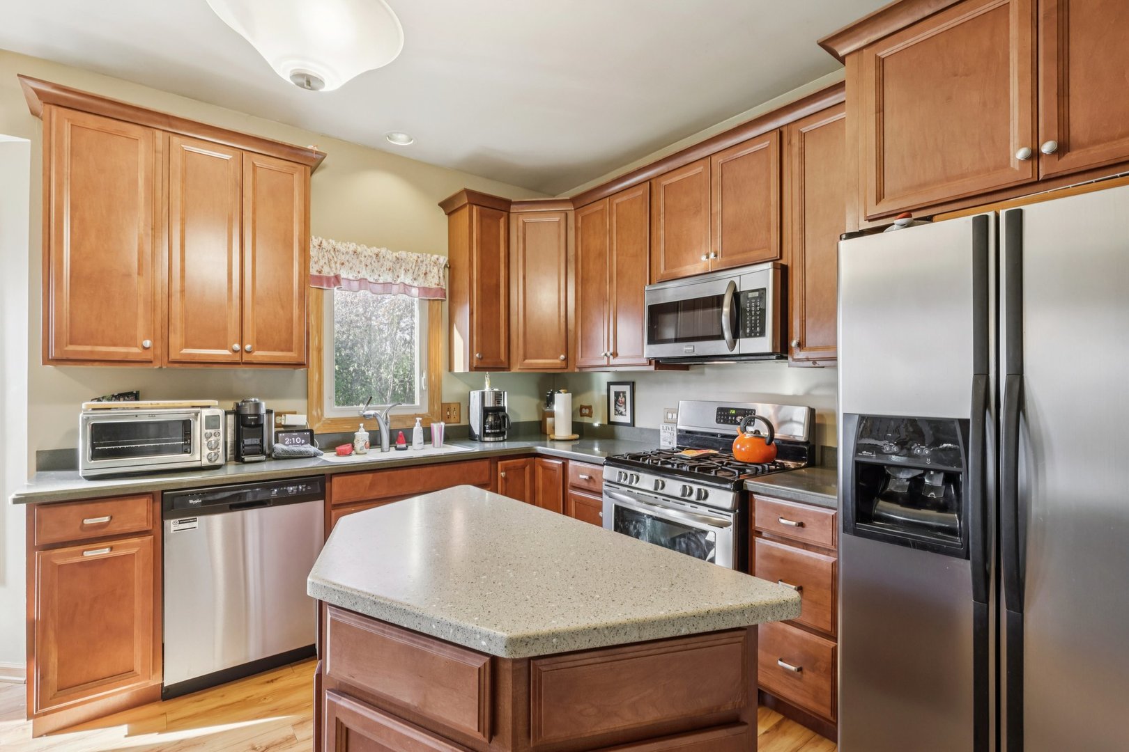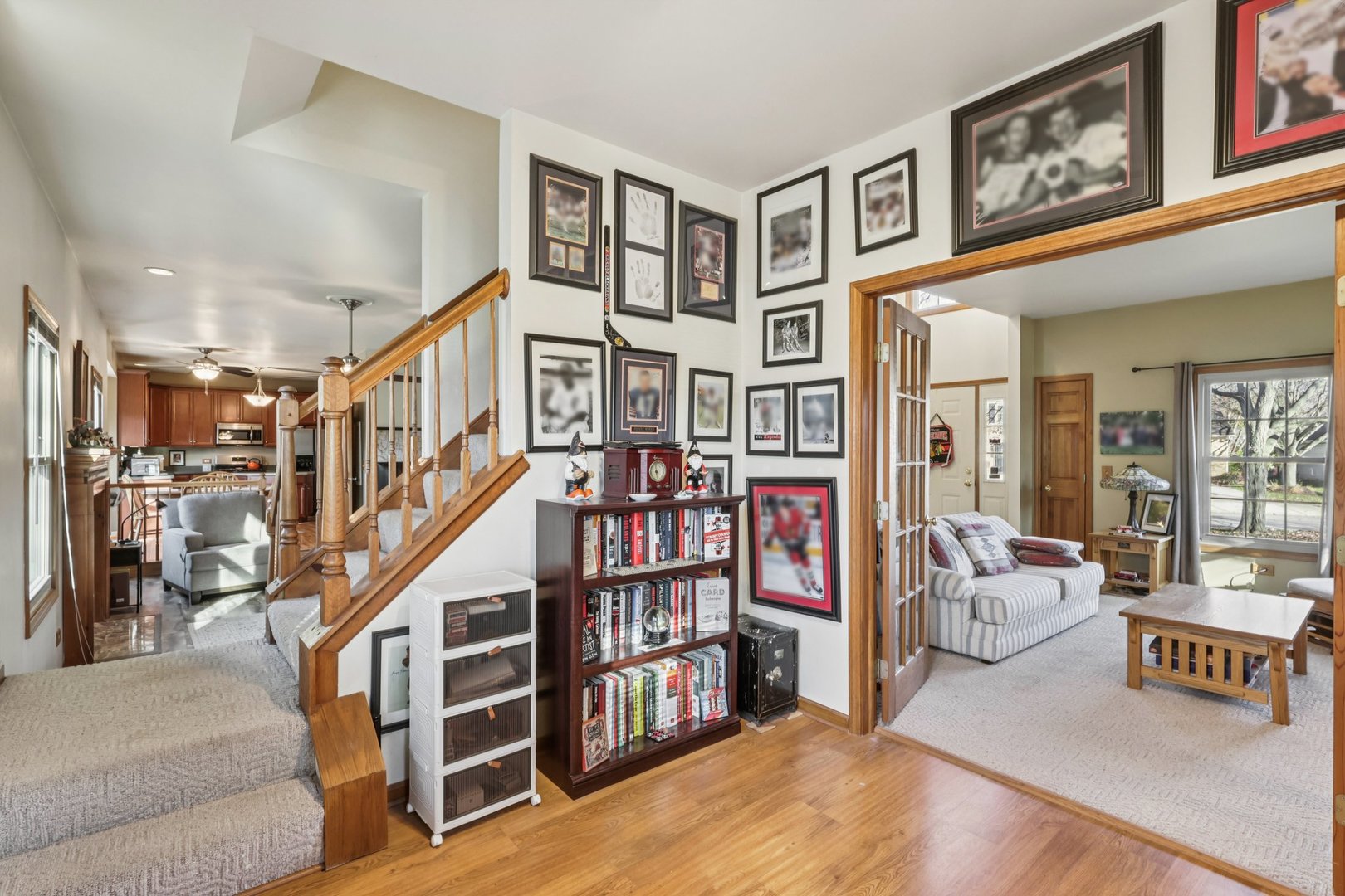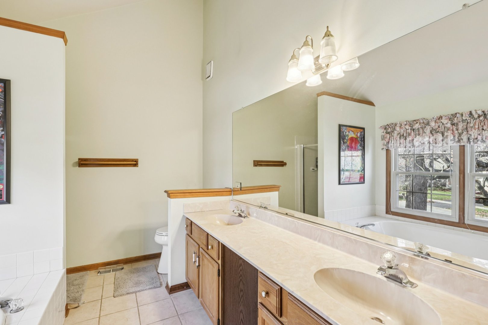 Welcome to this warm and comfortable 4-bedroom, 3.5-bath home set on a desirable corner lot in a desirable Woods of Feather Sound. Inside, the main level offers an inviting layout with a family room featuring new vinyl flooring (2022) that flows seamlessly into the eat-in kitchen. The kitchen includes an island, Corian counters, refreshed cabinetry, newer stainless steel appliances, and vinyl flooring. A formal dining room and office with hardwood floors, formal living room and convenient half bath complete the first floor. Upstairs, the primary suite offers two closets and a spa-like en suite with a dual vanity, walk-in shower, and soaking tub. Three additional bedrooms share a well-appointed hall bath. The finished basement extends your living space with a large recreation room, a bonus room, and a full bath with a walk-in shower. An attached 2.5-car garage with long side driveway provide plenty of parking. The spacious fenced backyard features upgraded landscaping with newly added red maple, birch, and peach trees, plus a vinyl privacy fence (2022) and patio-an ideal setting for gatherings or play. Outdoor enthusiasts will love the easy access to federally protected wetlands and scenic trails just minutes away. Major improvements include a new roof (2022), new gutters, guards, and downspouts (2022), new furnace & AC (2023), new hot water heater (2023), new humidifier (2023), and an ultra-violet germicidal light added in 2025. Additional enhancements include a large front window over the front door (2017), comprehensive attic insulation (2017), and vinyl-wrapped windows and exterior trim that eliminate the need for painting. Lighting and ceiling fans in the kitchen, family room, and dining room have also been updated. With thoughtful upgrades and a prime Bolingbrook location near shopping, dining, 355 and Pace buses this home offers comfort, style, and long-term peace of mind-truly a wonderful place for anyone to call home.