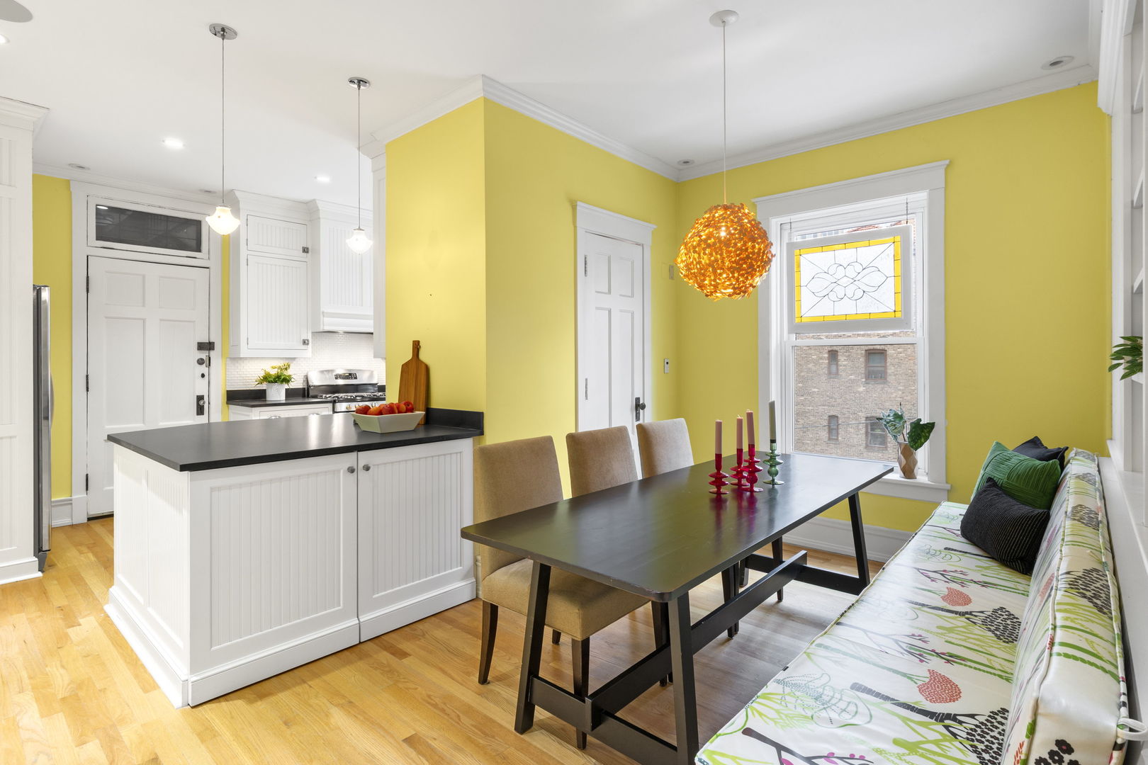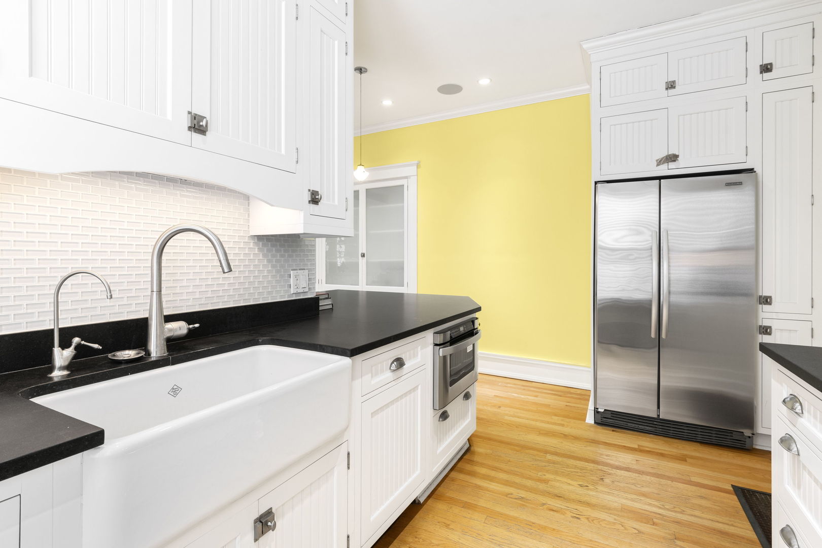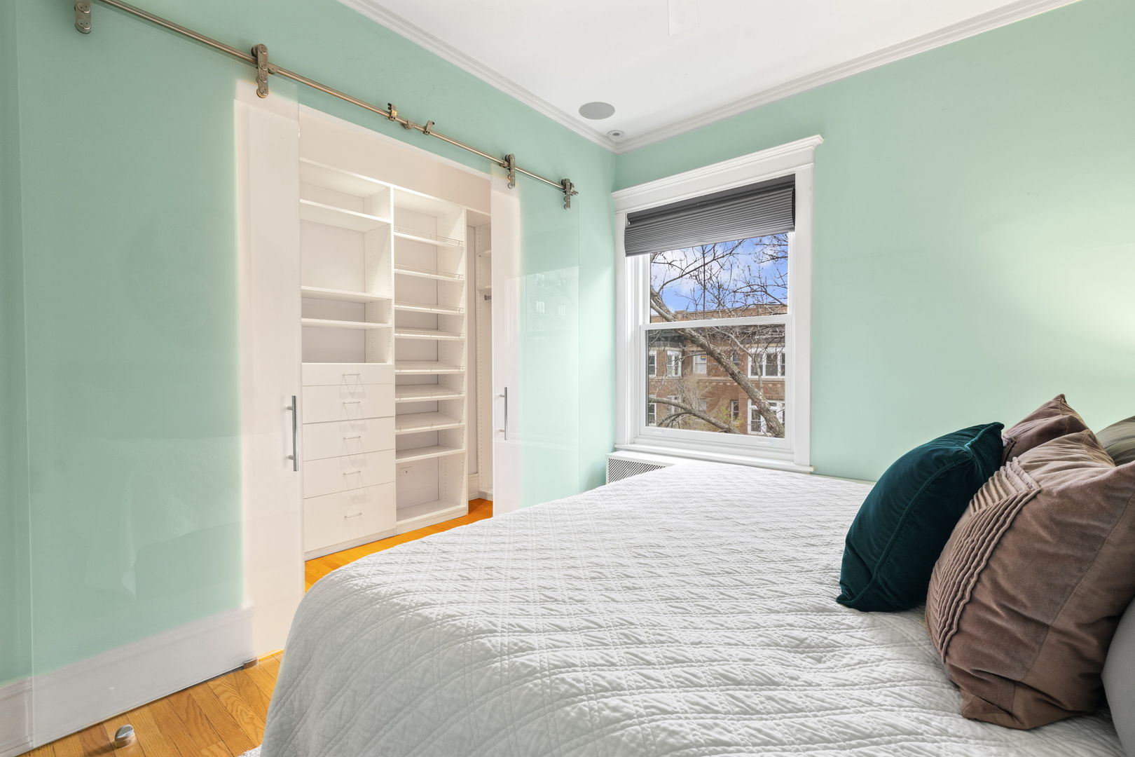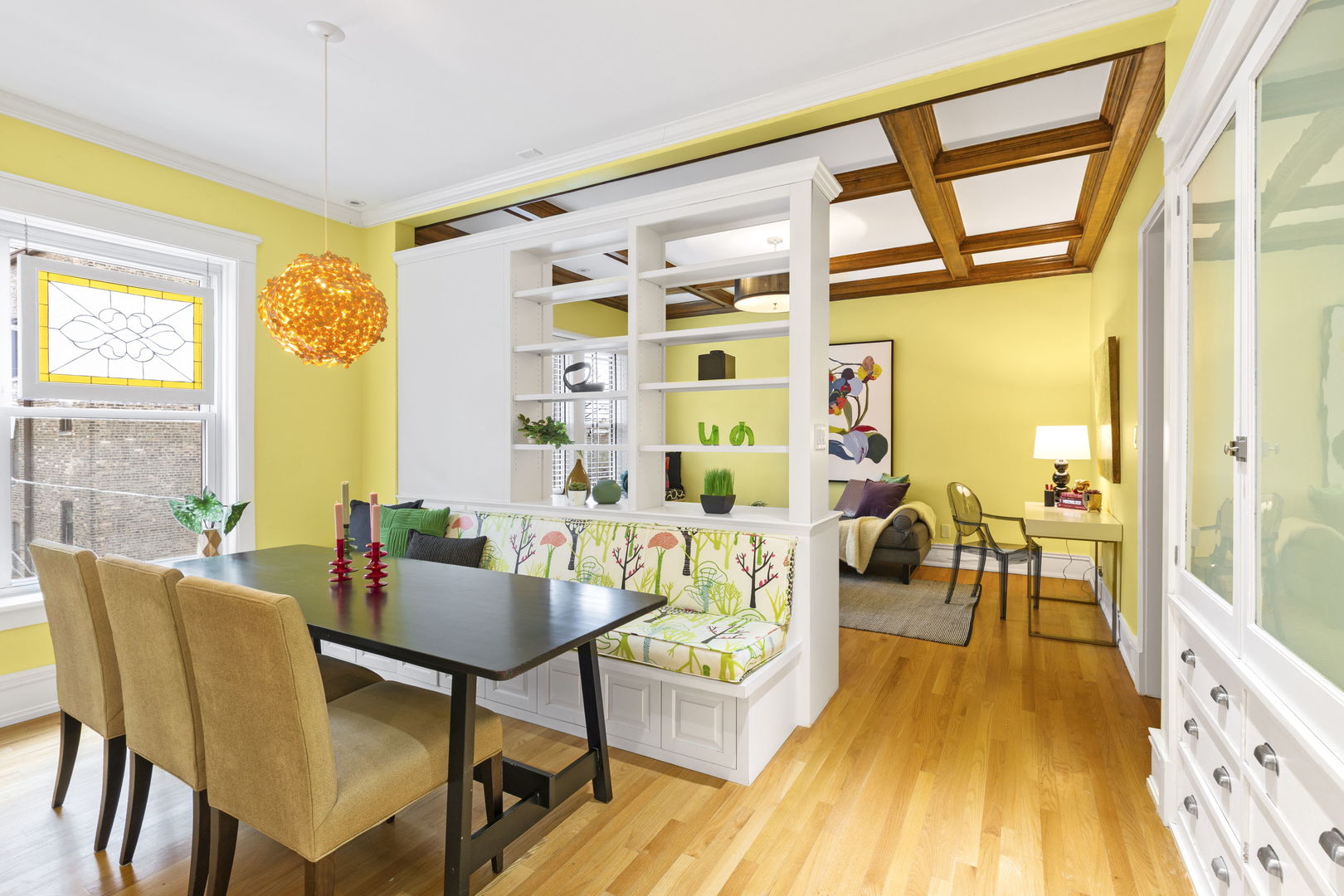 Top floor gorgeous vintage condo that has been thoughtfully renovated with SpacePak a/c, in-unit laundry, so much storage and so many closets you won’t believe it. Hardwood flooring throughout. Originally a 2-bedroom, the floor plan has been revamped to create more open and functional spaces. The room sizes are generous, including a den that also doubles as a guest room. 1 1/2 baths — both have been totally renovated with Ann Sacks tile and high-end fixtures. The full bath has an inviting deep-soaking tub and radiant underfloor heating. The dining room features a built-in bench, complete with a cheerful custom seat cushion and more storage underneath. The kitchen has ample cabinetry, tons of lighting, a functional exhaust hood, Miele dishwasher, drawer microwave and separate filtered water faucet; perfect for cooking and entertaining. Tucked under the large granite countertop is a full-size Miele washer/dryer. The attention to detail in this home is noticeable in all of the built-in cabinetry — in the dining room, the den and the bathroom. It’s noticed in the window treatments throughout, and there’s even a custom window seat in the den for reading. No opportunity was overlooked — the primary bedroom closet will satisfy even the biggest clothes horse. And one closet is totally devoted to routers and stereo equipment, including controls for speakers in every room. Conveniently located, just one block in from the lakefront path. Runners, bikers, golfers, walkers, tennis players — a perfect location for you all. A three-minute walk gets you to the corner to catch the express buses downtown or walk ten minutes to the Sheridan Red Line CTA station. Heat, cable/internet and cooking gas are included in the monthly assessment. Electric is the only utility you need to supply. Onsite garage parking is available for $222/mo. This building is part of the historic Pattington complex, elegant and impeccably maintained. A large yard, grilling area and playground are on the premises. An additional generous storage locker, located in the basement, is included.