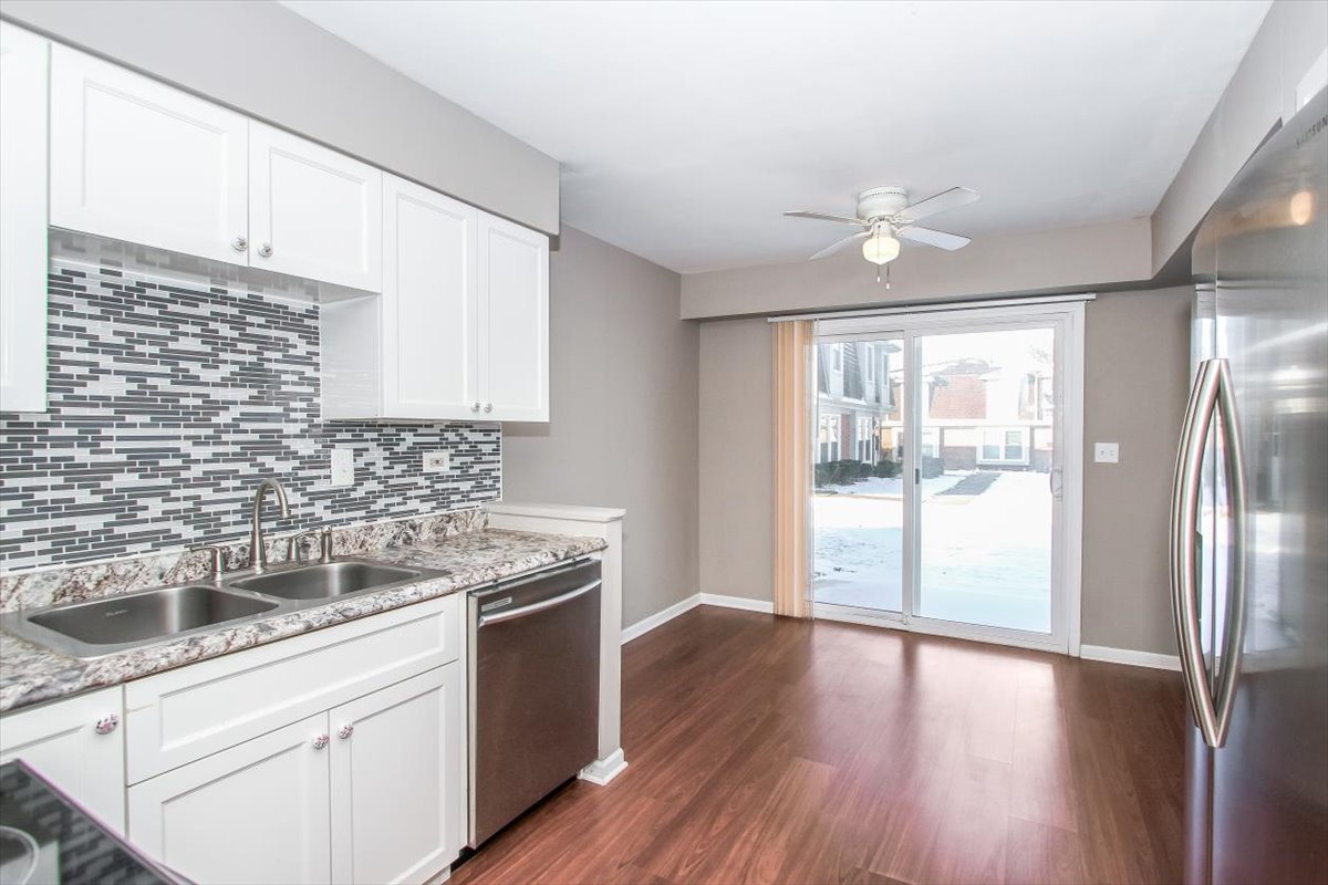 Updated townhome in a wonderful Schaumburg location! This lovely home features 2 bedrooms, 1.5 baths, and is move-in ready. The second-floor bonus room offers great versatility-perfect as a possible 3rd bedroom, home office, craft room, or over the top laundry room. The kitchen showcases modern White Shaker-style cabinets, stainless steel appliances, and a stylish glass tile backsplash. The adjoining dining area opens through sliding doors to a backyard patio-ideal for grilling, relaxing or entertaining. First floor is complete with Luxury Vinyl flooring. Enjoy the spacious finished basement featuring a family room and a private office with French doors. Bath is updated with ceramic tile. The bedrooms feature wood laminate flooring. The primary bedroom includes a walk-in closet and a private balcony overlooking the backyard. Additional highlights include updated Climate Guard vinyl windows throughout, furnace and water heater (approx. 2018), and two assigned parking spaces (#103). The first two parking spots next to the sidewalk adds an additional benefit. This unit faces Bode Road, offering extra privacy compared to other units in the complex. Fantastic location-just minutes to I-90, major shopping, restaurants, and entertainment. Schaumburg truly offers it all! A certificate of error has been filed for the homeowner’s exemption on taxes. Make this your new home today!