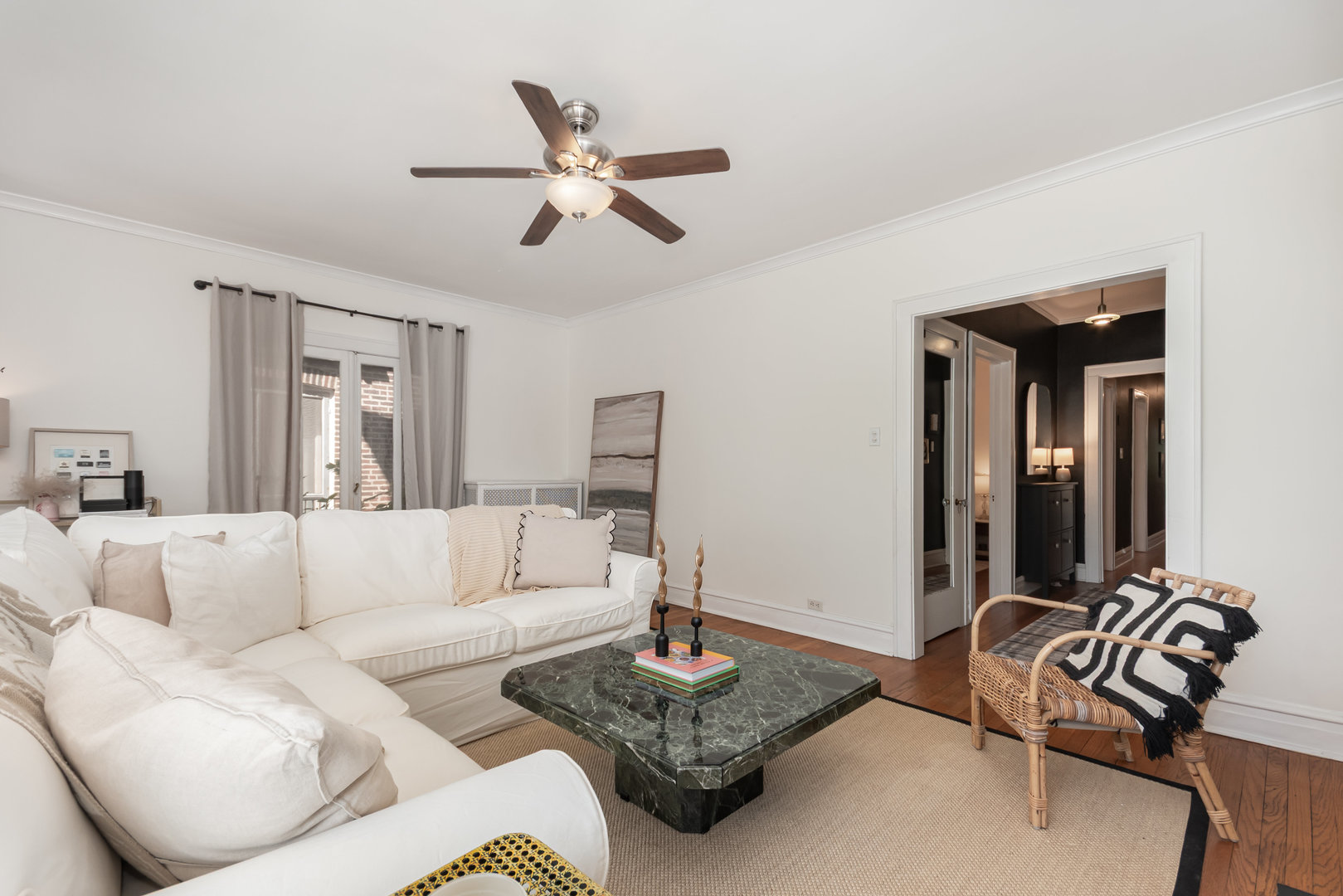 Don’t want to choose between charm, natural light, and updated finishes? This charming 2-bedroom, 1-bath combines historic character with thoughtful updates in an unbeatable location, just steps from Northwestern and downtown Evanston. Natural light fills the home through windows facing every direction. The front of the home offers a south-facing living room with a fireplace surrounded by beautiful custom built-in bookcases. A Juliet balcony and adjoining sunroom provide the ideal spot for a home office or reading nook. This home has multiple living spaces for family living and entertaining and also a great separation of spaces when privacy or noise separation is preferred. The updated open kitchen features timeless cabinetry, chic subway tile, a massive sink, and granite counters, flowing into a flexible space for a big dining space or the current extra den. Another sunny rear sunroom currently used as an office can easily convert into another guest space overlooking the shared backyard. Record amount of storage between huge bedroom closets, linen closets, two big coat closets, an extra storage room in the basement charming AND built in shelving in the living spaces, hallways, and bathroom. Enjoy proximity to Northwestern, the CTA Purple Line, Clark Street Beach, Lake Michigan, and all of downtown Evanston’s dining and shopping. Monthly assessment includes property taxes!
