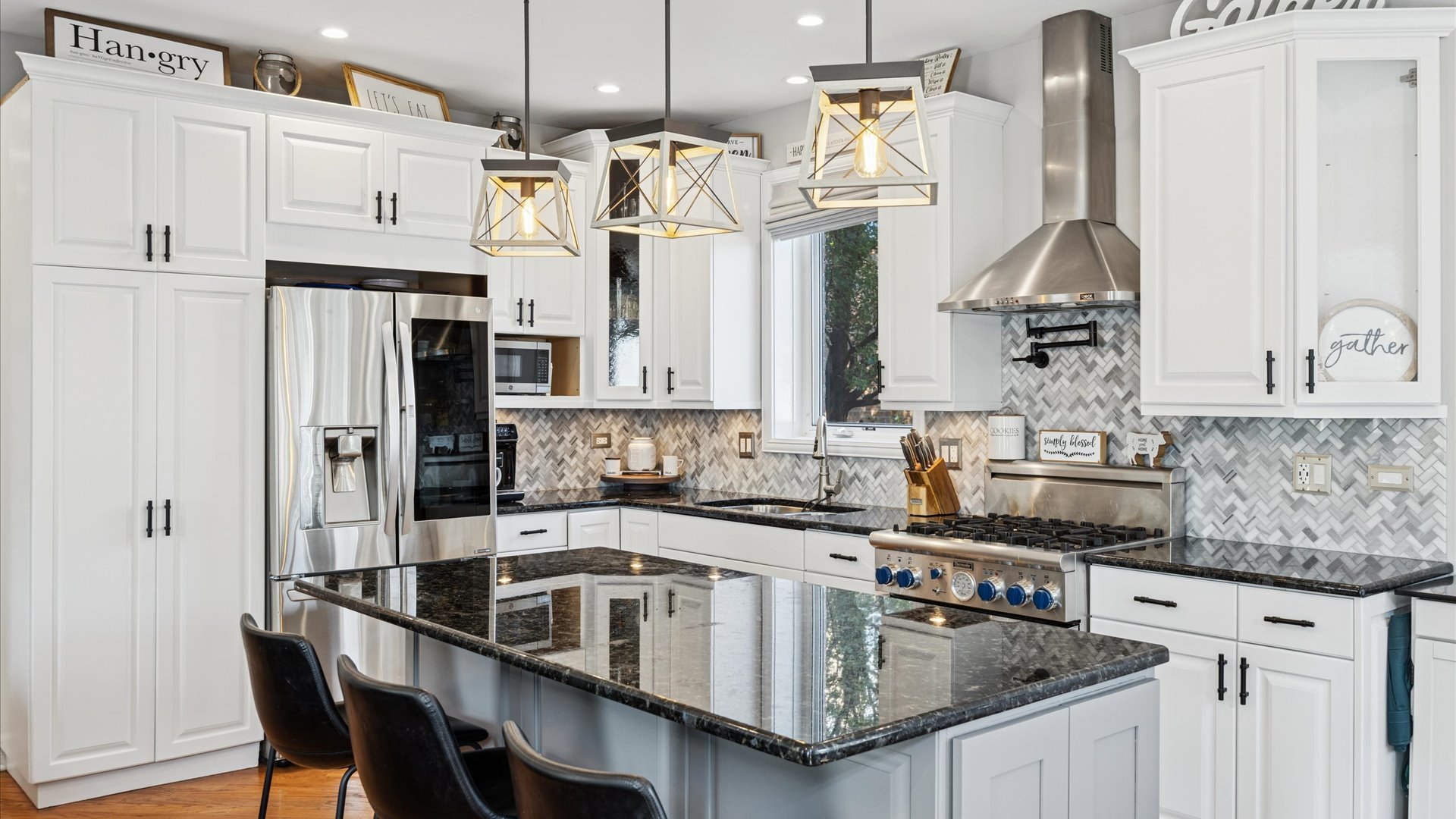 Gorgeous Brick & Stone Home in Prime Edison Park Location! This beautiful home offers a fantastic floor plan with four spacious bedrooms and two full baths on the second level. Enjoy hardwood floors throughout, an eat-in granite and stainless kitchen with a breakfast nook and stone island – perfect for both casual meals and entertaining. The family room with fireplace flows seamlessly from the kitchen, creating an ideal gathering space. The primary suite features a large walk-in closet and a spa-like bath with separate shower and jacuzzi tub. Three additional bedrooms and a full bath complete the second floor. The finished basement includes a wet bar, half bath, and laundry room – great for extra living or recreation space. Sitting on a wide 40-foot lot, the home also offers a newer 2.5-car garage and a lovely yard. Walk to top-rated schools, parks, shopping, and transportation. This home truly checks all the boxes – show with confidence!
