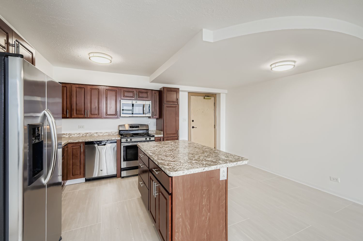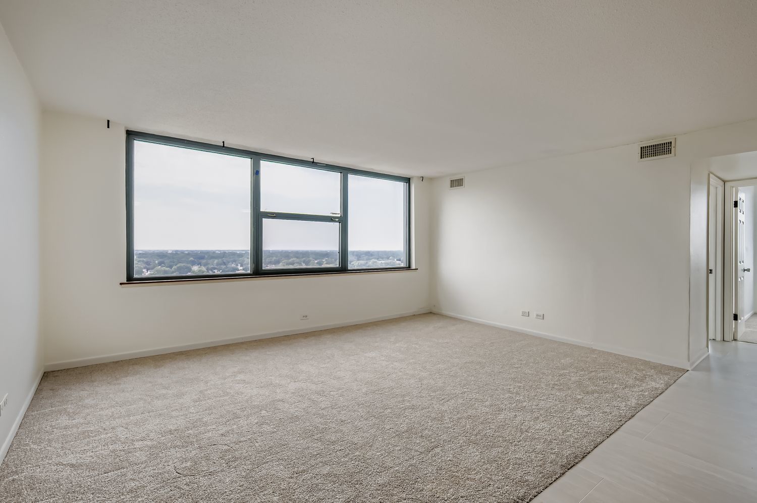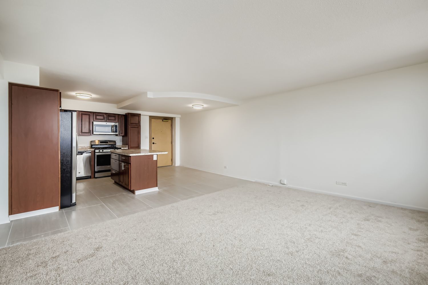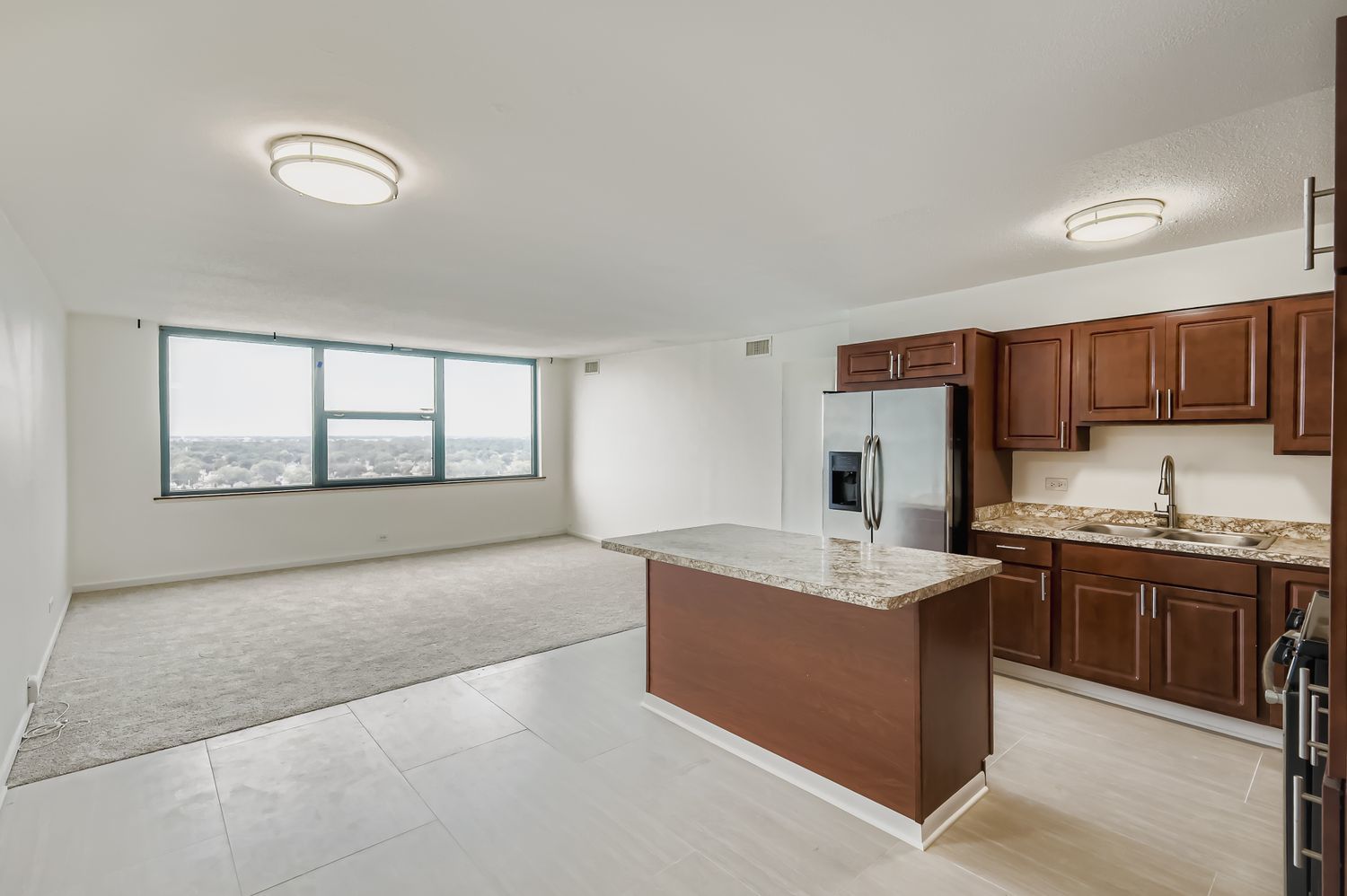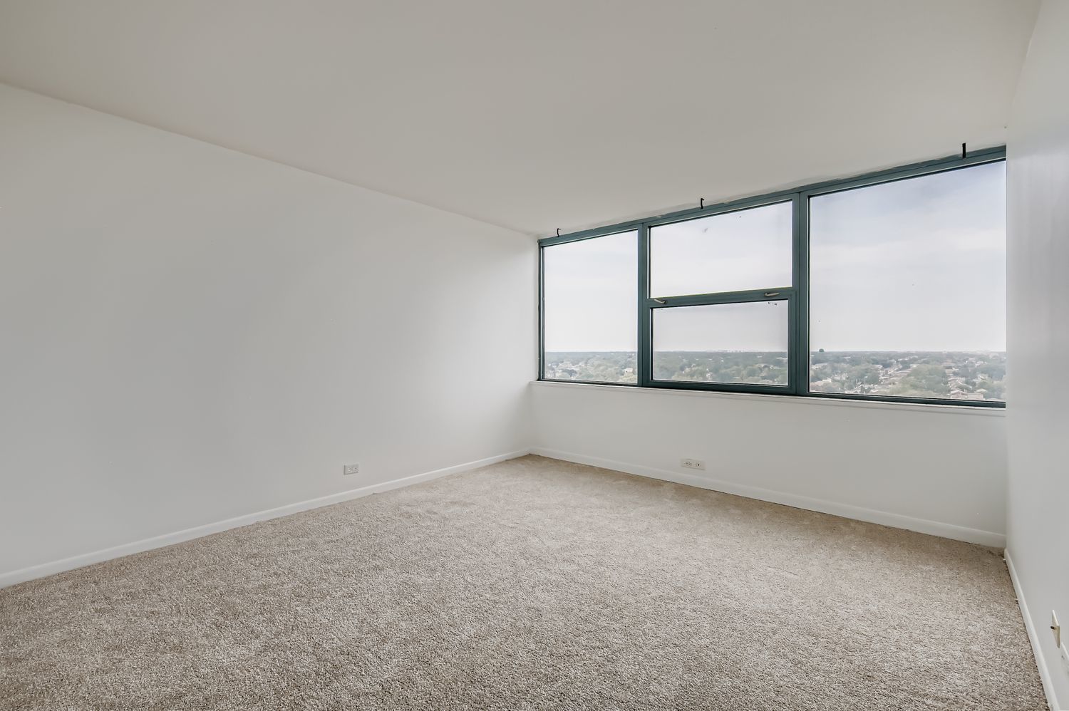Rarely available top-floor unit in the sought-after Cameo Towers. Spacious 2-bed 1-bath with sweeping skyline and sunset views. The unit features spacious room sizes and large windows, allowing for natural light. Includes two heated garage parking spaces. Building amenities feature an outdoor pool, sundeck, laundry facilities, and secure entry. Prime Elmwood Park location with easy access to shopping, dining, public transportation, and city commute.