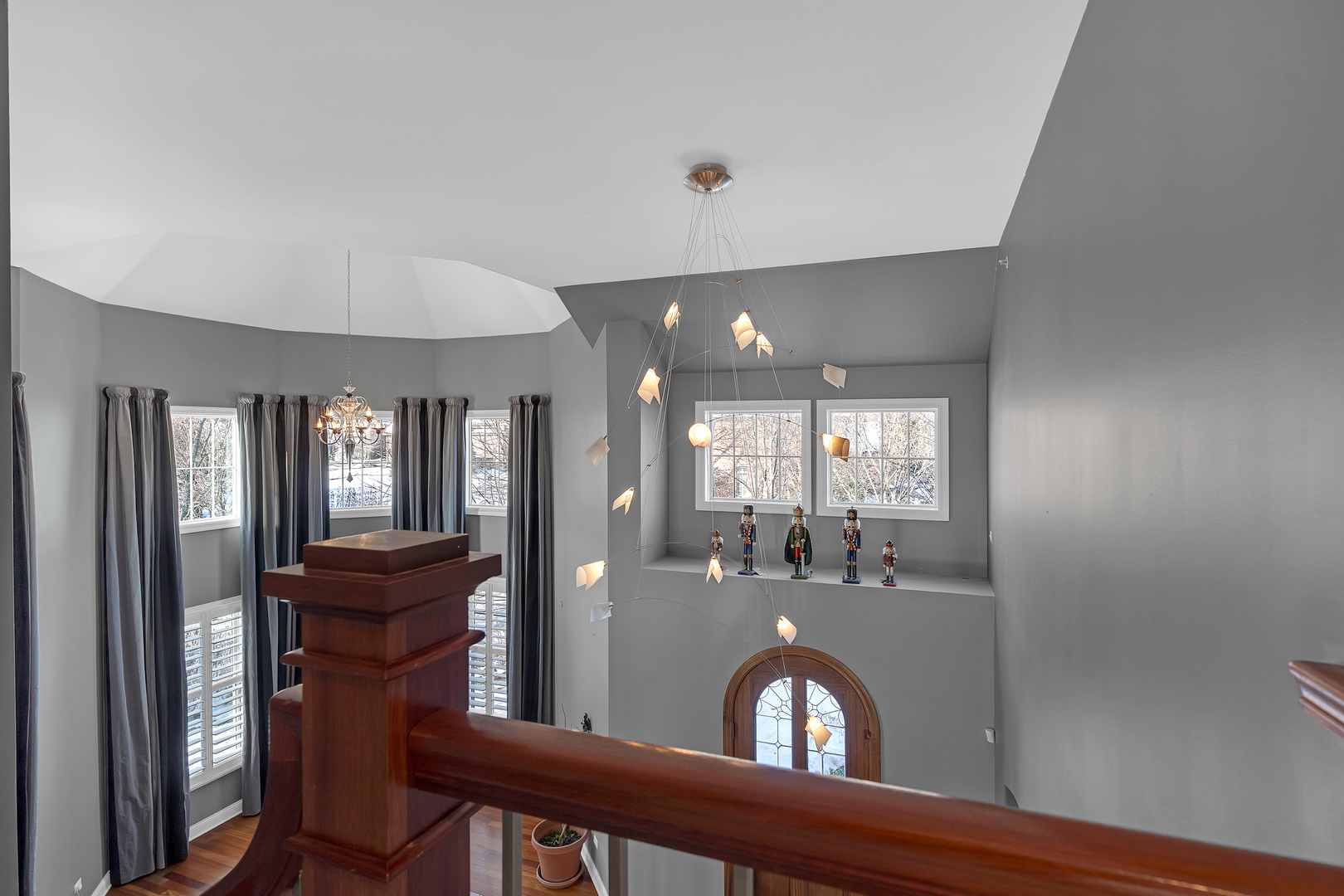Stunning custom-built home in the highly desired Ravenna subdivision of Long Grove featuring breathtaking water views, a private cul-de-sac location, and over 6,200 sq. ft. of luxurious living space. Impeccably maintained and thoughtfully upgraded, this home offers 5 bedrooms, 5.1 baths, dual staircases, Brazilian Cherry floors, solid wood doors, high ceilings, and premium finishes throughout. The open-concept main level includes a dramatic 2-story living room, formal dining room, butler’s station with beverage refrigerator, wine storage room, and a spacious family room with a gas fireplace. The gourmet kitchen boasts granite counters, center island, high-end cabinetry, walk-in pantry, GE Monogram appliances, two Miele dishwashers, and a 6-burner Thermador commercial range. A private main-level office with built-ins overlooks serene backyard and water views. Upstairs, all four bedrooms include private en-suite baths and walk-in closets. The primary suite features a sitting room, large walk-in closet, ROMA steam shower, dual vanities, and a private balcony with peaceful views of the water and landscaped yard. The finished lower level provides exceptional space for entertaining with a high-end soundproof home theatre, wet bar with refrigerator and dishwasher, game area, upgraded A/V components, and a newly finished storage area (2024). The backyard is a true retreat with a two-level patio, pergola, built-in Weber S640 grill, granite prep counters, and a separate brick pizza oven-an entertainer’s dream. Additional features include Bose ceiling speakers throughout, luxury plantation shutters (2024), smart switches, updated lighting, ADT security system, underground sprinklers, fire sprinklers, new Trane high-efficiency heater (2024), and a bonus room addition with storage (2023). Located in a private conservancy neighborhood with 5 miles of trails, parks, and natural beauty. Close to shopping, dining, Route 53, and in the award-winning Stevenson High School District. This pristine home truly has it all.