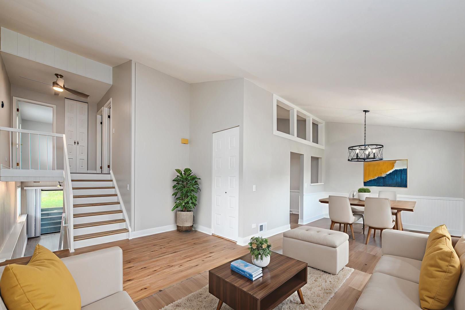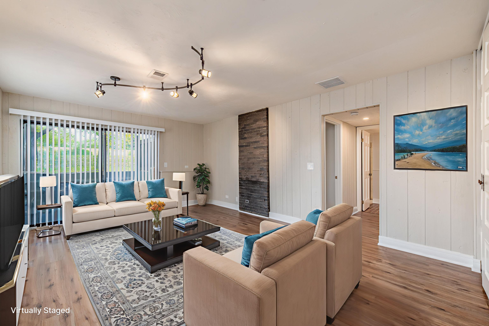 Welcome to this spacious and completely updated three-bedroom, two-bathroom townhome located in the highly sought-after Ventura 21 community! This corner unit offers maximum privacy with only one shared wall. Step inside this beautifully updated home where comfort meets contemporary style. From the moment you enter, you’ll be greeted by soaring ceilings and sun-filled living spaces. The main level showcases a bright and spacious living room with high ceilings and large windows, flowing effortlessly into the dining area and updated kitchen with brand new stainless steel appliances. The kitchen offers maple cabinetry and beautiful quartz countertops. Luxury vinyl flooring throughout the entire home. Upstairs, you’ll find two bedrooms and a fully updated bathroom with modern finishes. The oversized primary bedroom features a walk-in closet with custom shelving, direct access to the bathroom, and a private balcony. The updated bathroom includes custom tile work and a gorgeous oak wood vanity. The lower level features a third bedroom and another full bath-ideal for guests, a home office, or related living-as well as a family room perfect for kicking back and relaxing. Sliding patio doors off the family room open to a private patio and your own backyard, with a park just steps away, great for playing or entertaining! Plus, a large laundry and utility room offers plenty of extra storage. Additional updates include new light fixtures and ceiling fans. Enjoy all the amenities Ventura 21 has to offer, just a short five-minute walk away, including indoor and outdoor pools, a fitness center, game room, party room, and a nine-hole par-three golf course; all covered by low monthly assessments. Two assigned exterior parking spaces are conveniently located right outside your front door. Furnace and AC (2019) Roof (2015) All kitchen appliances (2025) Luxury Vinyl flooring (2025) freshly painted (2025) All trim work (2025) Washer & Dryer (2025)