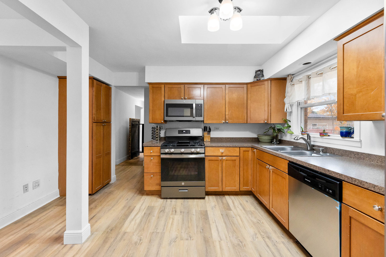 Welcome to your new home in the award-winning District 230 schools! This beautifully remodeled 4-bedroom, 2-bath home offers modern comfort, timeless charm, and a prime location in one of Palos Heights’ most sought-after neighborhoods. Step inside to a bright and open layout featuring refinished hardwood floors, fresh paint, and a spacious living room plus family room – perfect for entertaining or cozy nights in. The updated kitchen boasts maple cabinetry, newer stainless steel appliances, and a sun-filled skylight, creating a warm and inviting atmosphere for everyday meals. Both full bathrooms have been tastefully updated for a fresh, modern feel. Outside, enjoy a fully fenced yard with mature trees that provide both beauty and privacy – ideal for gatherings, kids, or pets. A huge 2.5-car garage offers plenty of storage and parking space. Located near parks, forest preserves, dining, and shopping, you’ll have endless opportunities for recreation and relaxation. Explore nearby Lake Katherine Nature Center, local coffee shops, and family-friendly restaurants – all just minutes from your doorstep. With easy access to major highways and Metra, commuting is a breeze.