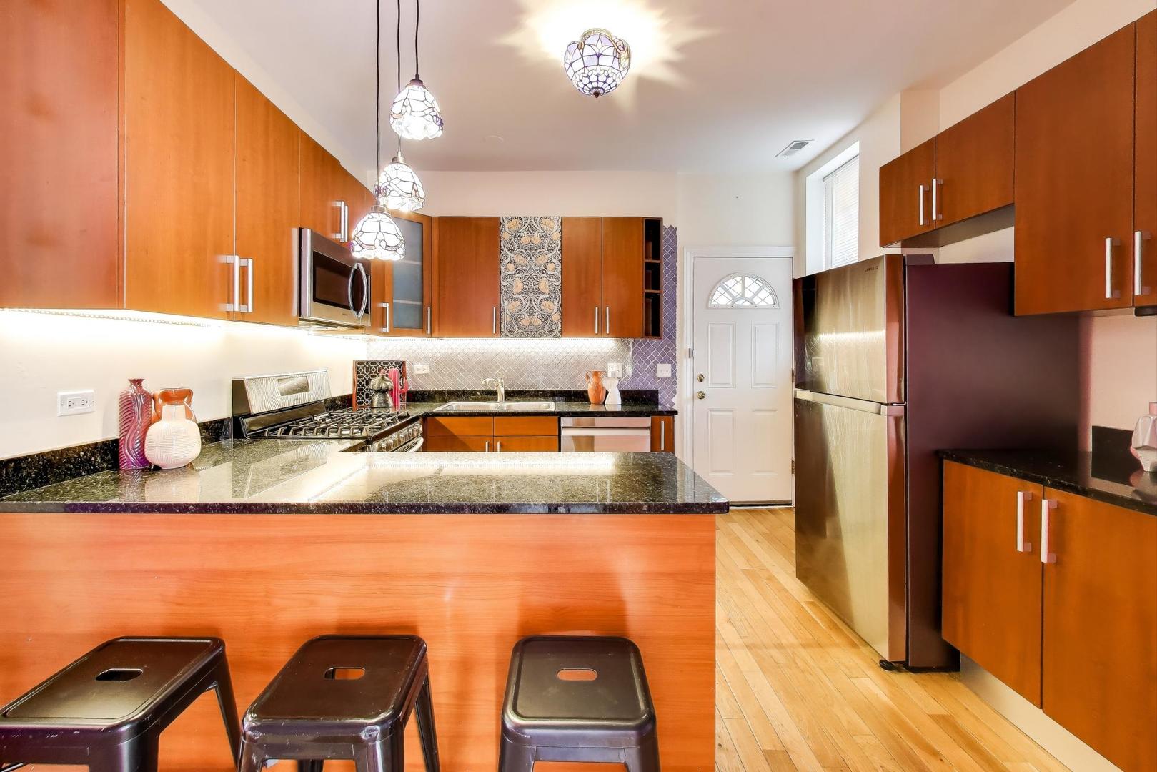 Across from Touhy Park, this beautifully updated 3-bedroom, 1-bath condo offers classic charm and modern comfort in Chicago’s vibrant Rogers Park neighborhood. The bright, open living and dining area features south- and west-facing windows that fill the space with natural light, complemented by gleaming hardwood floors throughout. The stylish kitchen includes granite countertops, stainless steel appliances, and ample cabinetry-perfect for everyday living or entertaining. Three spacious bedrooms and a newly renovated bathroom provide comfort and functionality, while a brand-new in-unit washer and dryer add convenience. Enjoy outdoor relaxation or grilling on the back porch, with extra storage available in the building’s lower level. Easy street parking available, as well as garages nearby. Tons of life amenities nearby – several parks, the restaurants and retail on Clark we well as Broadway, red line el-train, Lake Michigan beaches (Loyola and Howard Beach), Loyola University Chicago, Target, Jewel-Osco, and local markets, several popular restaurants, and of course The Glenwood Avenue Arts District, featuring galleries, theaters, and live music venues. Great unit in a great location!