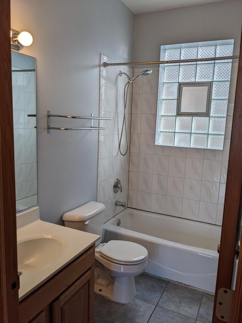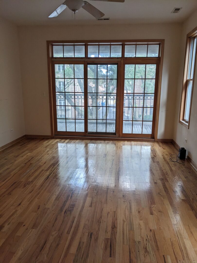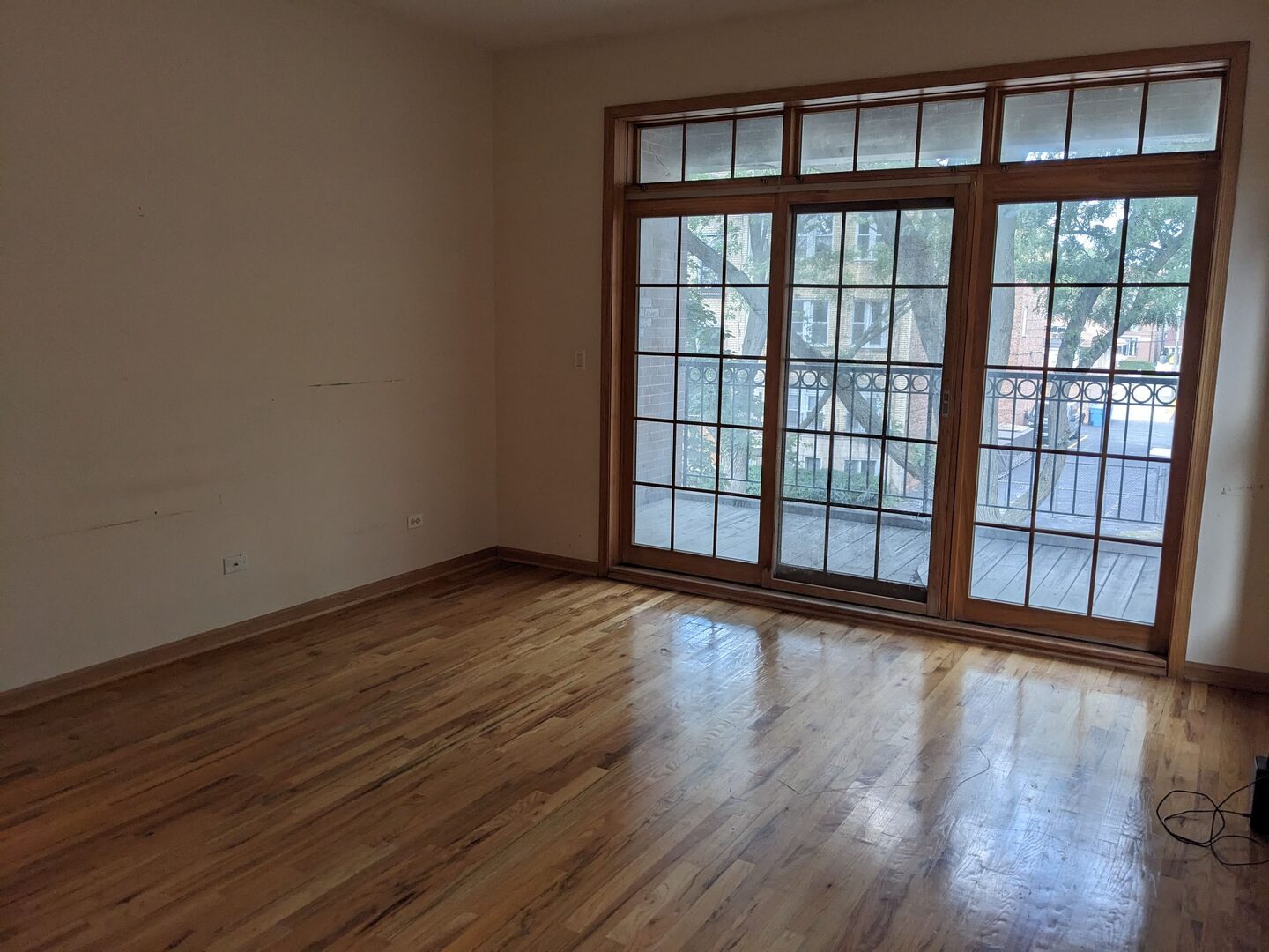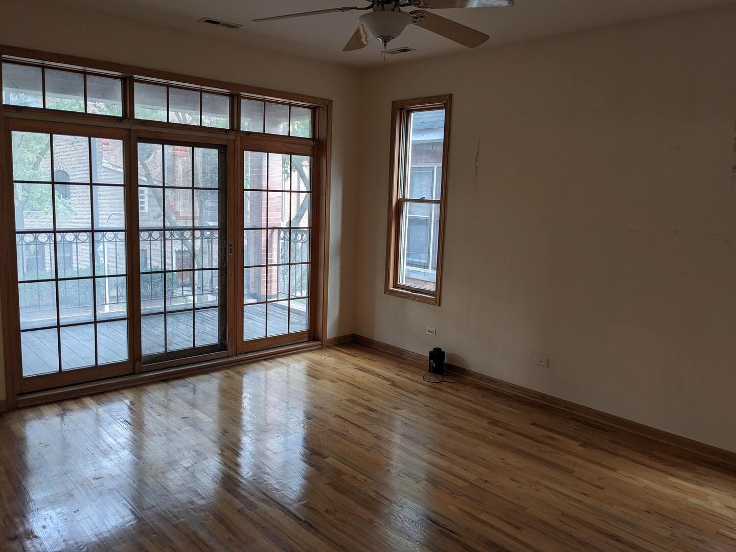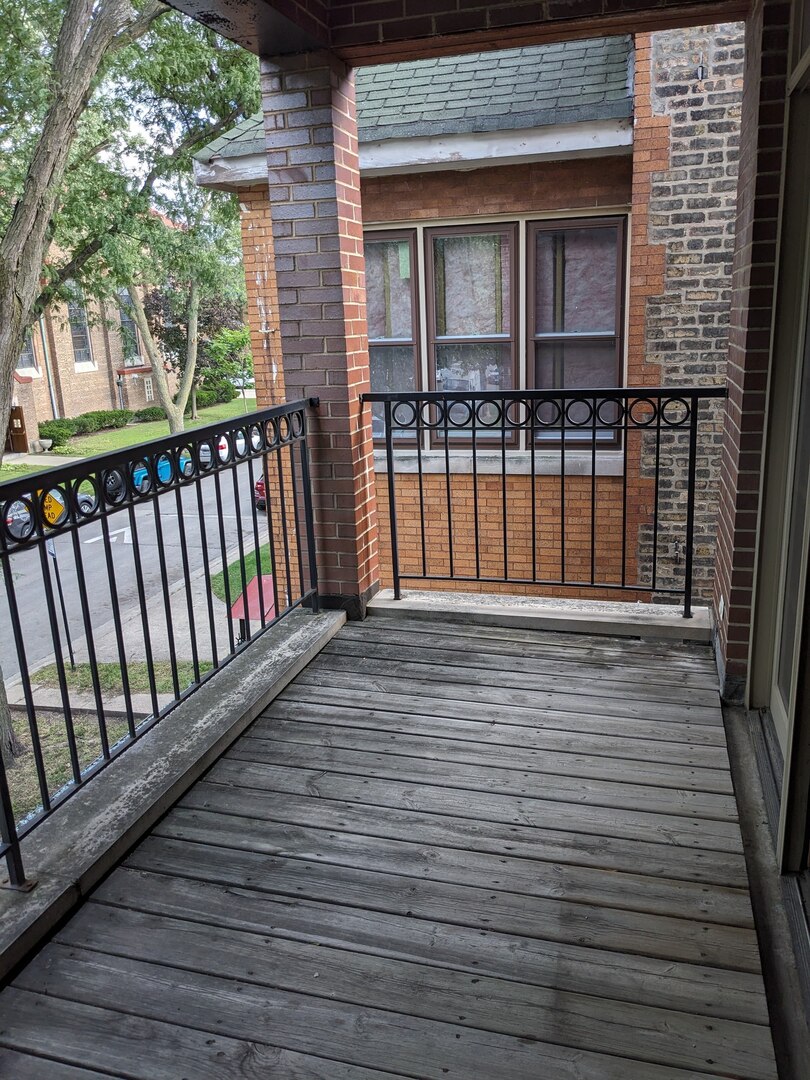 Bright, spacious 1500 square foot newer construction in West Ridge / Rogers Park with tons of potential. Four exposures with no shared common walls provides fabulous light any time of day. Lofty 9.5′ ceilings add to the open, sunny feeling. Generous room sizes feature hardwood floors throughout. Eat-in kitchen with 42″ maple cabinets and granite countertops give way to your own large deck from the kitchen sliding doors. Large living/dining room has a gas ventless fireplace with marble surround for wintery warmth. Primary bedroom includes a walk-in closet and large private balcony. Primary bath has double sinks, whirlpool tub, and separate shower. Separate laundry room houses stackable washer and dryer. All windows are double-pane insulated with natural wood frames. Deeded 2 car tandem parking make this the total package. Estate Sale, being sold as-is.
