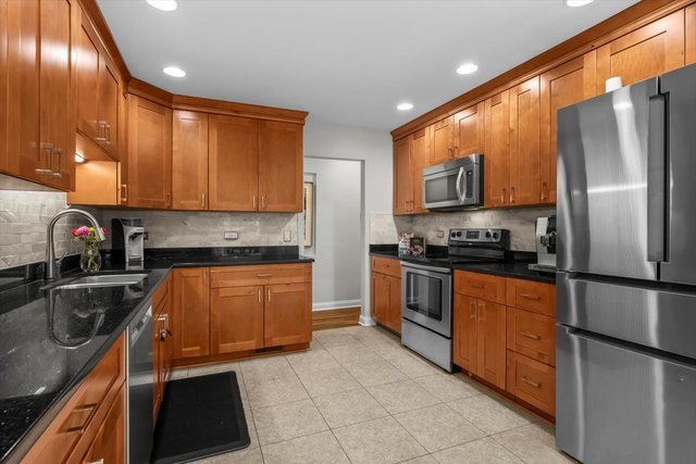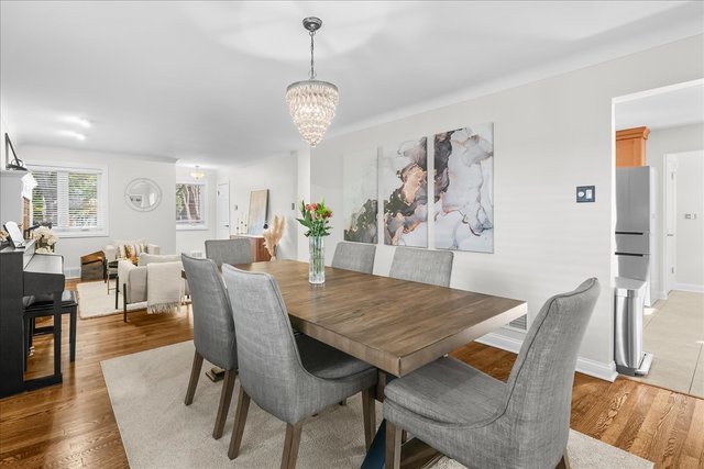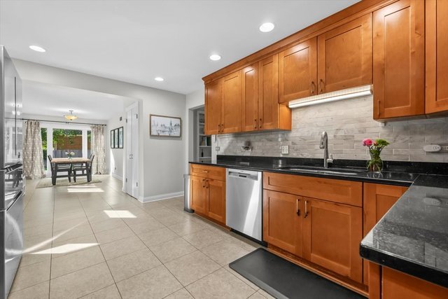 Charming, move-in ready brick ranch in coveted location close to town, train (Highlands stop), Whole Foods, Starbucks and The Lane Elementary School – ranked #4 in the state! Fabulous layout with perfect flow for both everyday living and effortless entertaining. The large kitchen is the heart of the home and boasts loads of neutral cabinetry, granite countertops, stainless steel appliances (including newer fridge and dishwasher), plus pantry. The adjoining sunny eating area has walls of windows and is the perfect gathering place. Just off the kitchen/breakfast area is the fabulous family room with original shelving to display your treasured photos, plus sliders for easy access to the patio and lovely fenced in backyard. Pocket doors are there to separate the family room from the dining room, if desired. The dining room is a beautiful space to accommodate celebrations, and its openness to both the family room and cozy living room/sitting area with wood burning fireplace allows for expansion for larger gatherings. The main level also has 3 spacious bedrooms with great, organized closet space plus one full and one half bath. Exceptional finished lower level with LVT flooring offers additional play/work space, 4th bedroom and 2nd full bath, laundry room with newer washer and dryer (2020) and storage. Other highlights include: hardwood floors, newer roof (2020), updated windows, neutral window treatments…and so much more! Warm, welcoming and beautifully maintained…this home is truly turn-key!