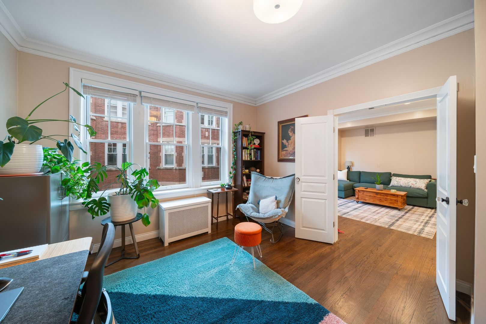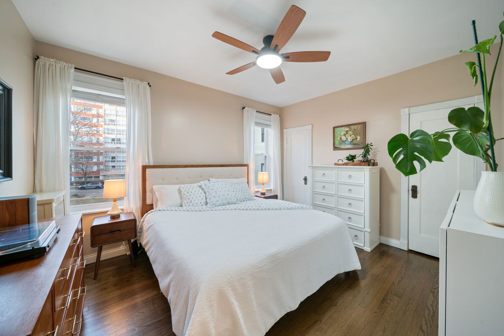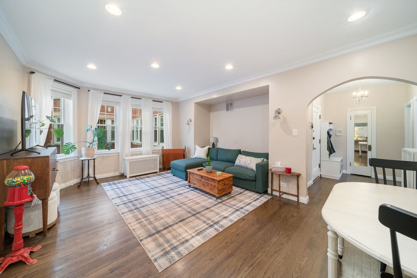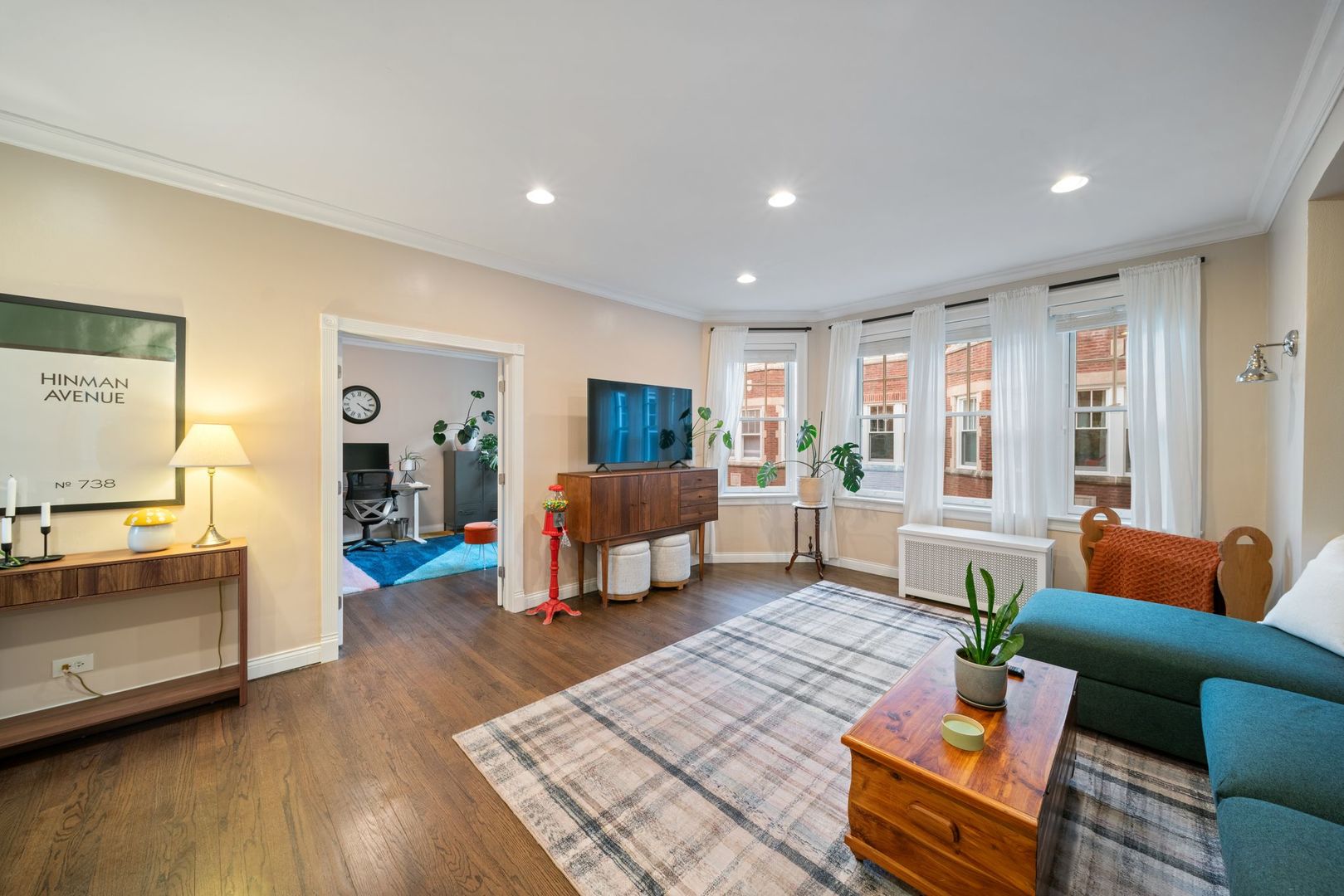 Welcome home to a beautiful vintage 2 Bedroom Condo in Evanston. With a large living space with south facing windows looking into a wonderfully kept courtyard, this 1928 built condo marries vintage charm with modern updates. The bathroom has been updated with a modern vanity and glass shower door while the kitchen includes granite counter tops along with soft close hardwood cabinetry. This condo includes in-unit laundry (combo washer/dryer) along with laundry in the building. Located mere steps to the Purple Line and Metra Main St stops, as well as just blocks from the lake, it makes for a convenient commute into the city as well as ease of access to entertainment and recreation. Schedule your tour today.