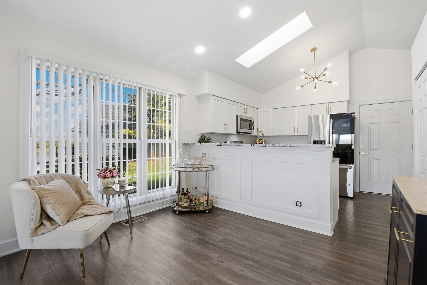 Welcome to Odyssey Country Club Townhomes- a gated community with gorgeous views, a golf course, and easy access to I-80 and I-57. This stunning and updated end-unit RANCH townhome offers breathtaking pond views outside and timeless elegance inside. The whole home was remodeled in 2023 and 2024. It offers a gorgeous, sleek kitchen with granite countertops, SS appliances and upgraded light fixtures. The open, vaulted great room features a fireplace with new mantle and newer LVP flooring. You can step outside the sliding doors to a serene brick patio with sweeping pond views. The main level also features a primary suite with updated ensuite and walk-in closet, as well as a second bedroom and updated full bathroom. Be sure to head downstairs to see the newly renovated, fully finished basement! It features two more bedrooms, a full bathroom and a gorgeous fireplace in the rec room. HVAC replaced in 2023! Enjoy the convenience of low-maintenance living with the HOA covering exterior upkeep, landscaping and snow removal.