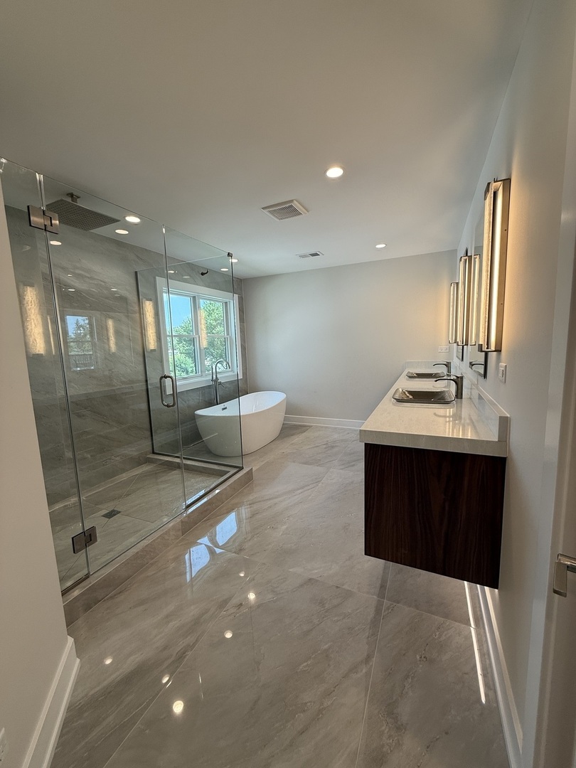 New construction!!!!!!. Welcome to this stunning five-bedroom, 5 full bath new construction home with a study that can be converted into a 6th bedroom near the full bath on the main level. Perfectly situated close to downtown Elmhurst in highly sought after Lincoln school area. This luxurious residence offers an open floor plan with 10ft ceilings and high-end tasteful finishes throughout. The gourmet kitchen is a chef’s dream, featuring quartz counter tops, High-end stainless-steel appliances, and a sprawling large island perfect for entertaining! The main level includes a study that can be converted to bedroom/office providing flexible living space. The second floor is highlighted by a lavish master suite, boasting large walk-in closets and a private en suite with a double-sink vanity, soaking tub, and separate shower. Three additional bedrooms on 2nd level with high ceilings. One bedroom is en- suite and other 2 share a bathroom with a double vanity and tub. The full finished basement adds even more living space with a wet bar, open rec room, a fifth bedroom, one full bath, making it perfect for entertaining or accommodating guests. The back yard with a patio provides a serene outdoor retreat, ideal for relaxation or outdoor activities. Conveniently located close to the train station, shopping, restaurants, and parks, this home offers easy access to transportation and local amenities. Don’t miss the opportunity to own this exquisite new construction home in a prime Elmhurst location!!! Still time to pick your interior selections. Other locations available. Pictures are of similar build and showing some upgrades.