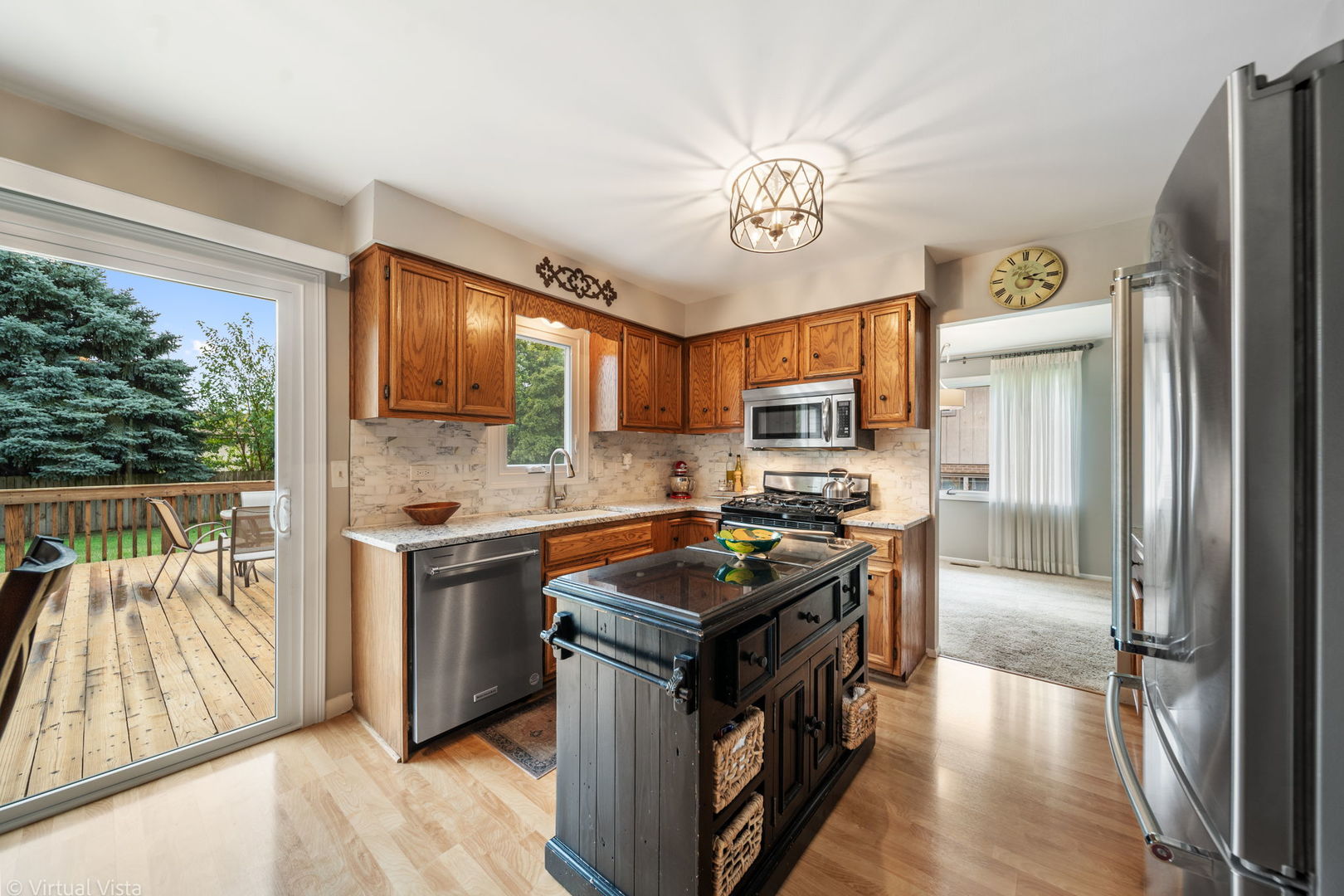 Perfectly located in the heart of Orland Park, this spacious brick split level home offers the perfect blend of comfort, updates and location. The main level features a bright open living room that flows into a large dining area and an eat-in-kitchen complete with granite countertops, stainless steel appliances, stylish backsplash and a breakfast bar. The lower level offers a warm and inviting family room with a brick gas fireplace, a full bath, large laundry area with a NEW washer and dryer, utility sink and plenty of storage-including an extra-large cemented crawl space. Upstairs the primary bedroom features two large closets and an attached full bath, along with two additional large bedrooms. Enjoy Entertaining in the expansive backyard showcasing a large deck and a shed for extra storage. Recent upgrades include brand NEW roof, NEW garage door NEW Refrigerator and NEW dishwasher. Located within walking distance to premier restaurants, shops and entertainment-and in an excellent school district including Andrew High School. This home truly offers the ideal combination of space, location and recent updates!