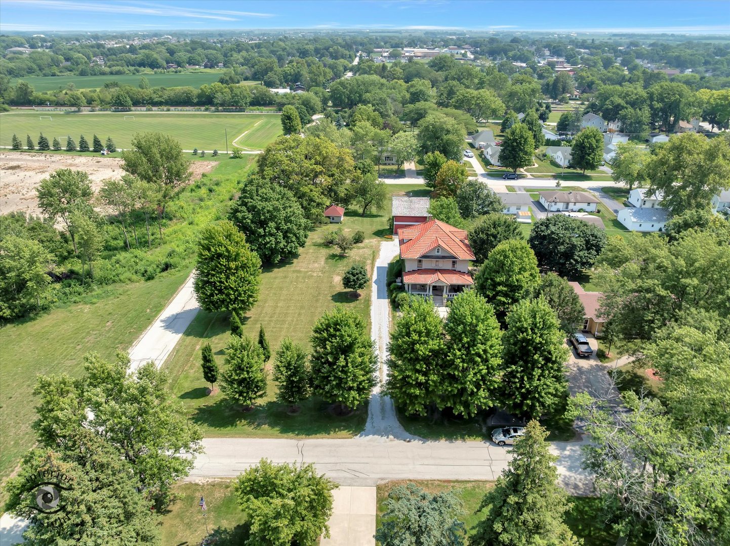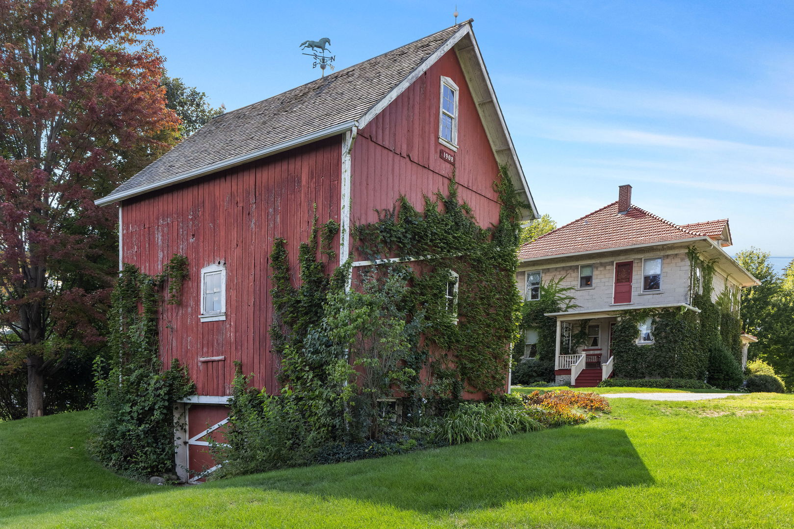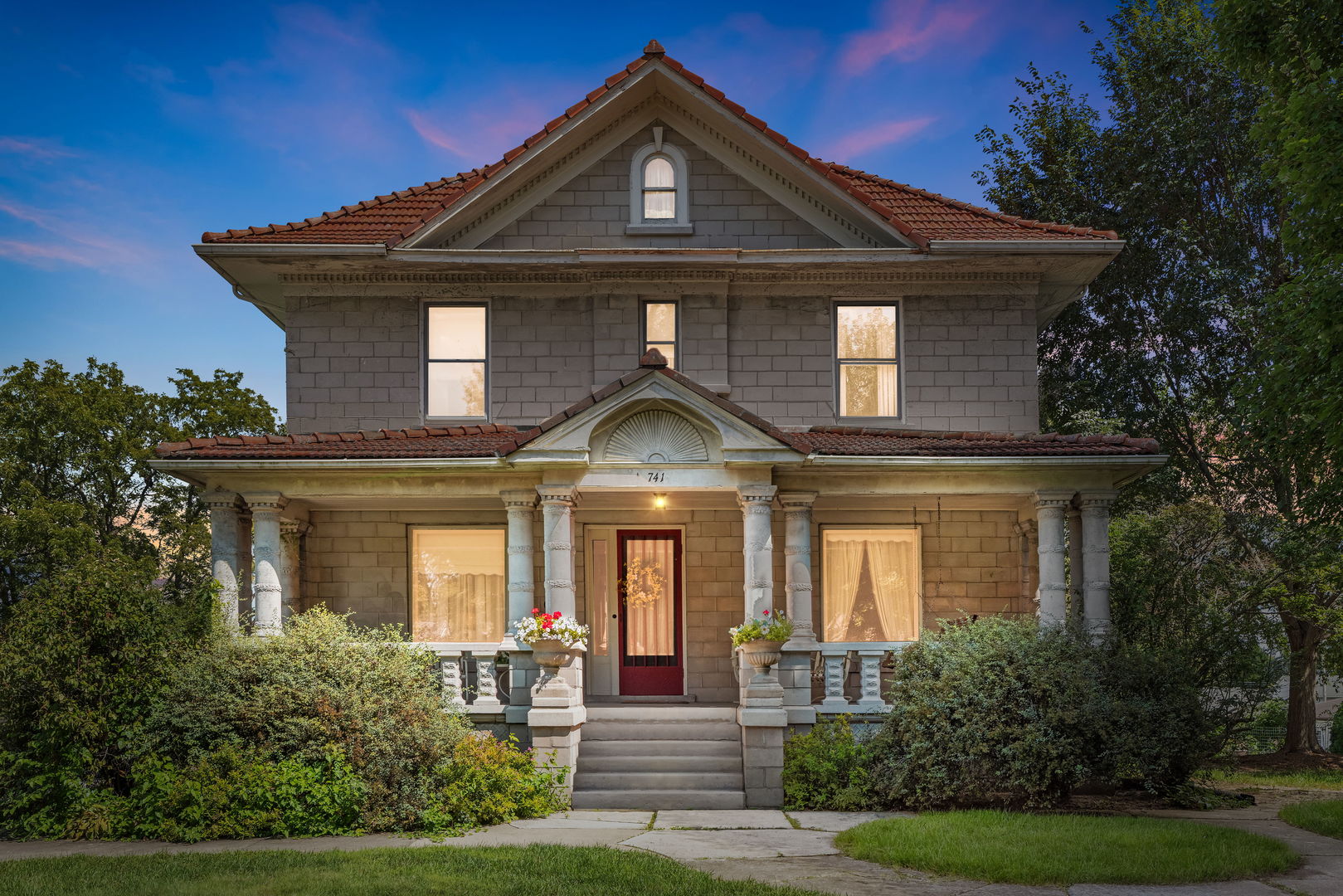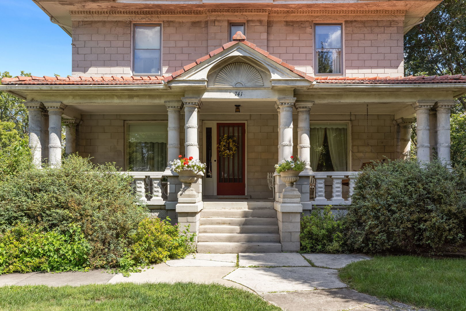 Welcome to one of Beecher’s most distinctive properties – 741 Dunbar. This historical home was built in 1908 by Civil War veteran August Ehrhardt. It sits on six village lots (1 acre) with mature native trees, and custom landscaping. The four-story concrete block home features a red tile roof, with quality materials throughout. The four-story barn with shake-shingle roof is topped with a vintage weather vane (both have lightning rods). The detached studio has electricity, carpeting, and baseboard heat. During the time of the current owners, the foundation has been reinforced with steel beams, the concrete front porch has been replaced, and the original tile roof has been restored. Floor to ceiling book shelves have been installed in the library. The home has solid hardwood floors on both lower and upper floors. Three decorative borders surround the downstairs hardwood floors. Sliding, pocket doors are located in the dining room and library. All hardware on doors, windows, and cabinets is solid brass. The front and back stairs meet on a landing which has a large (56″x 65″) stained glass window dedicated to the Grand Army of the Republic (GAR). Another stained-glass window is located in the library. It was installed in 1980 and replicates the original. The foyer and front hallway retains the original gas ceiling lights with Carmel glass have been electrified. The foyer’s original mosaic floor has been restored, and the walls are covered with embossed leather. The dining room contains a large oak China cupboard with a plate glass mirror and south bay window. Four large bedrooms are located on the upper floor, each with large walk-in closets. The spacious hallway has a large closet with cedar lined drawers. The upstairs bathroom contains the original claw-and-ball foot ceramic bathtub, and the original sink and stool. The large carpeted office located in the basement features built-in book shelves, excellent lighting, and all hook-ups for computer, printer, etc. Available for sale for the first time in 50 years, what the current owners love most about the property. * History – Strong American and Beecher significance * Well Built – sound sturdy construction that embraces you in all weather. * Quiet part of town – Set back from the street with two corner lots * Trees/landscaping: Personally curated landscaping featuring young and older native trees.