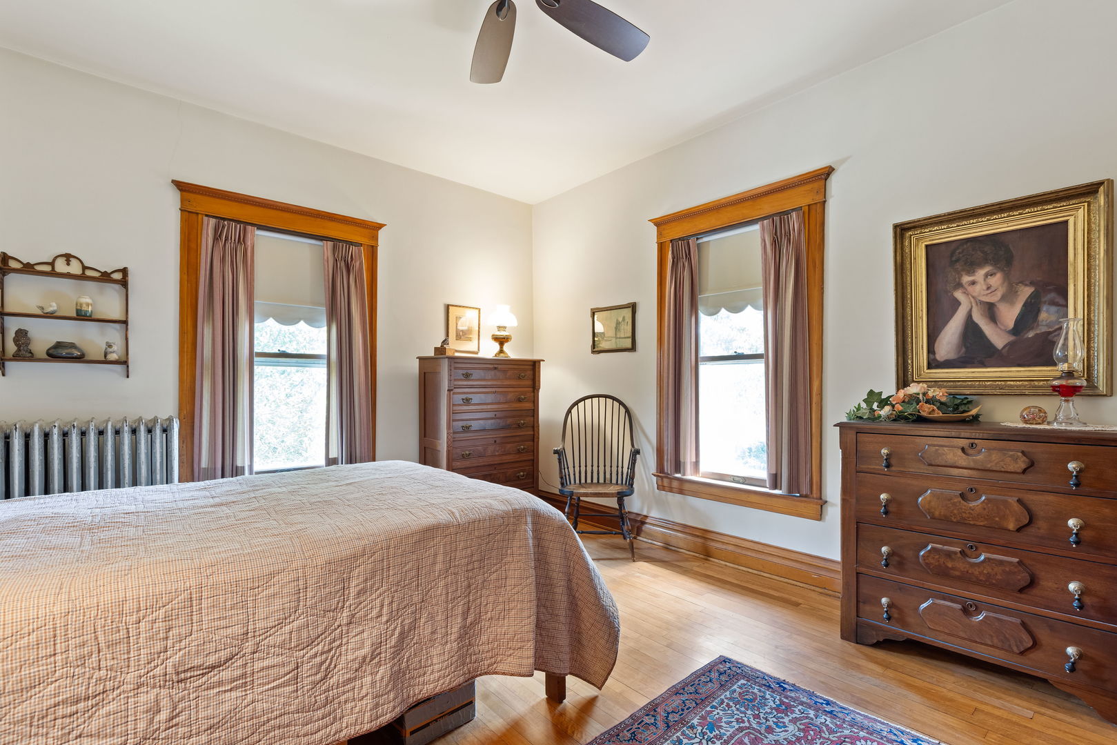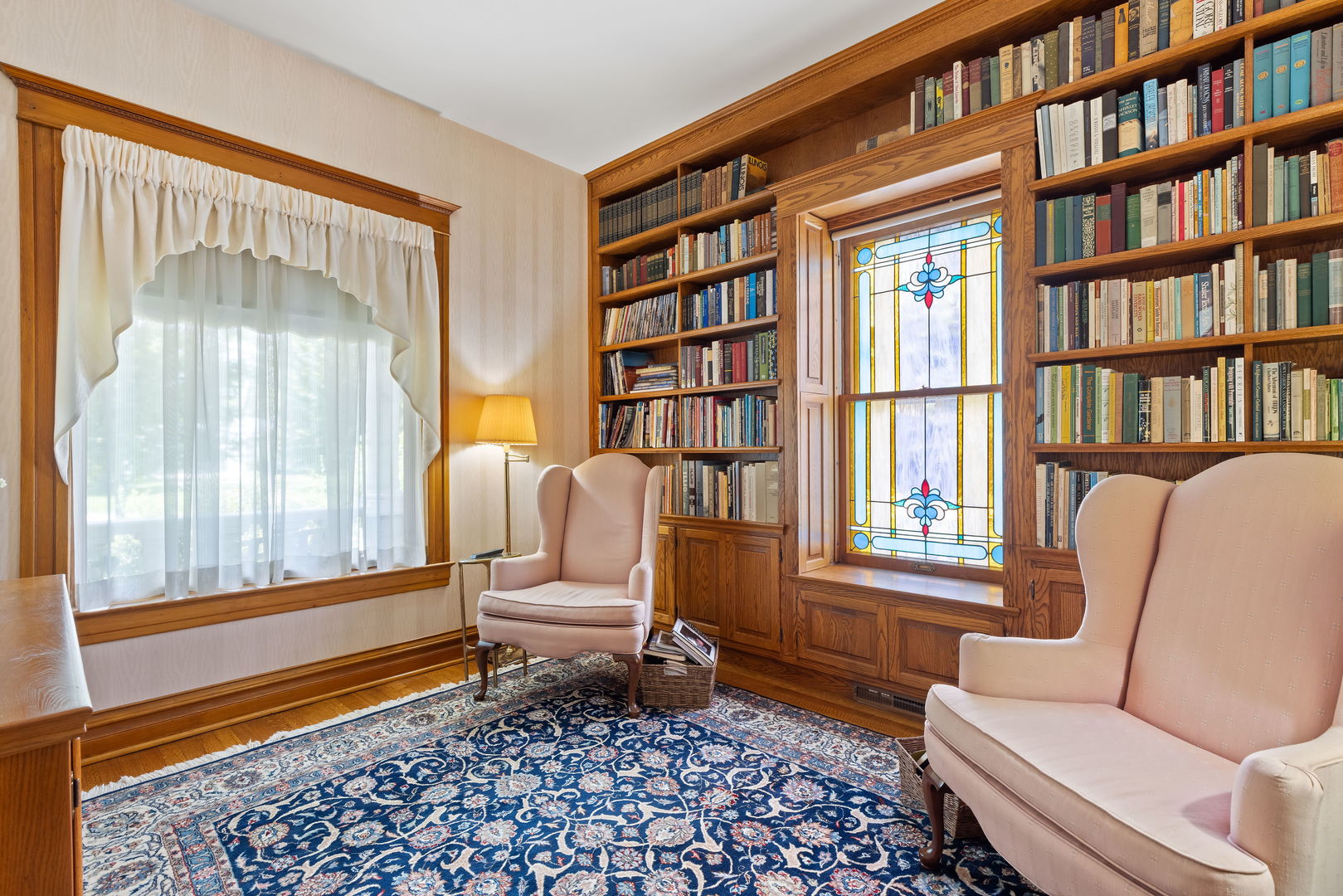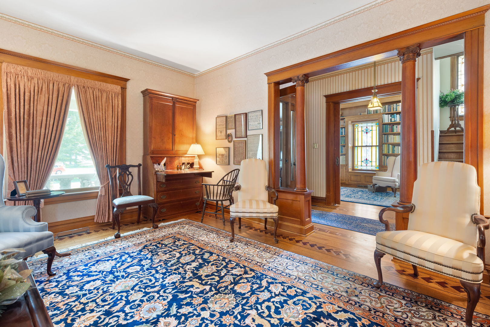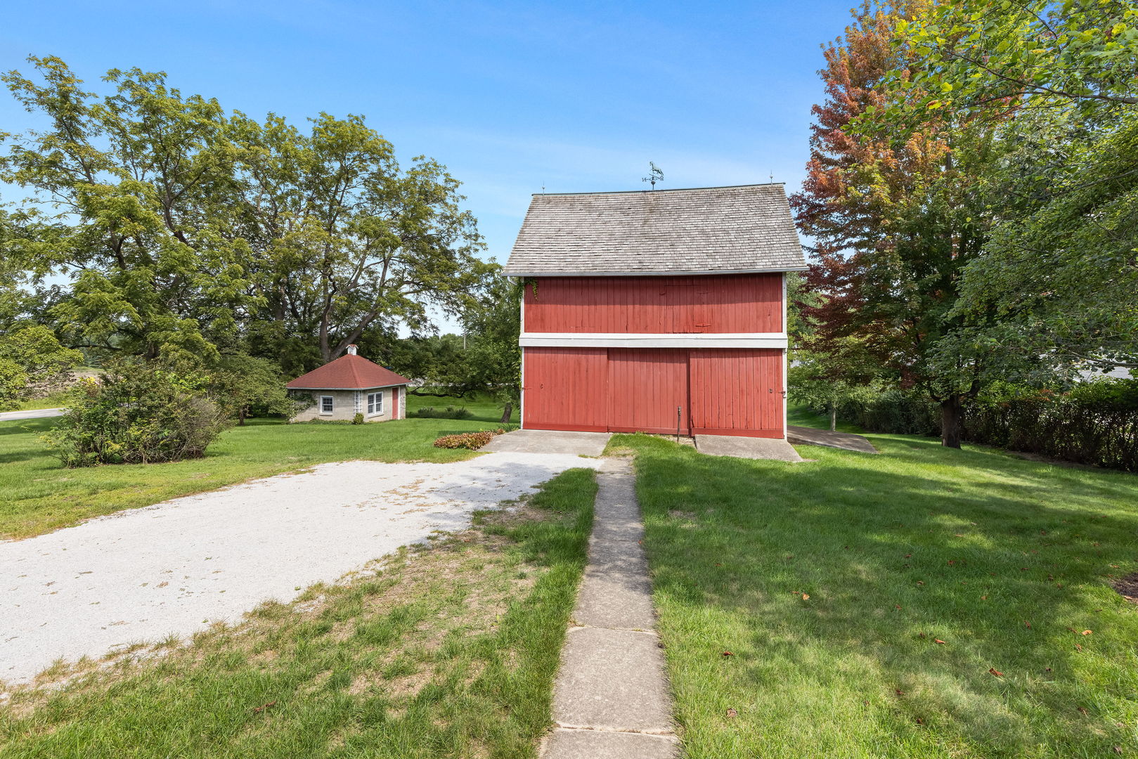 Welcome to one of Beecher’s most distinctive properties – 741 Dunbar. This historical home was built in 1908 by Civil War veteran August Ehrhardt. It sits on six village lots (1 acre) with mature native trees, and custom landscaping. The four-story concrete block home features a red tile roof, with quality materials throughout. The four-story barn with shake-shingle roof is topped with a vintage weather vane (both have lightning rods). The detached studio has electricity, carpeting, and baseboard heat. During the time of the current owners, the foundation has been reinforced with steel beams, the concrete front porch has been replaced, and the original tile roof has been restored. Floor to ceiling book shelves have been installed in the library. The home has solid hardwood floors on both lower and upper floors. Three decorative borders surround the downstairs hardwood floors. Sliding, pocket doors are located in the dining room and library. All hardware on doors, windows, and cabinets is solid brass. The front and back stairs meet on a landing which has a large (56″x 65″) stained glass window dedicated to the Grand Army of the Republic (GAR). Another stained-glass window is located in the library. It was installed in 1980 and replicates the original. The foyer and front hallway retains the original gas ceiling lights with Carmel glass have been electrified. The foyer’s original mosaic floor has been restored, and the walls are covered with embossed leather. The dining room contains a large oak China cupboard with a plate glass mirror and south bay window. Four large bedrooms are located on the upper floor, each with large walk-in closets. The spacious hallway has a large closet with cedar lined drawers. The upstairs bathroom contains the original claw-and-ball foot ceramic bathtub, and the original sink and stool. The large carpeted office located in the basement features built-in book shelves, excellent lighting, and all hook-ups for computer, printer, etc. Available for sale for the first time in 50 years, what the current owners love most about the property. * History – Strong American and Beecher significance * Well Built – sound sturdy construction that embraces you in all weather. * Quiet part of town – Set back from the street with two corner lots * Trees/landscaping: Personally curated landscaping featuring young and older native trees.