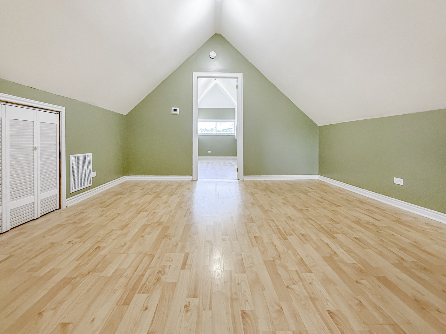Updated brick bungalow featuring an open-concept layout from the front entrance all the way to the kitchen. This spacious home offers a total of three bedrooms and two full bathrooms. The main level boasts refinished hardwood floors throughout, two bedrooms, and a fully updated bathroom. The second floor has been completely finished to include a primary bedroom, a large bonus family room, and an oversized storage area. The basement is also finished, offering additional living space with the potential for extra bedrooms, a full second bathroom, and a dedicated laundry room. Numerous updates have been completed over the years, including a dual high-efficiency furnace and AC system, with the second floor on its own separate heating and cooling for optimal temperature control throughout the home. Plumbing has been updated with copper lines and new PVC drains, and the electrical system has been upgraded to 100-amp service with a new panel and wiring throughout. Additional features include vinyl double-pane windows, a roof under 10 years old, and fresh interior paint. The detached garage is newer than the home and in excellent condition. Located on a quiet, dead-end street offering added privacy. All financing options are welcomed. Home is move-in ready and available for immediate occupancy.