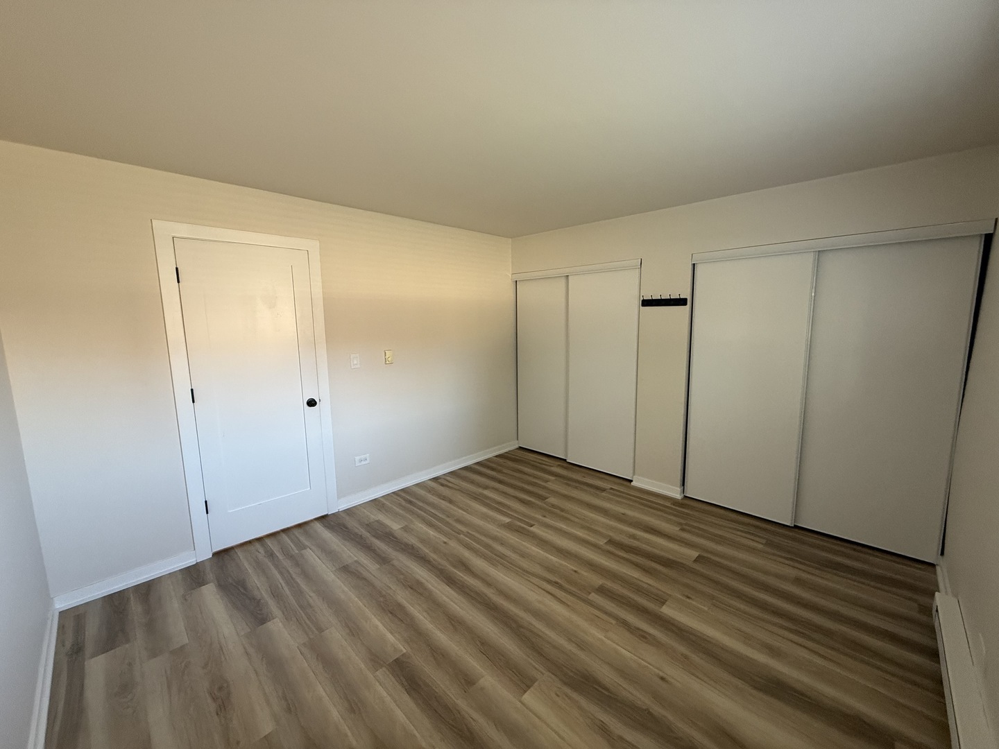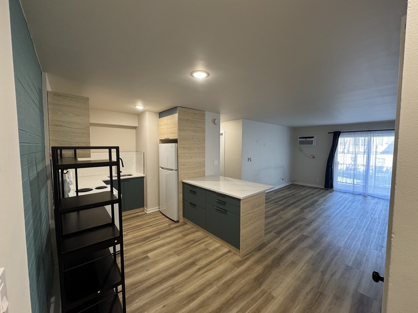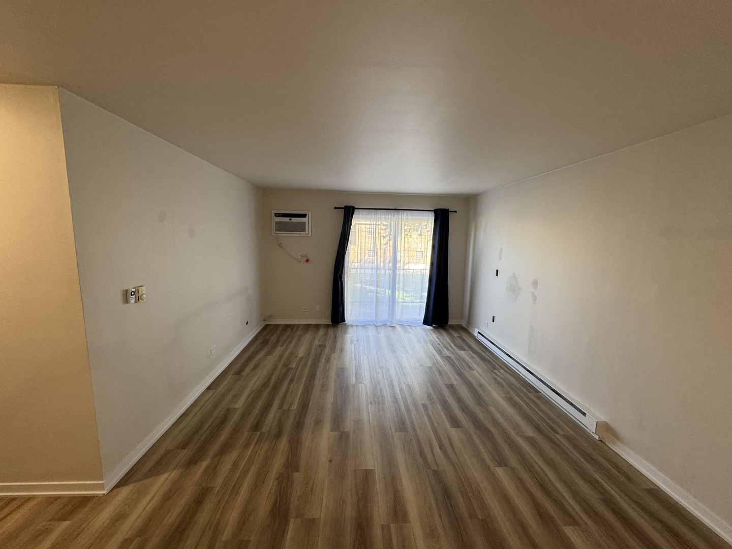 Updated condo in prime location with assigned parking space. Remodeled kitchen with new cabinets, quartz counters, solid wood doors, solid wood trim, and vinyl plank flooring. Remodeled bathroom with brand new vanity, toilet, faucets, light fixtures, and ceramic tile tub surround. Brand new air conditioner. In-unit, stackable washer and dryer. Sliding door leads to balcony overlooking open green space. There is a coin laundry in building’s main floor. Walk to shops and restaurants on Madison Street. Easy access to bus line, train line and I290 expressway. The building has secured entry and elevator. It also has storage unit on the mail floor garage area, unit #19.
