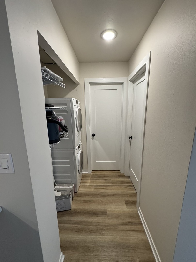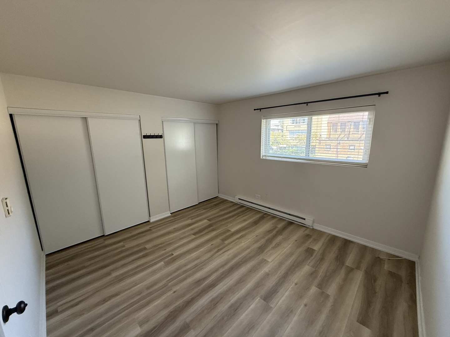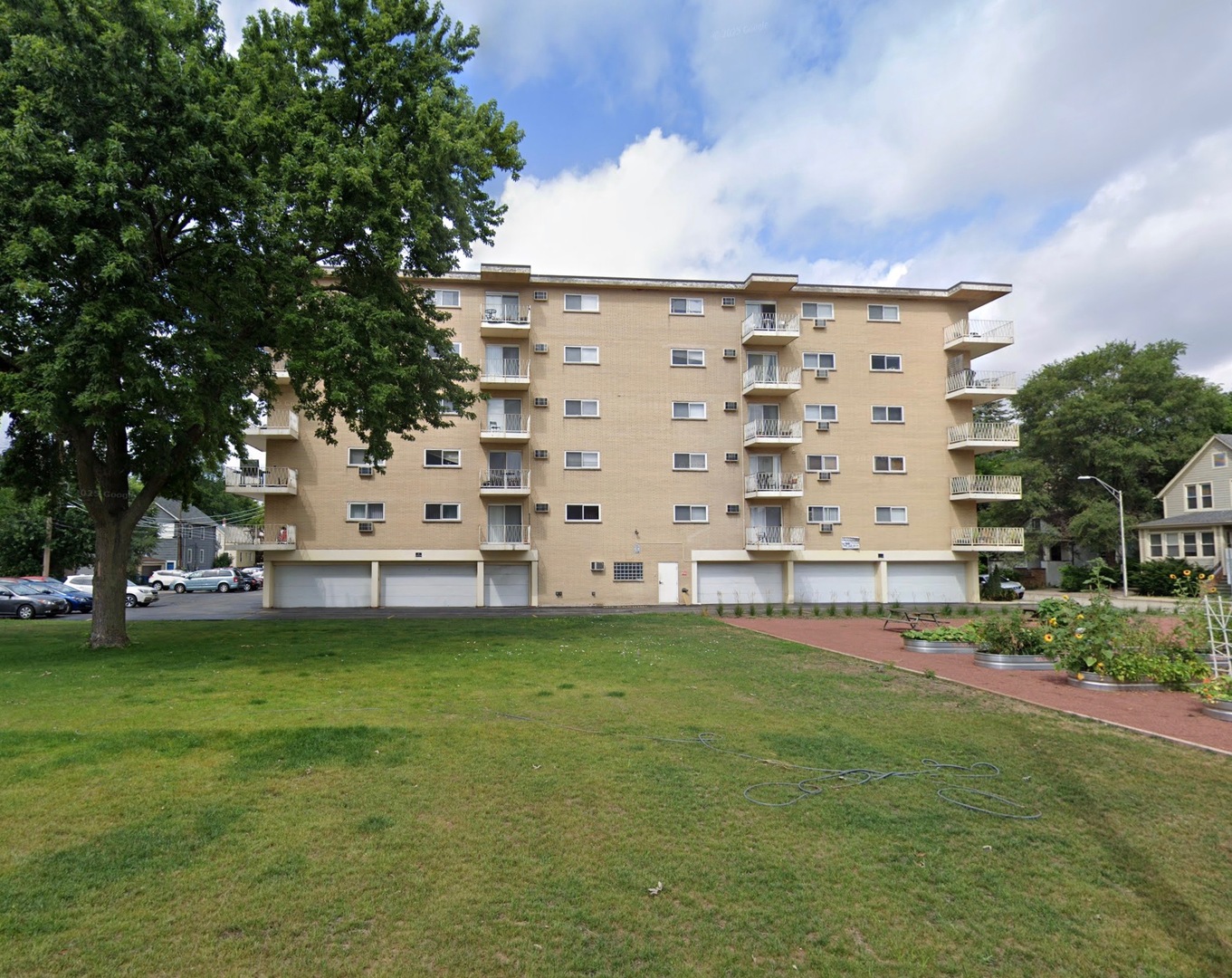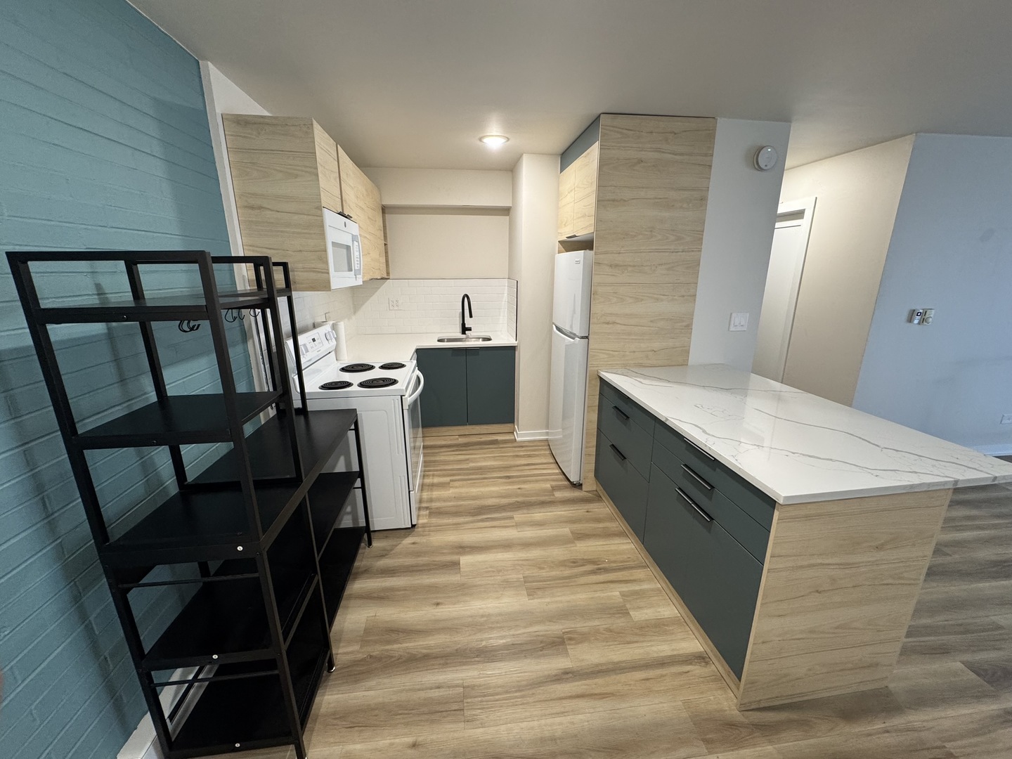 Updated condo in prime location with assigned parking space. Remodeled kitchen with new cabinets, quartz counters, solid wood doors, solid wood trim, and vinyl plank flooring. Remodeled bathroom with brand new vanity, toilet, faucets, light fixtures, and ceramic tile tub surround. Brand new air conditioner. In-unit, stackable washer and dryer. Sliding door leads to balcony overlooking open green space. There is a coin laundry in building’s main floor. Walk to shops and restaurants on Madison Street. Easy access to bus line, train line and I290 expressway. The building has secured entry and elevator. It also has storage unit on the mail floor garage area, unit #19.