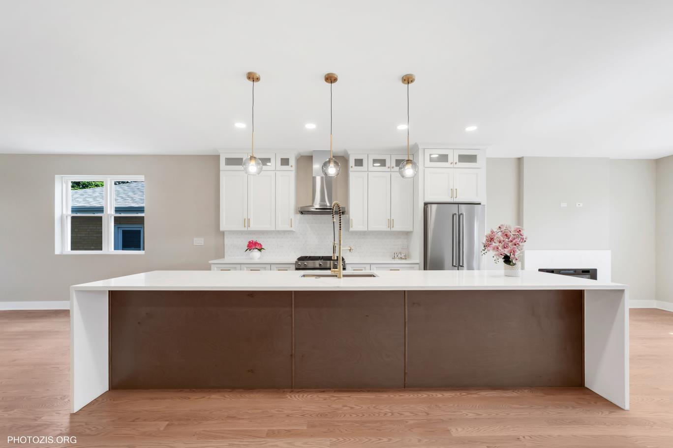 Introducing Your Dream Home – This stunning new construction offers luxurious living, featuring 4 spacious bedrooms and 3.5 elegant bathrooms. Designed for modern living, the open layout is an entertainer’s dream: A gourmet kitchen with a 13ft island, top-of-the-line KitchenAid stainless appliances. The white and coffee-toned custom cabinetry, quartz countertops adds a chic, designer touch that perfectly blends warmth with modern elegance. A modern fireplace nestled in the main living area for cozy nights. Gleaming hardwood floors that flow throughout the first and second floors. A primary suite with a walk-in closet and spa-like en-suite bath: wall-to-wall large-ceramic tiles, dual sinks, a standalone shower, and a tub. High ceilings in the finished basement, complete with a stunning wet bar-ideal for a home theater or gym. Spacious 2.5-car garage. Front and side fencing provide additional privacy and definition to the yard! Close to public transit and quick highway access- I-90/294-and just minutes from O’Hare International Airport perfect for frequent travelers or professionals on the go, nearby the HIP Mall, Rosemont Entertainment District, Fashion Outlets of Chicago, Forest Preserves, parks and endless restaurants.