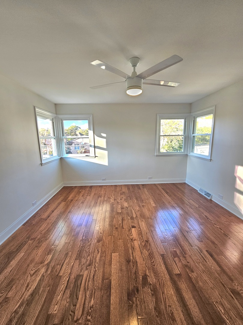 Welcome to this beautifully updated, freshly painted, and well-maintained 5-bedroom, 2-bath home offering a functional multi-level layout, modern updates, and plenty of space for the whole family. This sun-filled, south-facing home features four finished levels – a basement, main level, second level, and third level – each thoughtfully designed for comfort and practicality. On the main level, enjoy a bright open-concept layout connecting the living room, dining area, and kitchen – perfect for entertaining. The kitchen boasts quartz countertops, brand-new stainless steel appliances, luxury vinyl flooring, and ample cabinetry for exceptional functionality. The second level includes three comfortable bedrooms with refinished hardwood floors that add warmth and shine to every room, plus a full bathroom. The third level offers two additional large bedrooms with new hardwood flooring and a cedar closet. There is plenty of extra storage space, and each bedroom includes its own closet. The basement features a second full bathroom, a large utility room with washer & dryer, and luxury vinyl flooring, providing additional living or recreation space. Step outside to a large backyard with a beautiful patio and storage shed – perfect for gatherings, grilling, or relaxing outdoors. The attached 1.5-car garage also includes an added heated room in the back, ideal for an office, hobby room, or extra storage. Located within walking distance to Melzer Elementary School, this move-in-ready home combines modern comfort, abundant space, and a prime neighborhood location. All windows are new (except the living room), and the water heater is also new.