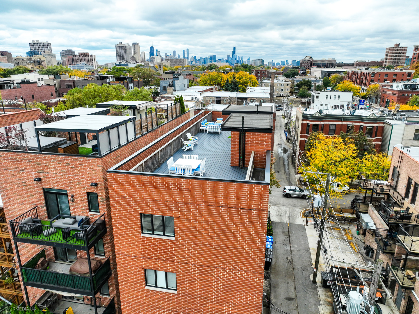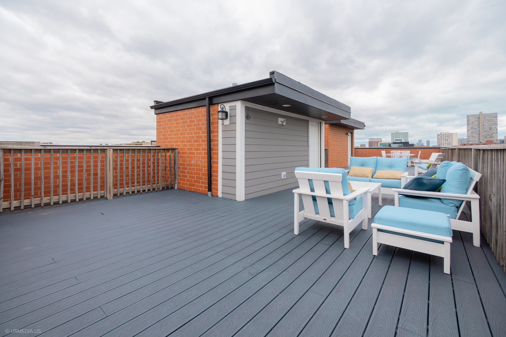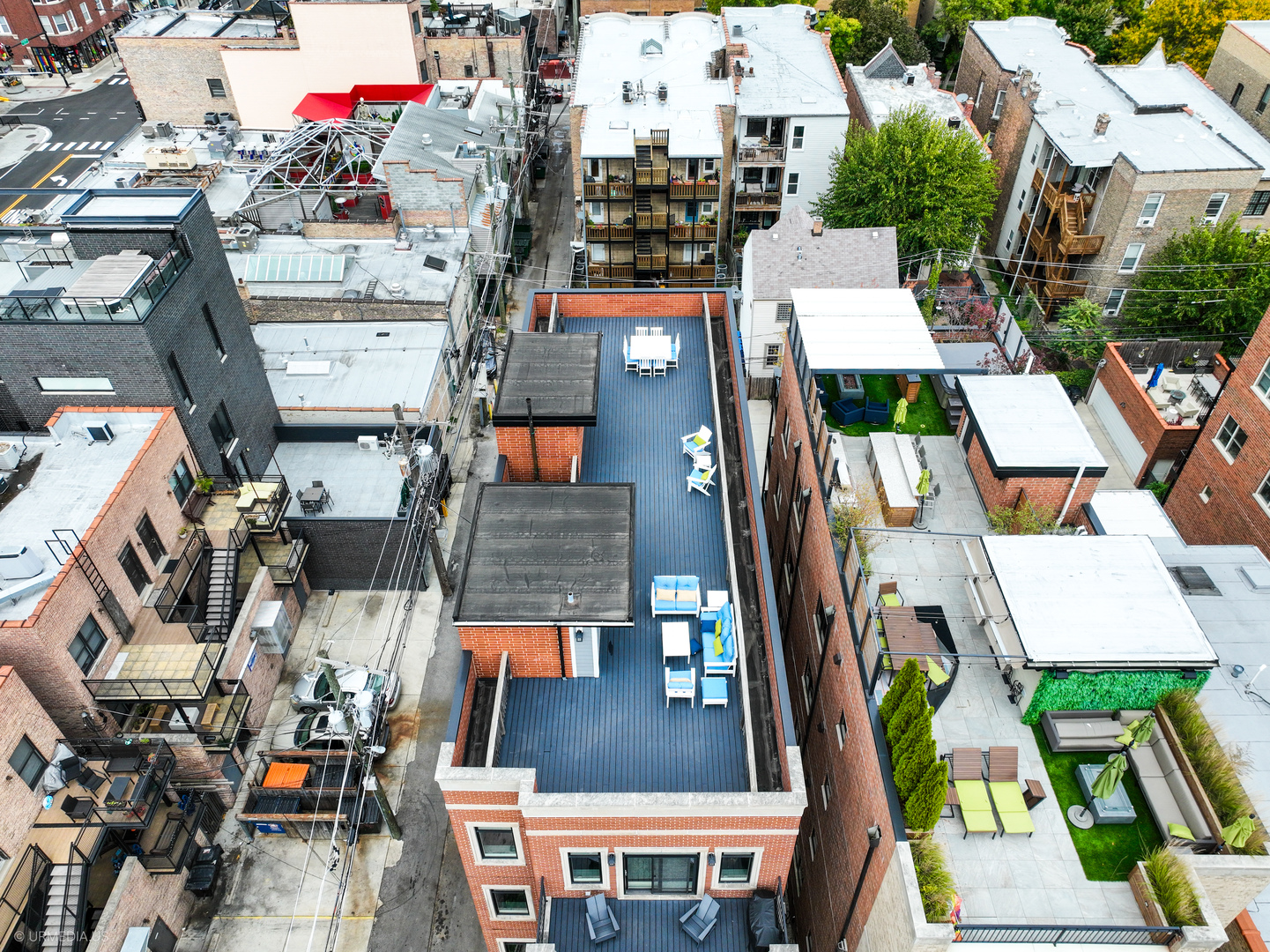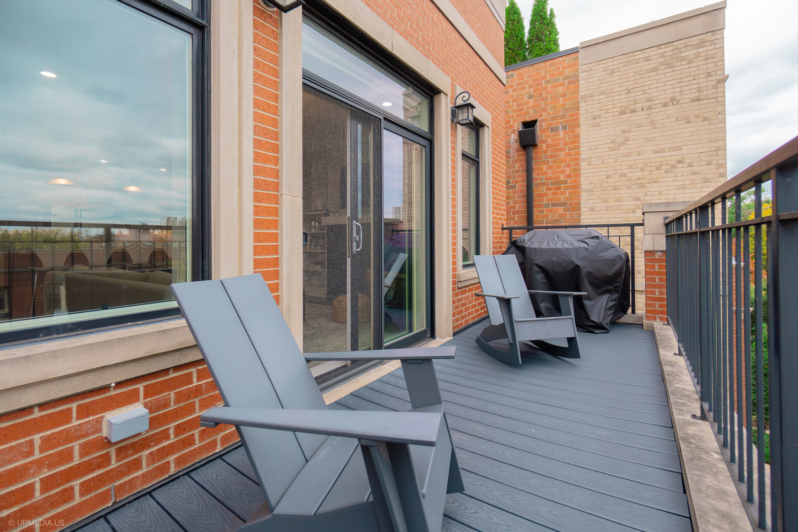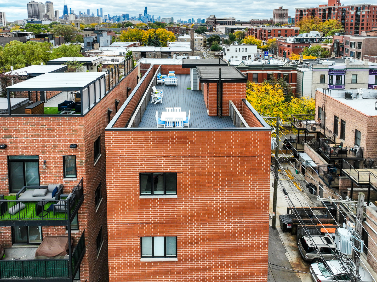 Oversized brick construction penthouse in the Nettlehorst school district. This spacious unit has wonderful light, bright floor plan with high quality finishes. Custom trim and molding, high end appliances (wolf, sub-zero, bosch, kohler), custom cabinets and custom coutertops. The bathrooms have Anne Sacks tilework and the large closets in the bedrooms are outfitted with custom shelving. Steam shower in the primary bedroom which also offers stone tops and heated floors. This Unit has 18 X 6 deck with south sunlight and a private roof top deck that is 69 X 28 with 360 degree views of the city.